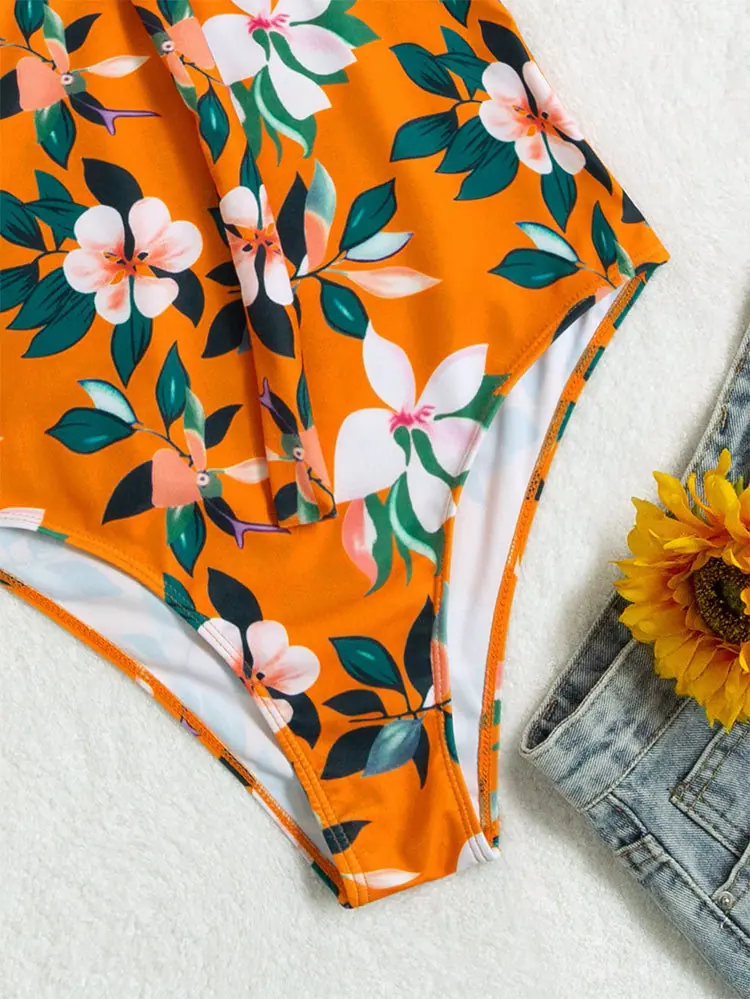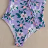 Traje de Baño Entero 2025 Nuevo Europeo y Americano Transfronterizo Color Sólido Escote Profundo V Mujer Cintura Alta Sexy Floral Playa Traje de Baño Bikini