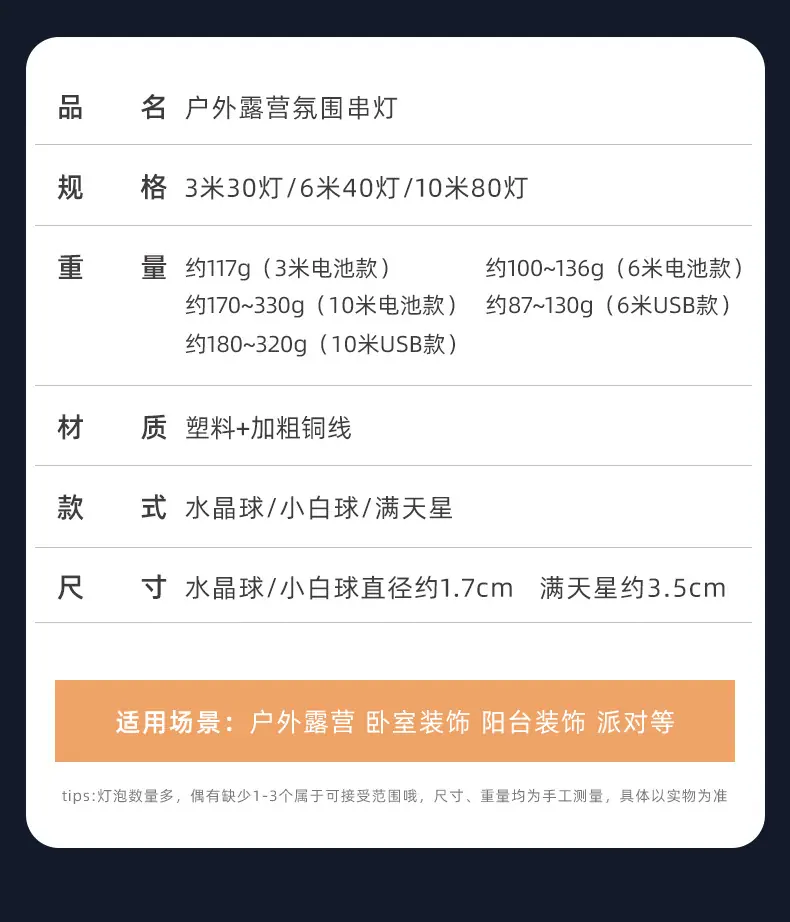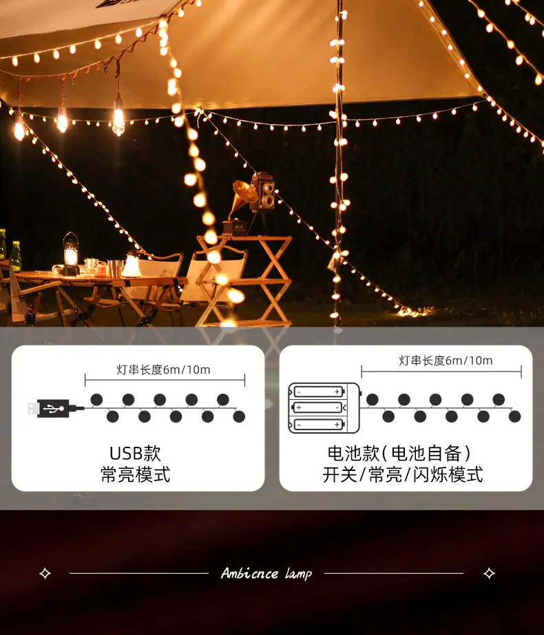Compra Luz de Ambiente para Camping al Aire Libre Luz de Ambiente Toldo Tienda Luces de Cadena Decoración para Camping Luces de Cadena Luces de Hadas Duración de Batería Ultralarga Luz de Ambiente Tira de Luz al por mayor en Joom.pro