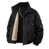 Invierno 2025 Nuevo Americano Retro Terciopelo Engrosado Cuello Alto Chaqueta de Cuero de Motociclista Pu Talla Grande Chaqueta de Hombre Casual a la Moda