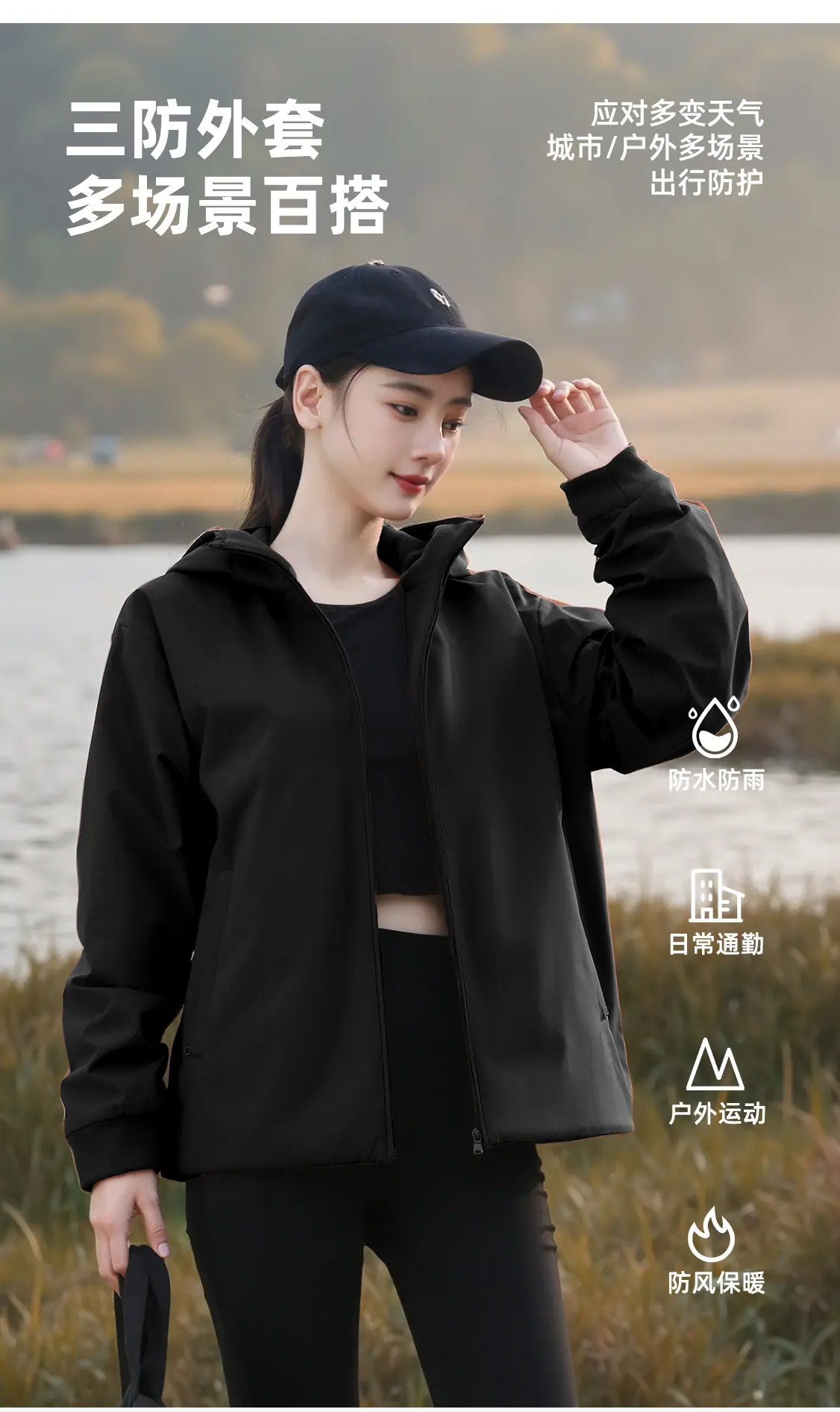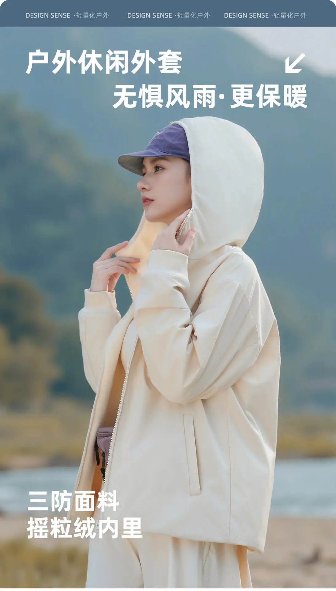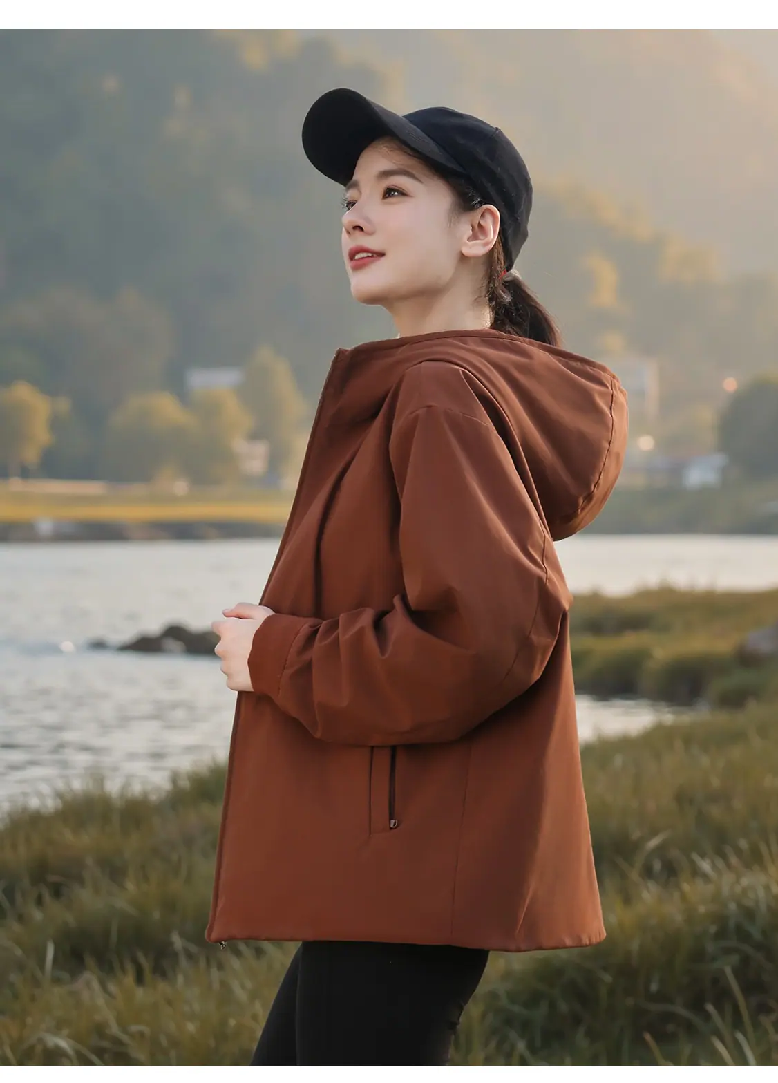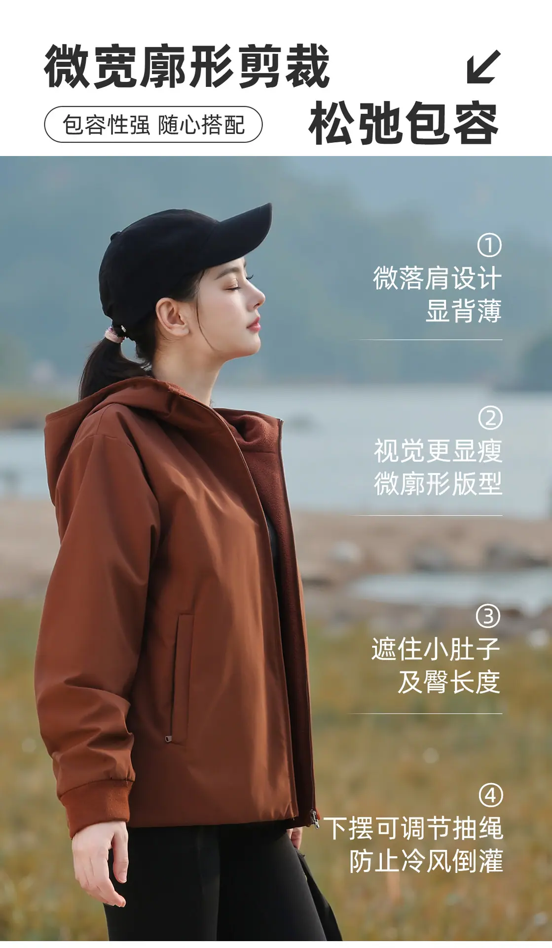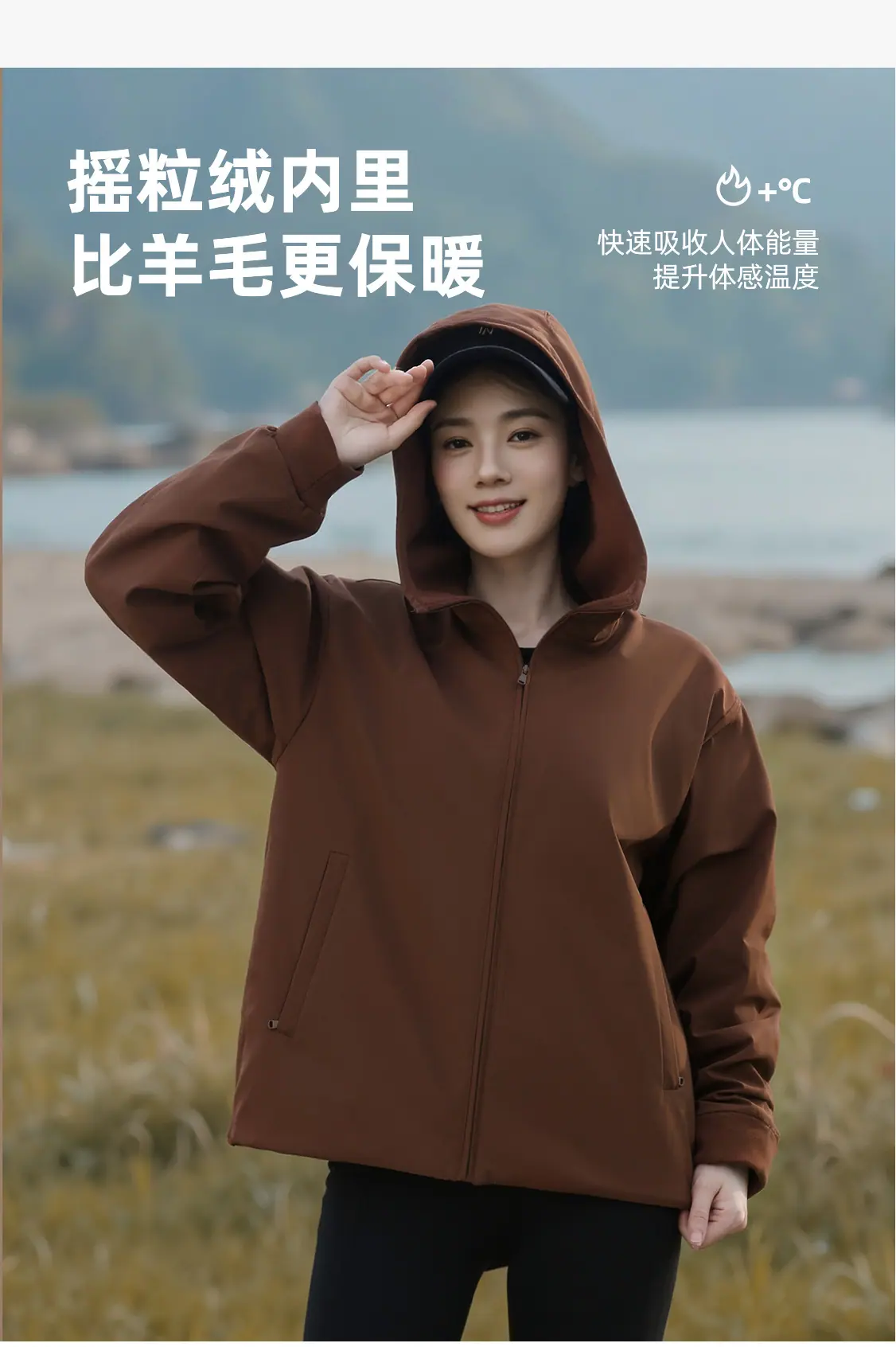 Compra Chaqueta Casual para Mujer para Exterior Otoño e Invierno Nueva Cortavientos Impermeable con Capucha Forro Polar Grueso Cárdigan Top al por mayor en Joom.pro
