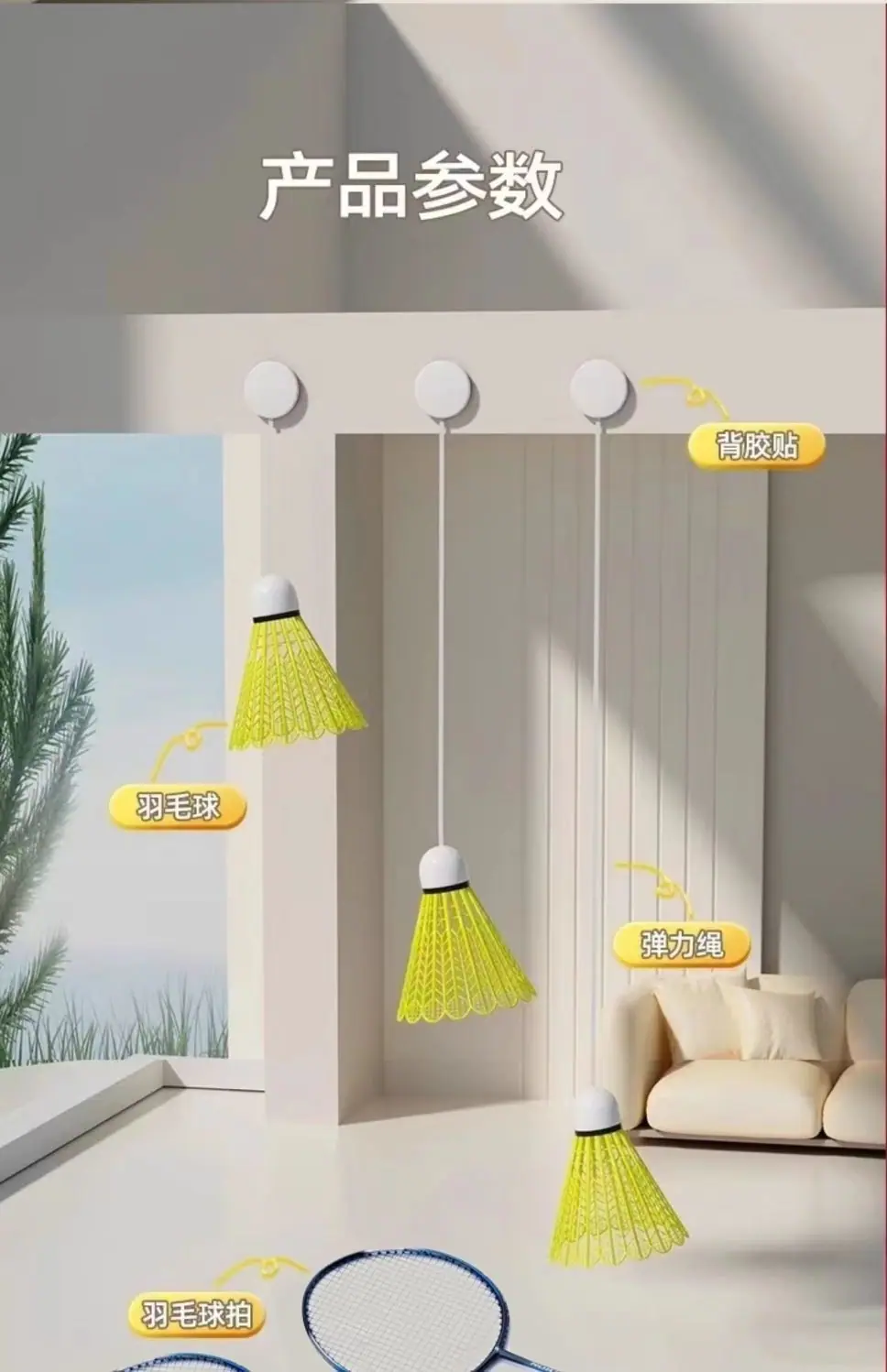 Entrenador Individual de Bádminton Rebote Automático Línea Una Persona Auto-Golpeo Interior Artefacto de Práctica para Estudiantes Ventosa Giratorio