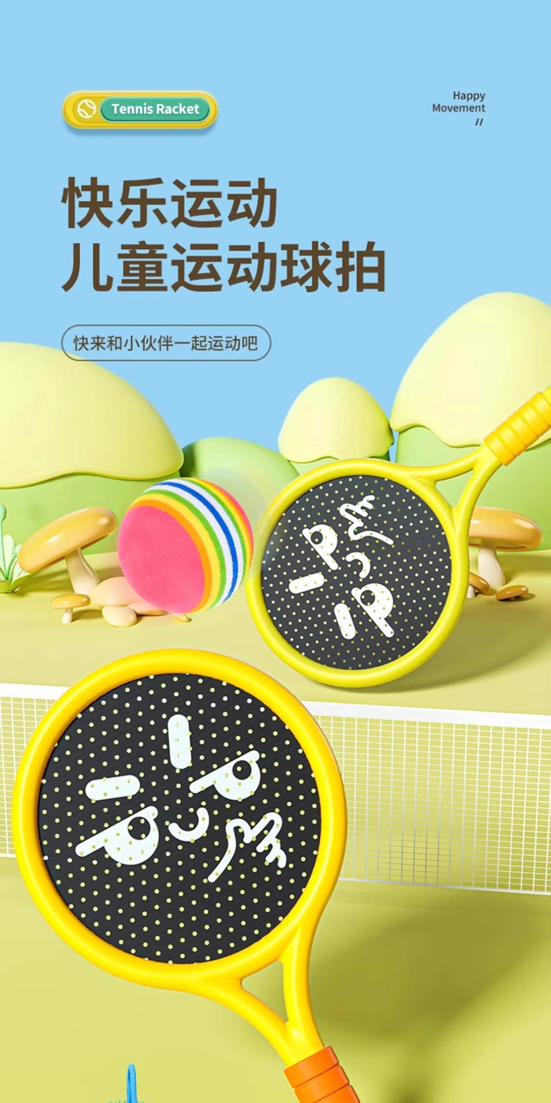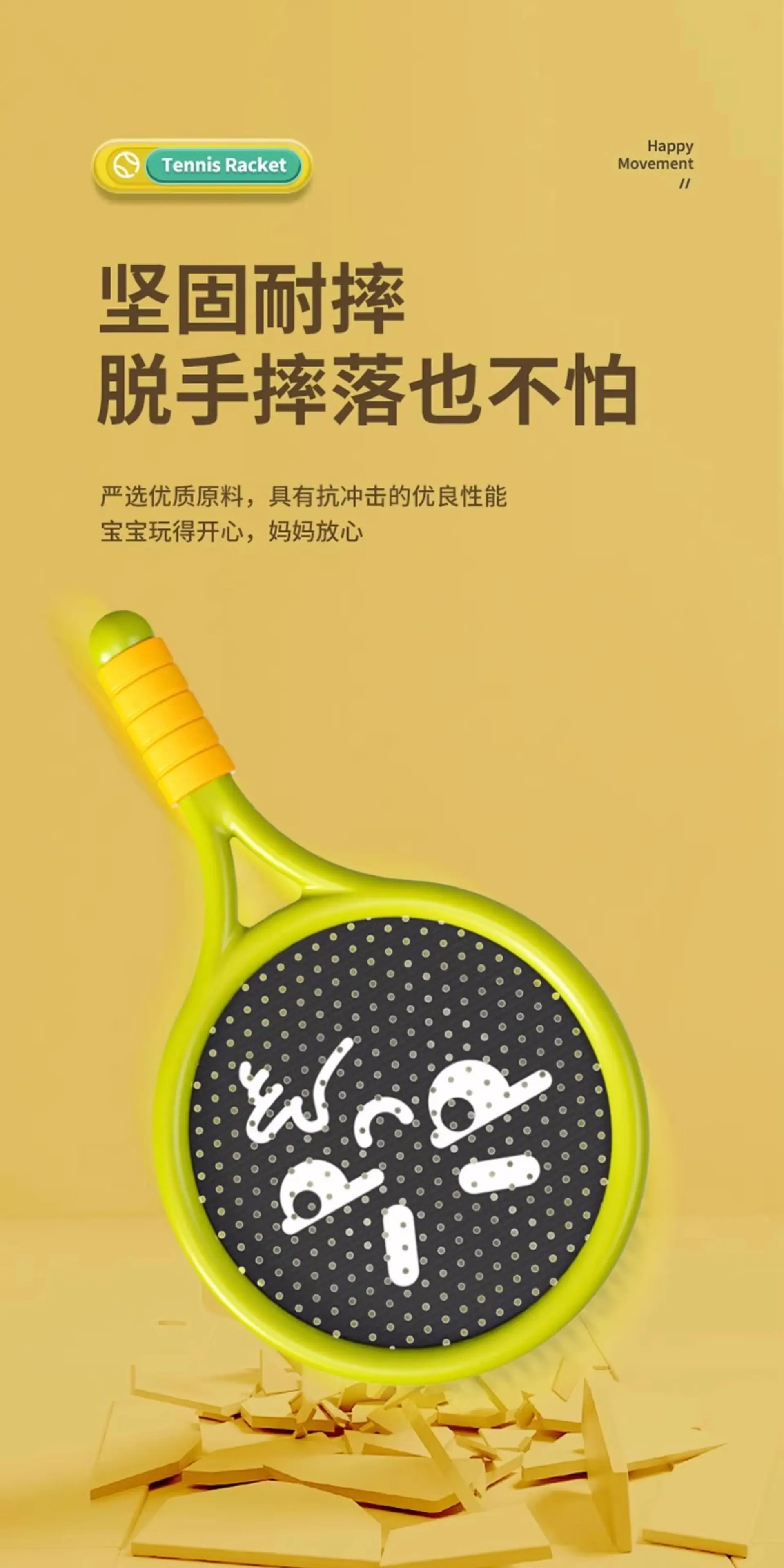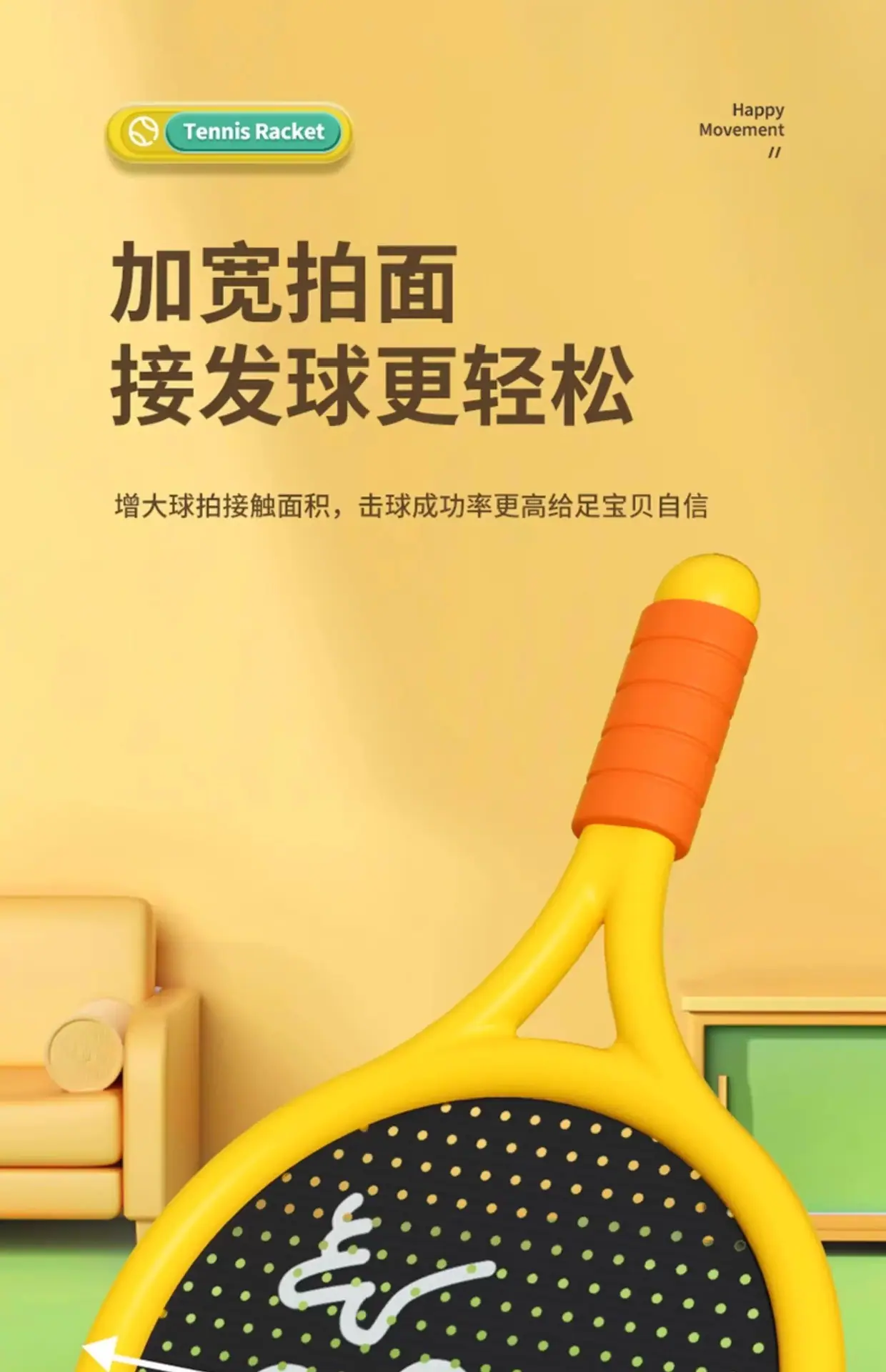 Children's Tennis Racket [Yellow + 2 Balls]