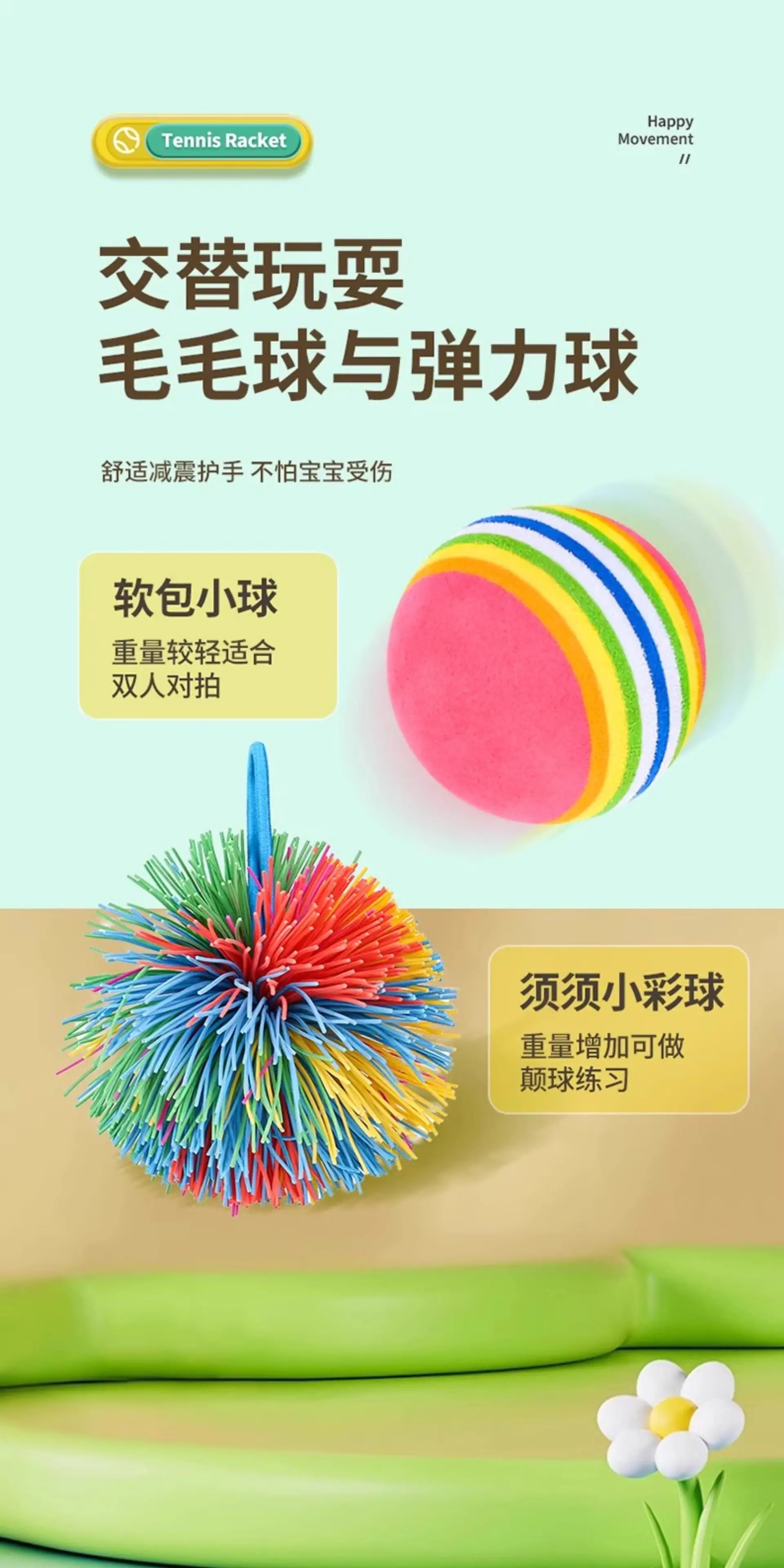 Children's Tennis Racket [Yellow + 2 Balls], Children's Tennis Racket [Green + 2 Balls]
