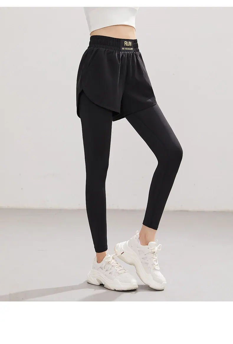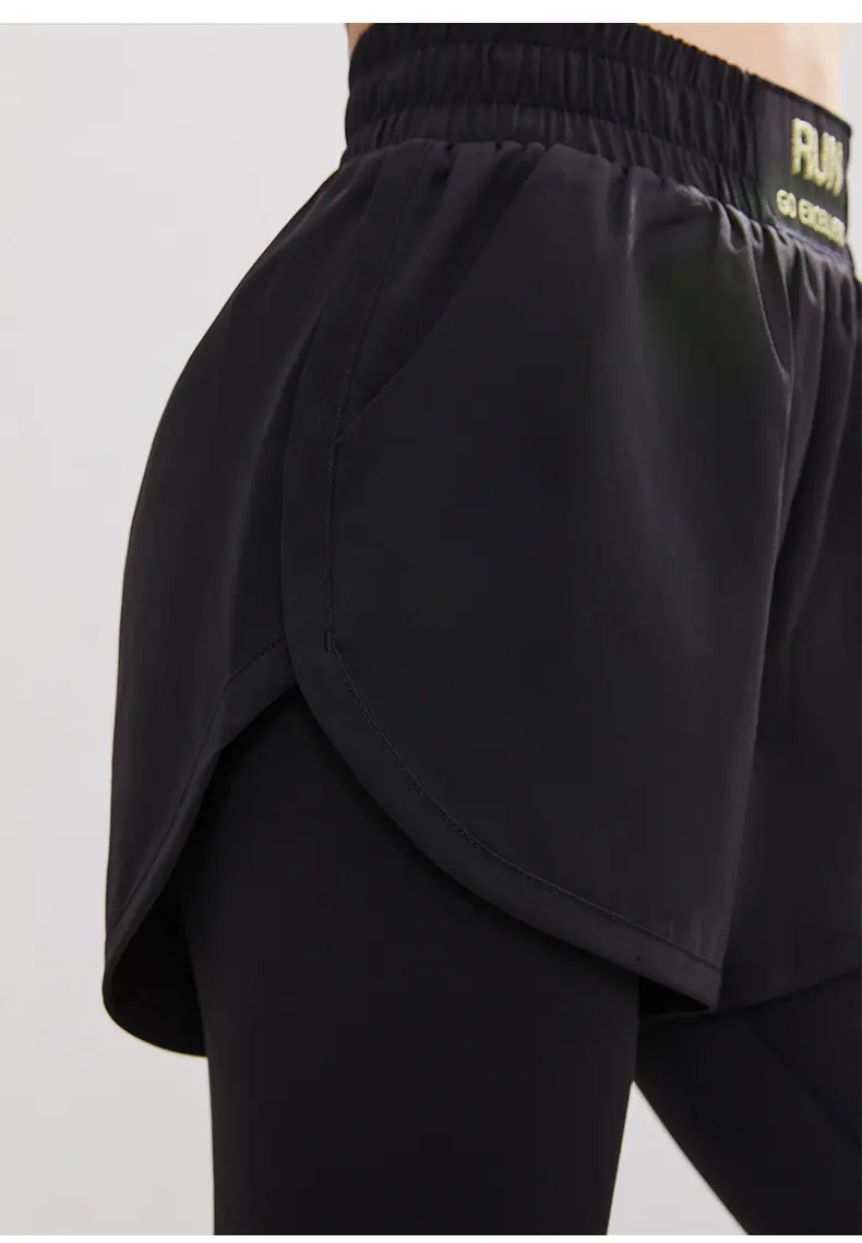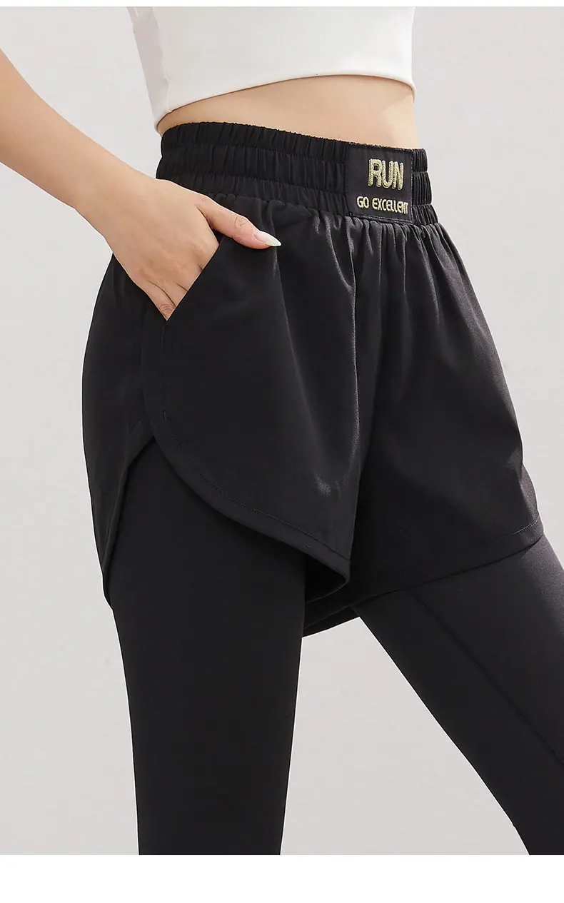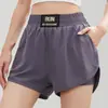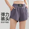 Pantalones cortos deportivos elásticos de verano para mujer, de cintura alta, holgados, transpirables, de secado rápido, con cinturón falso de dos piezas y capa antiluz para correr