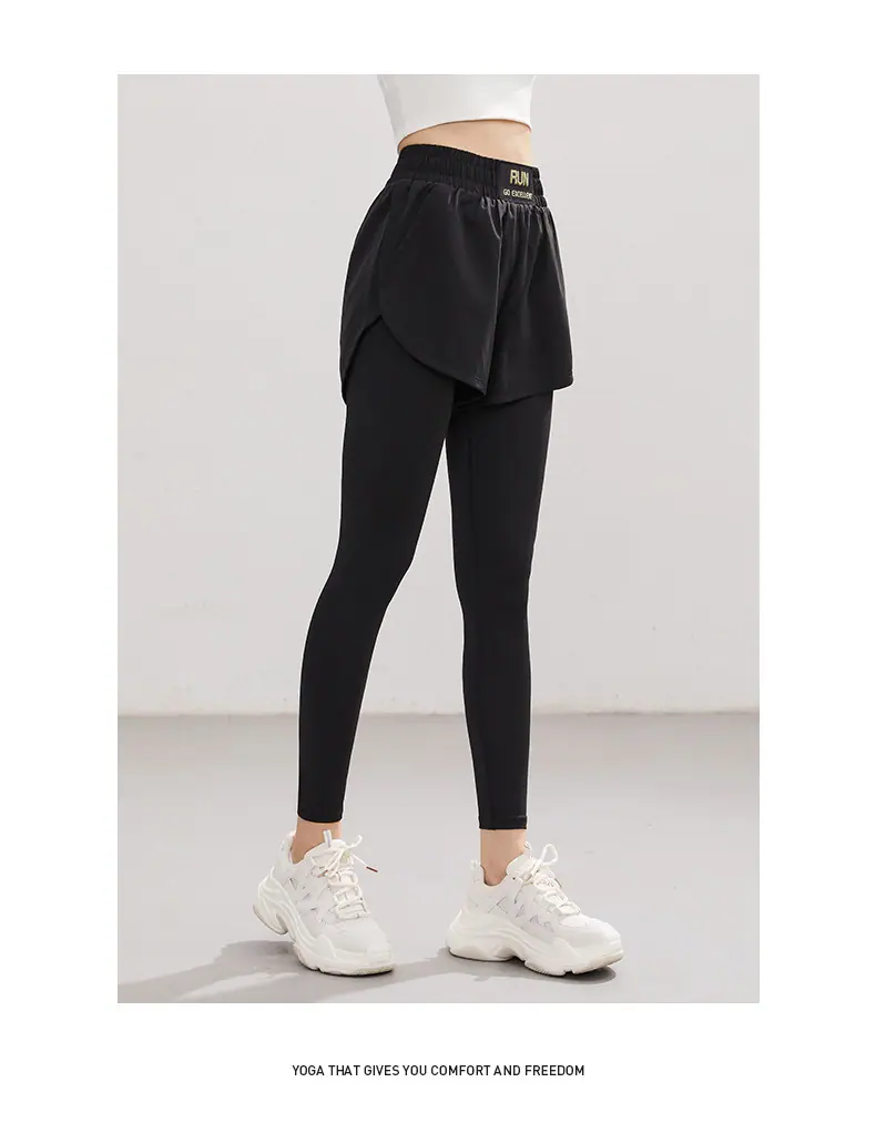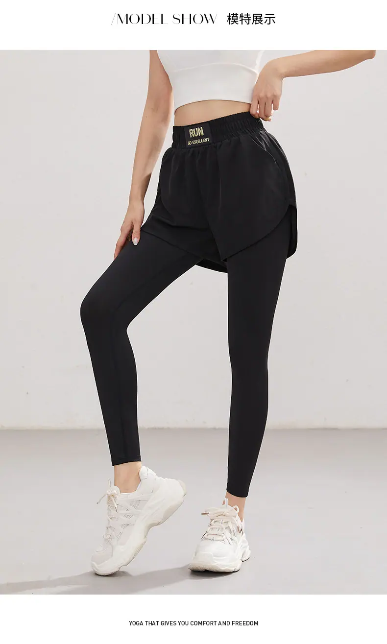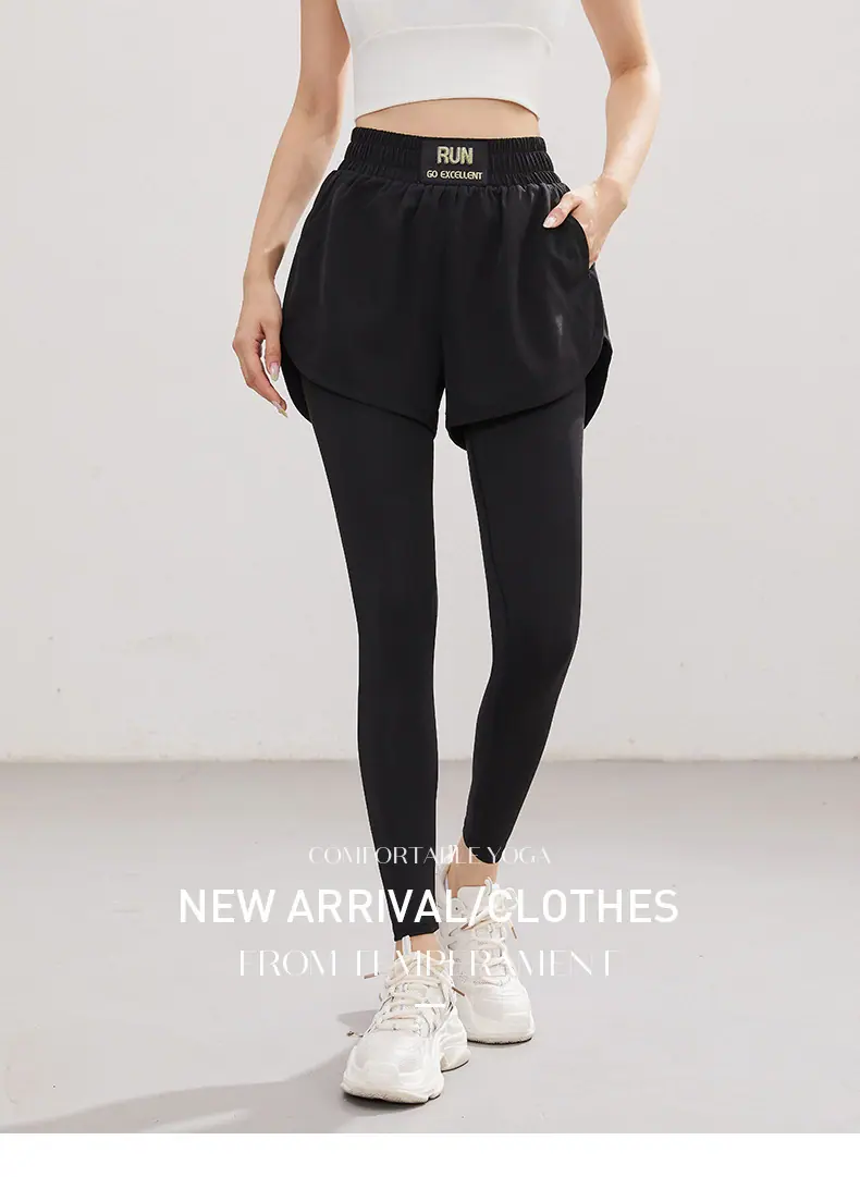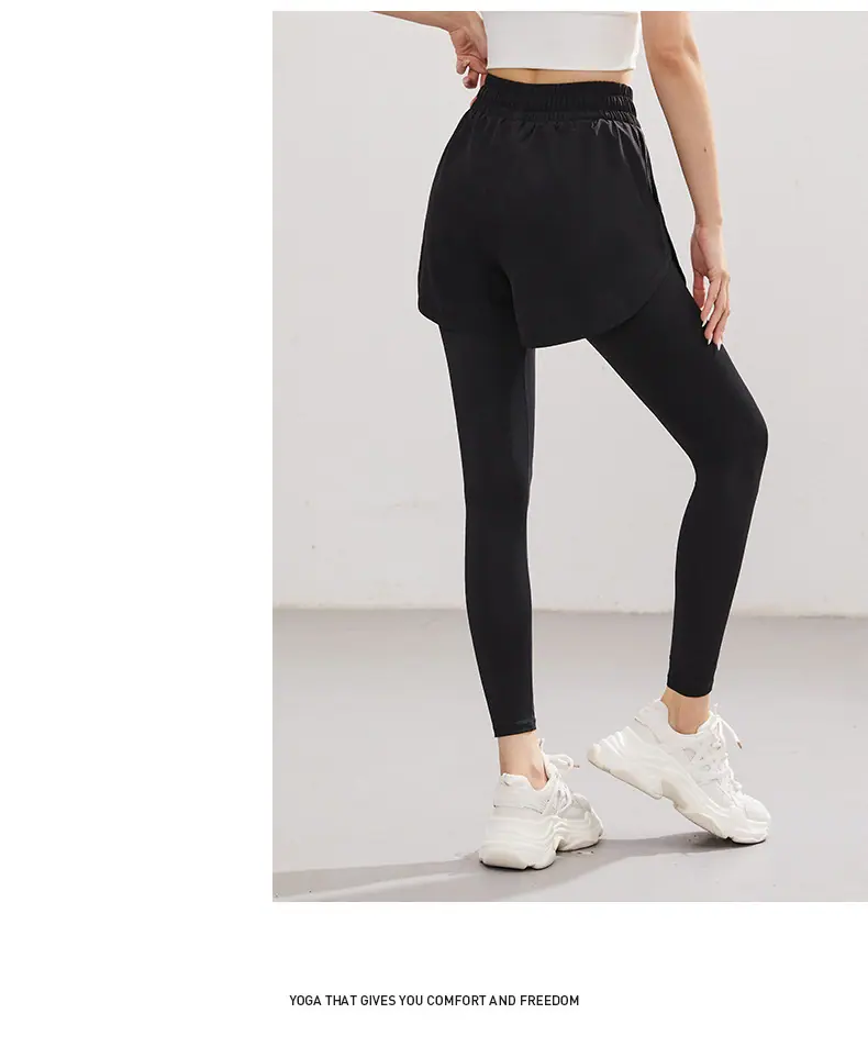 Pantalones cortos deportivos elásticos de verano para mujer, de cintura alta, holgados, transpirables, de secado rápido, con cinturón falso de dos piezas y capa antiluz para correr