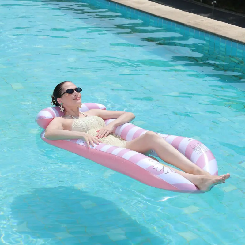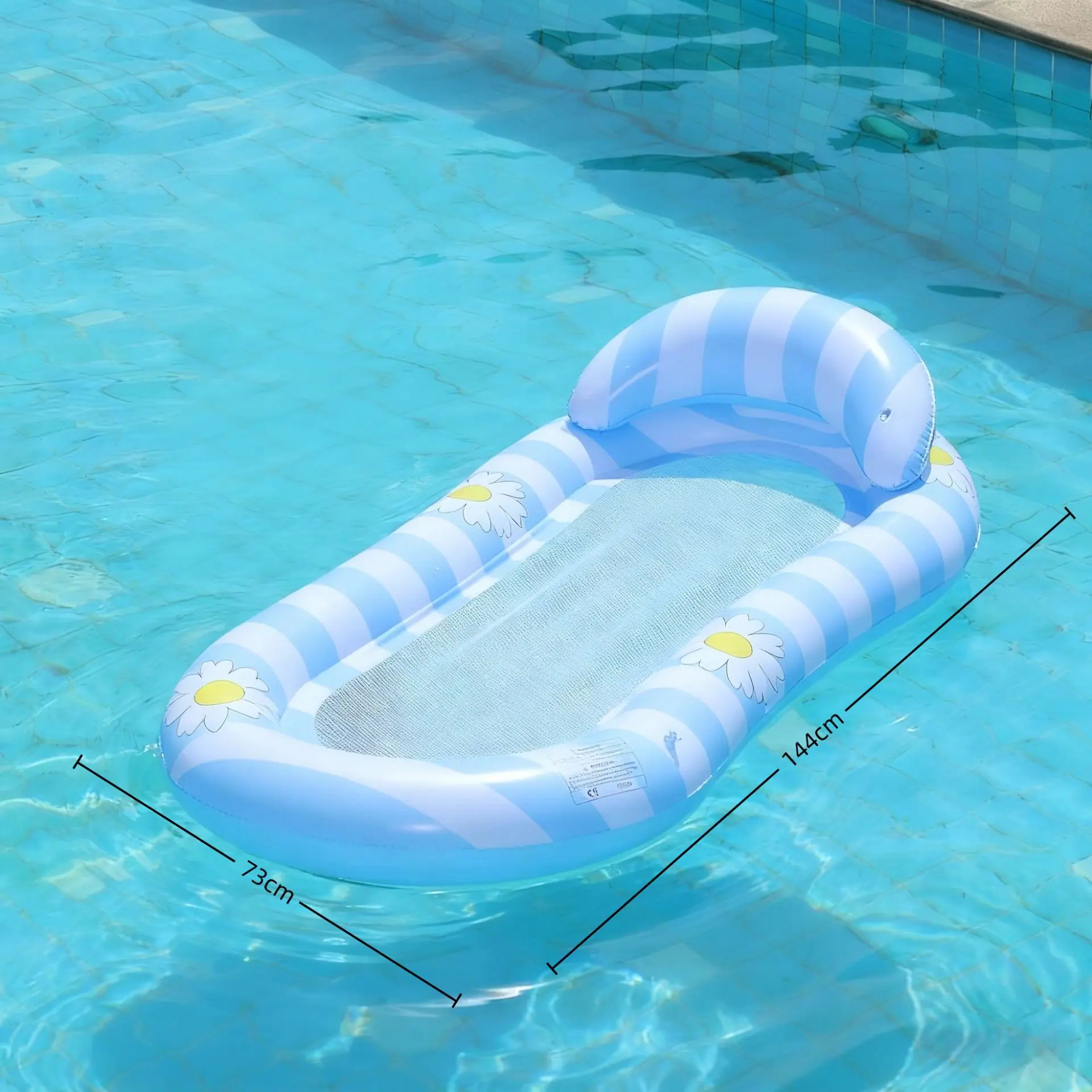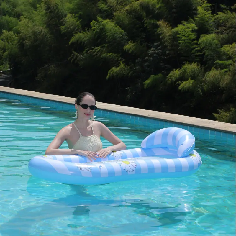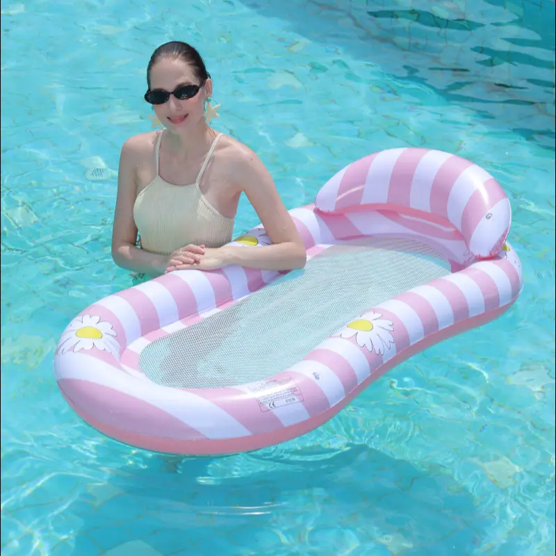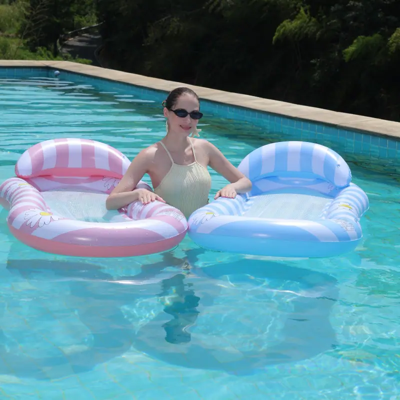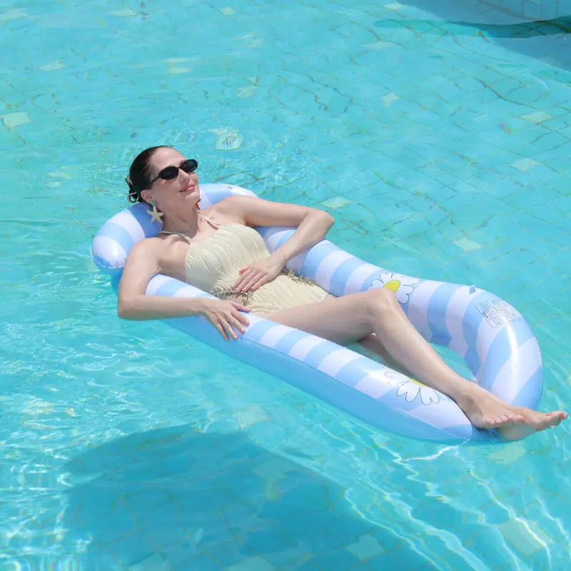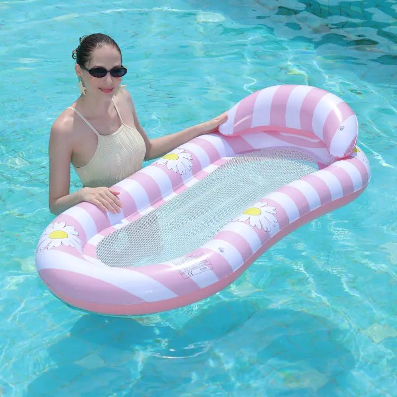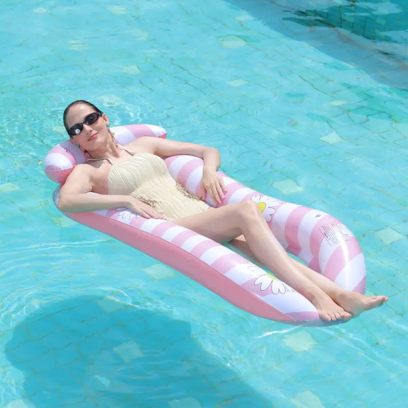 Flotador inflable plegable para piscina transfronterizo, cama flotante de margarita rayada, hamaca acuática de entretenimiento, flotador reclinable individual