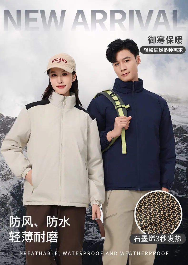 Compra Chaqueta de Grafeno con Cuello Alto para Hombre y Mujer para Exterior a Prueba de Viento Impermeable Casual Deportiva Montañismo Traje Logo Estampado al por mayor en Joom.pro