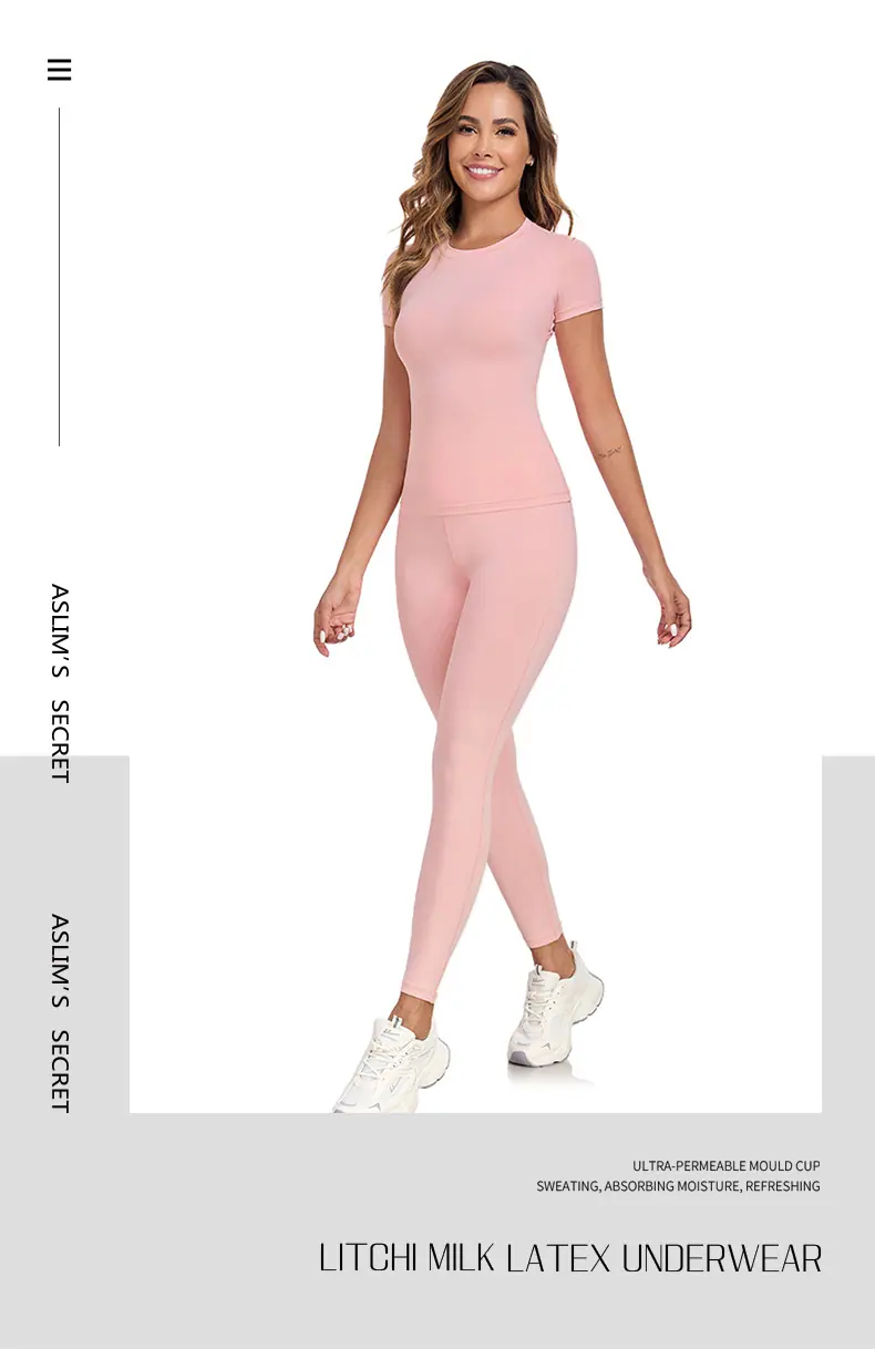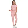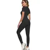 Ropa de Yoga Fitness de Secado Rápido Transfronteriza para Correr al Aire Libre, Deportiva, Cuello Redondo, Ajustada, Manga Corta, Adelgazante, Conjunto de Traje de Yoga