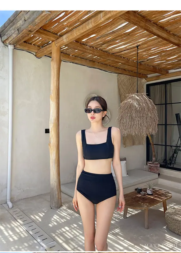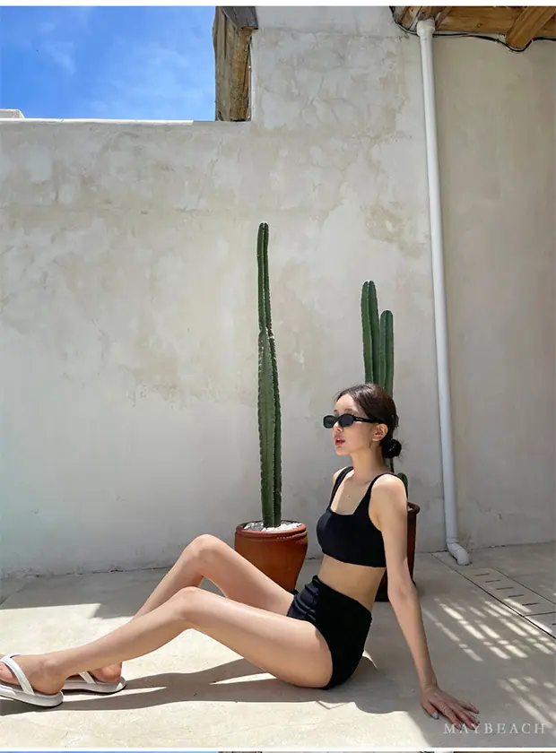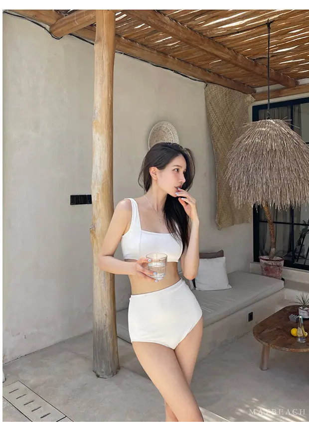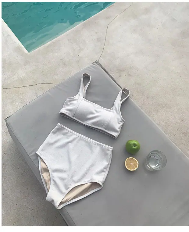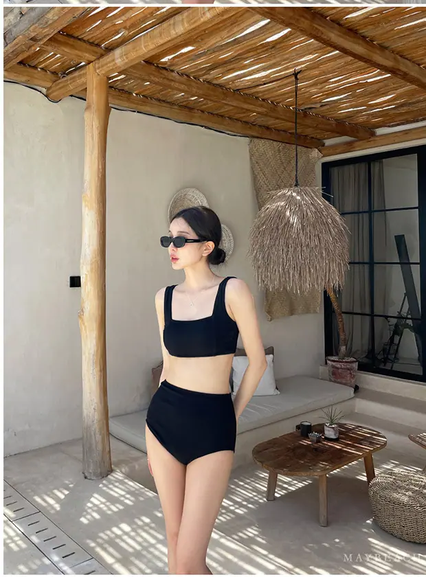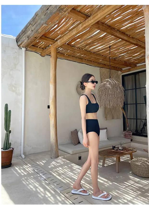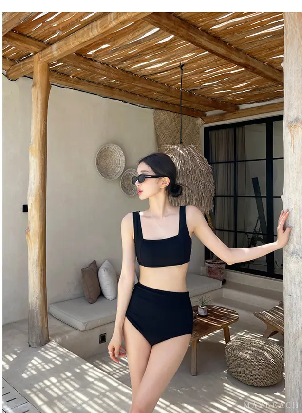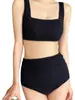 Fábrica de Origen Bikini Dividido para Mujer Traje de Baño Color Sólido Pantalones de Cintura Alta Cubre Vientre Delgado Ajustado Picante Vacaciones en Aguas Termales