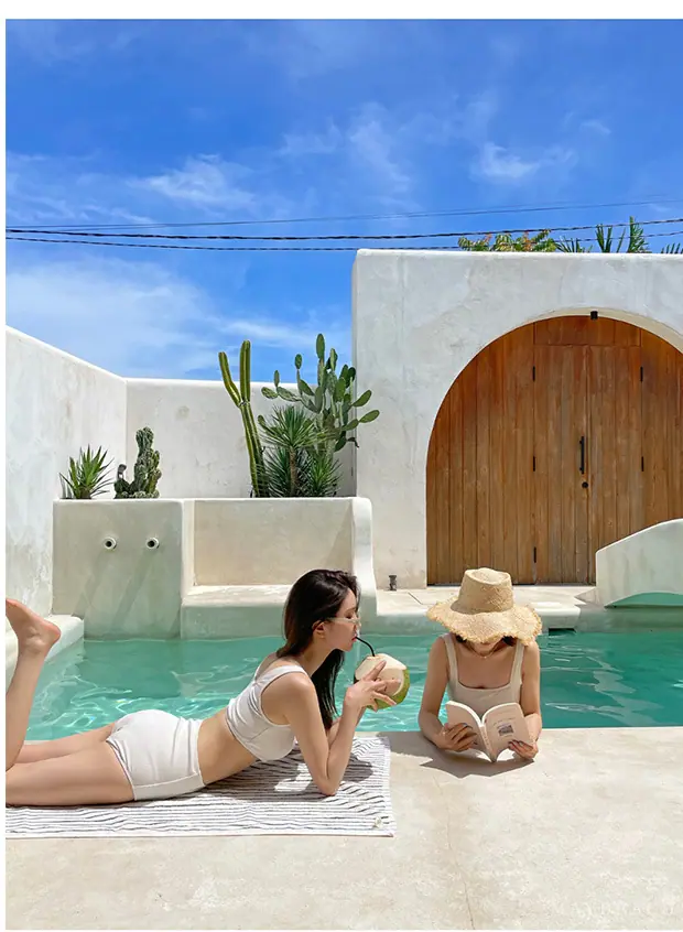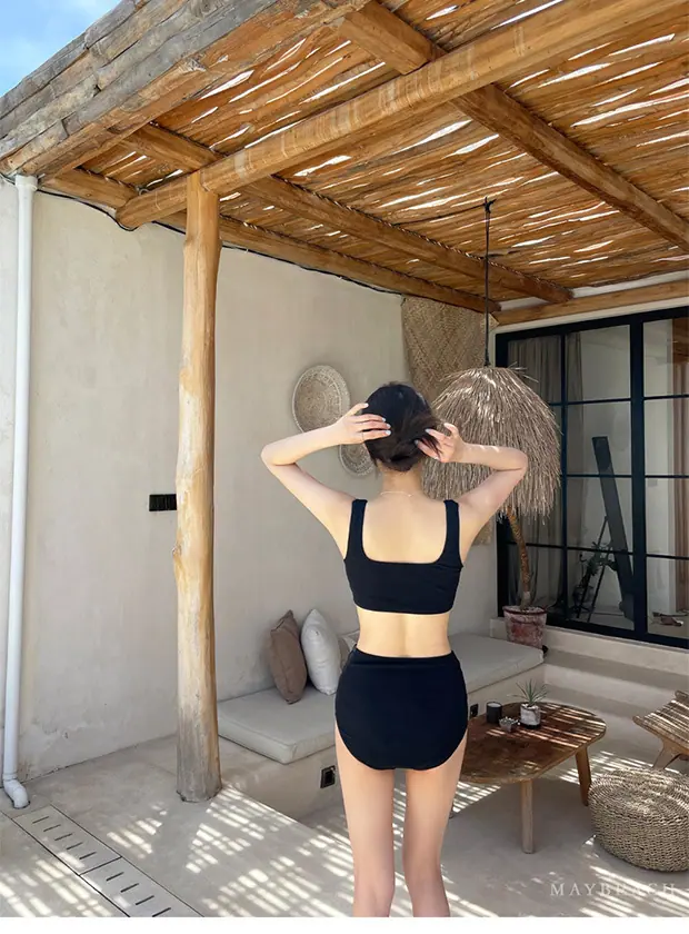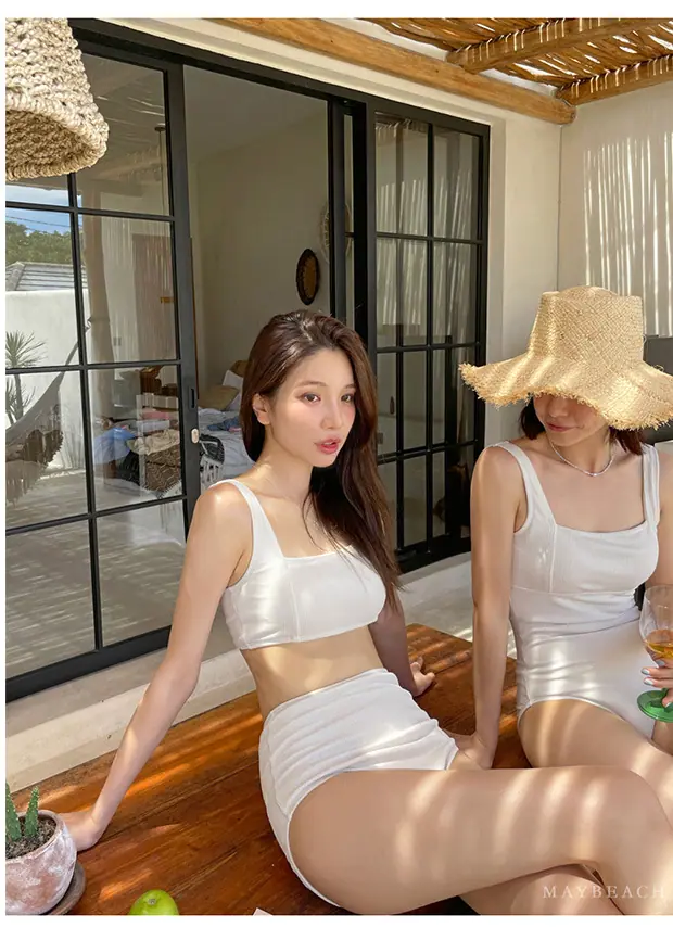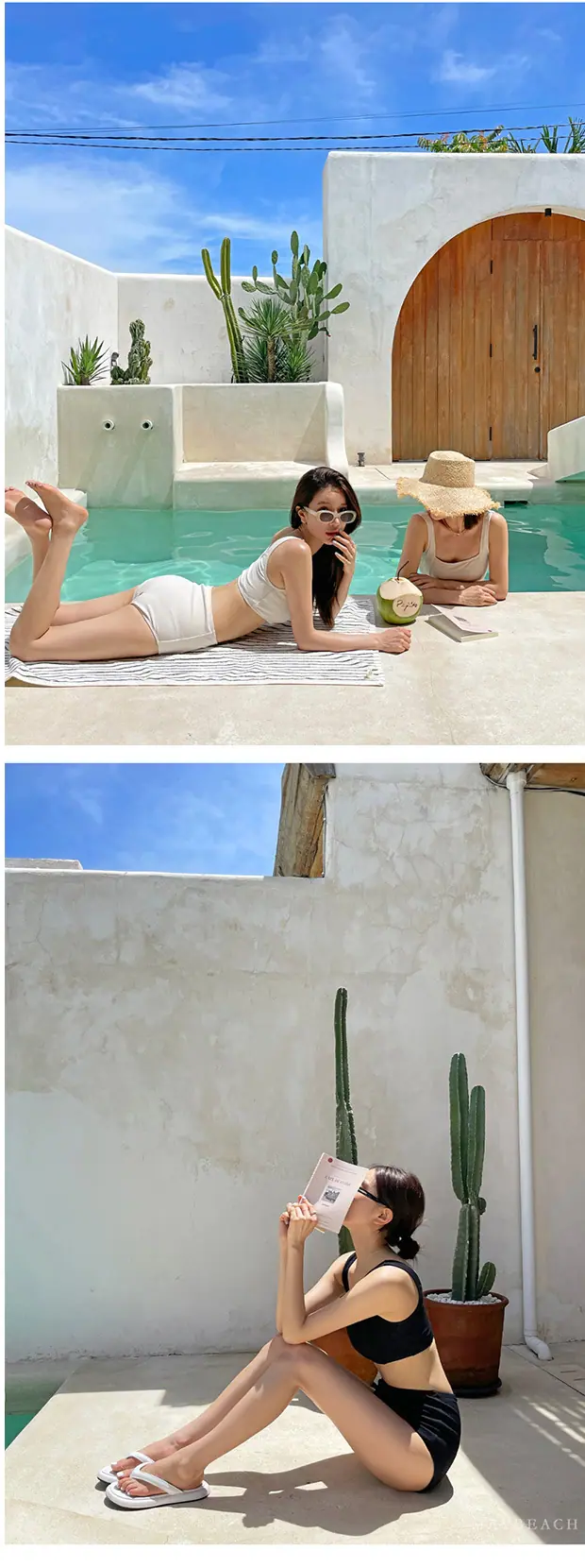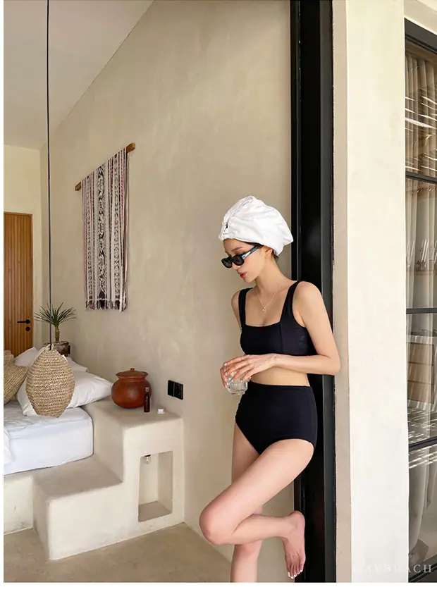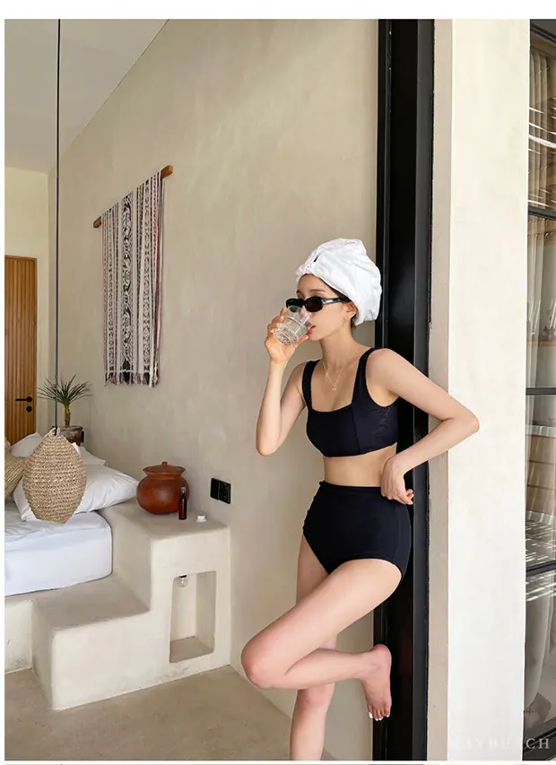 Fábrica de Origen Bikini Dividido para Mujer Traje de Baño Color Sólido Pantalones de Cintura Alta Cubre Vientre Delgado Ajustado Picante Vacaciones en Aguas Termales