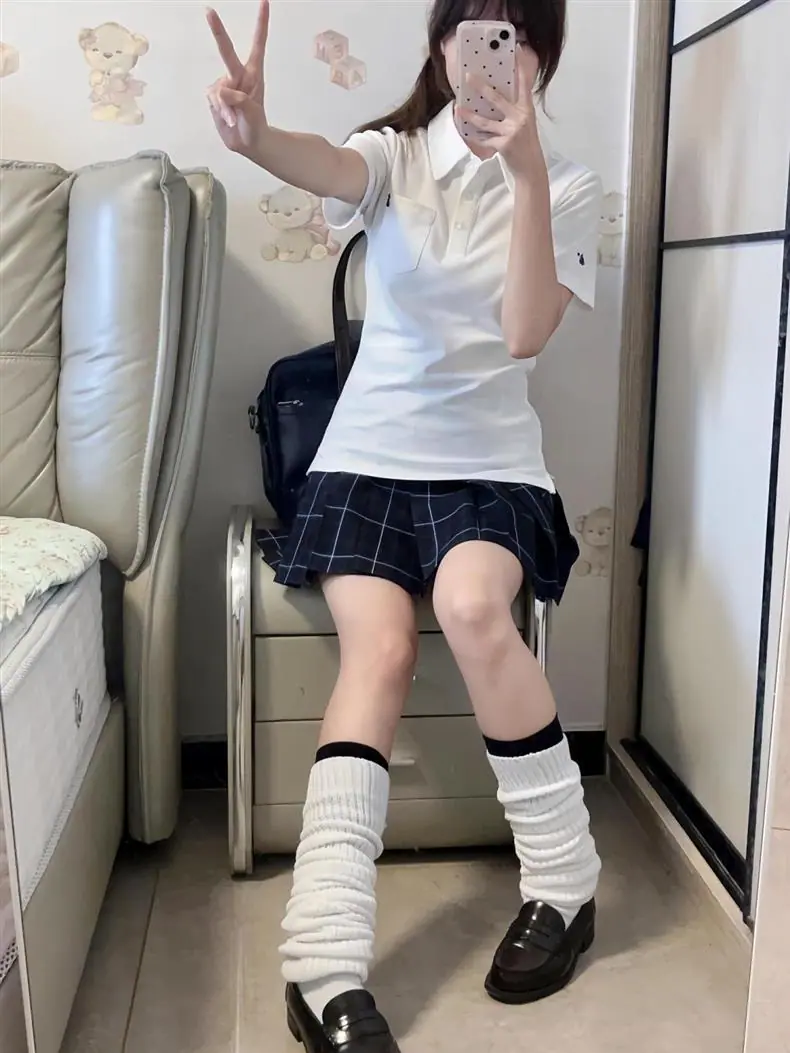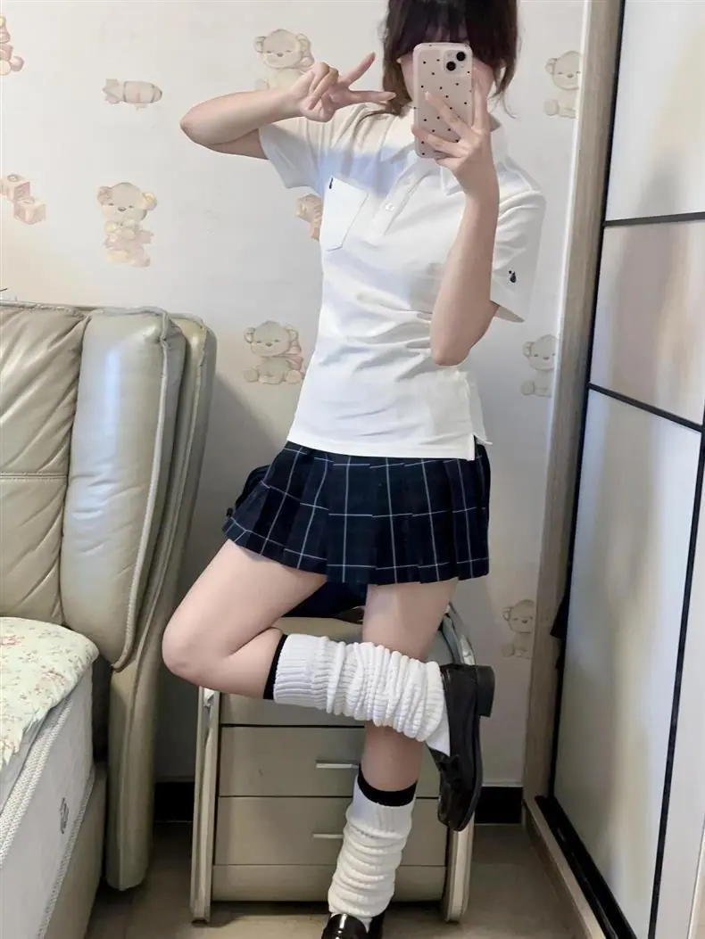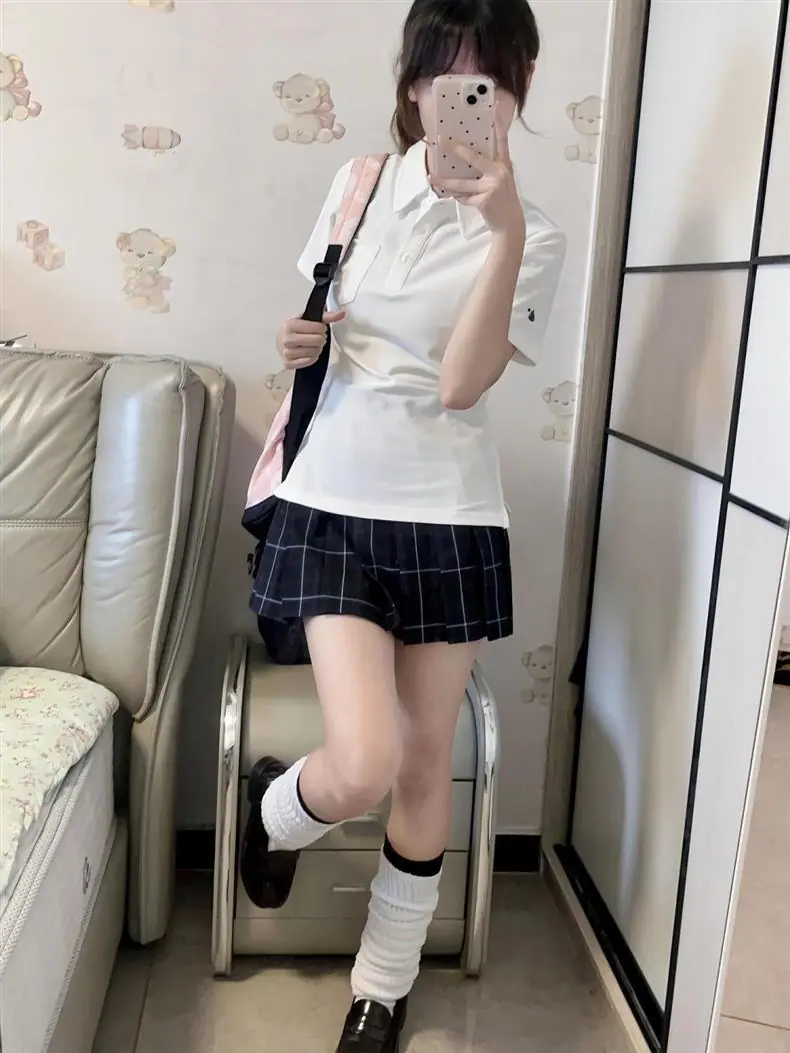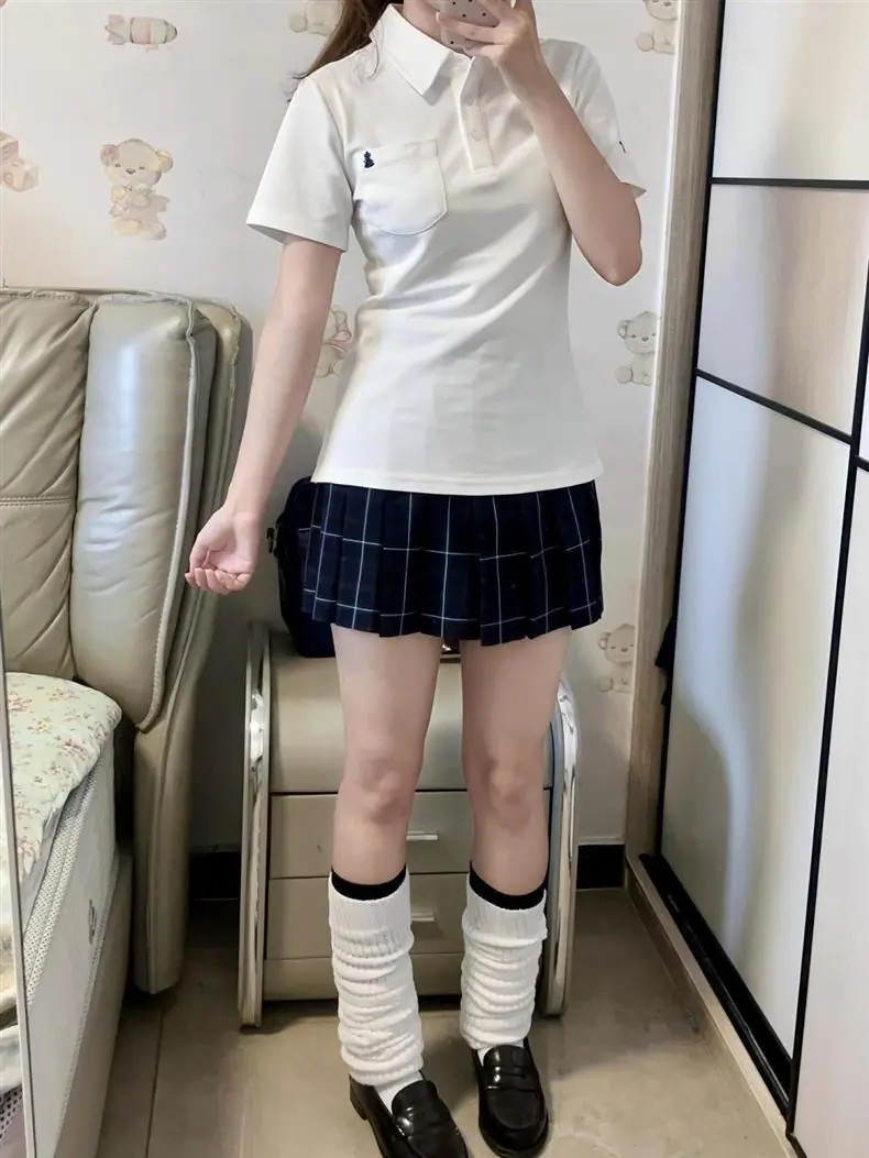 Uniforme JK Polo de Cintura para Mujer Verano Nuevo Estilo Universitario Japonés Básico Sentido Escolar Top de Manga Corta para Estudiantes