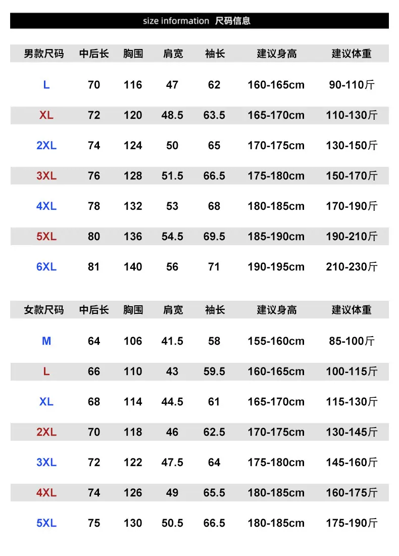 M, L, XL, 2XL, 3XL, 4XL, 5XL