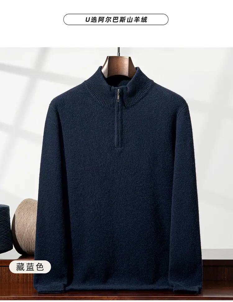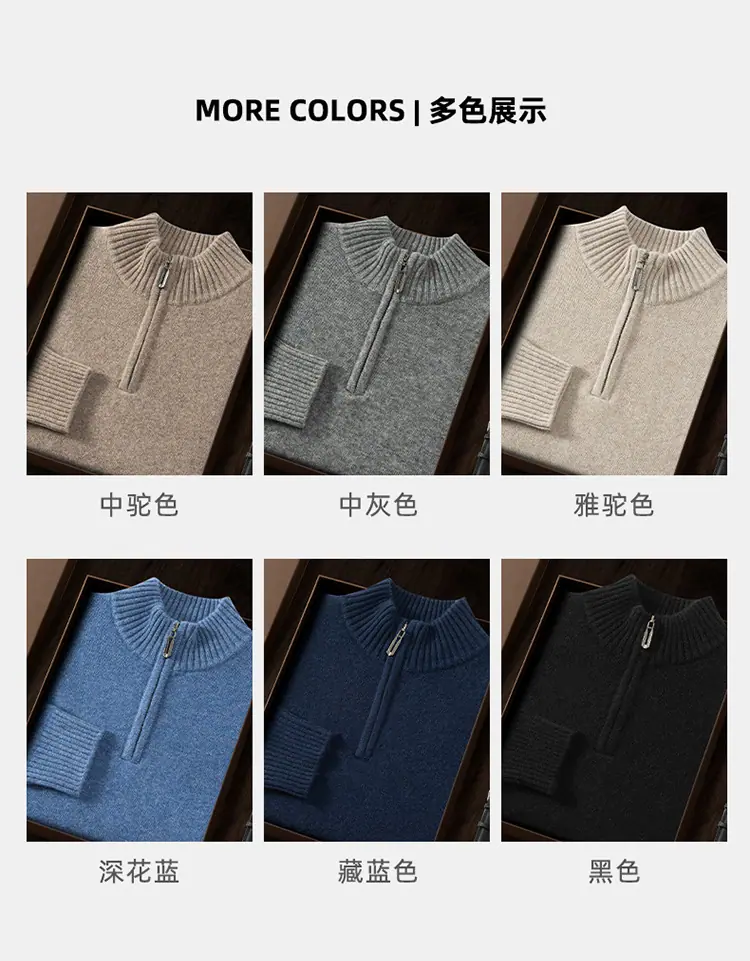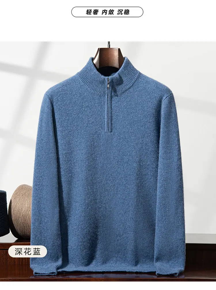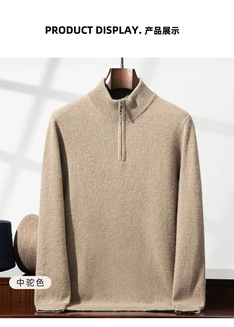 Compra Suéter de cachemira con cremallera para hombre para otoño e invierno, cuello alto suelto, moda casual de negocios, camisa básica de punto, suéter grueso al por mayor en Joom.pro