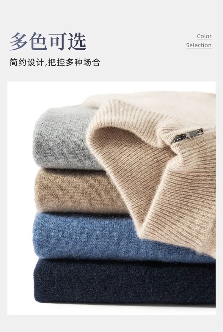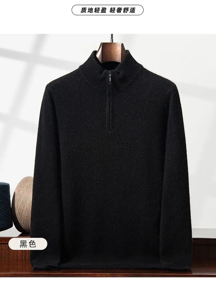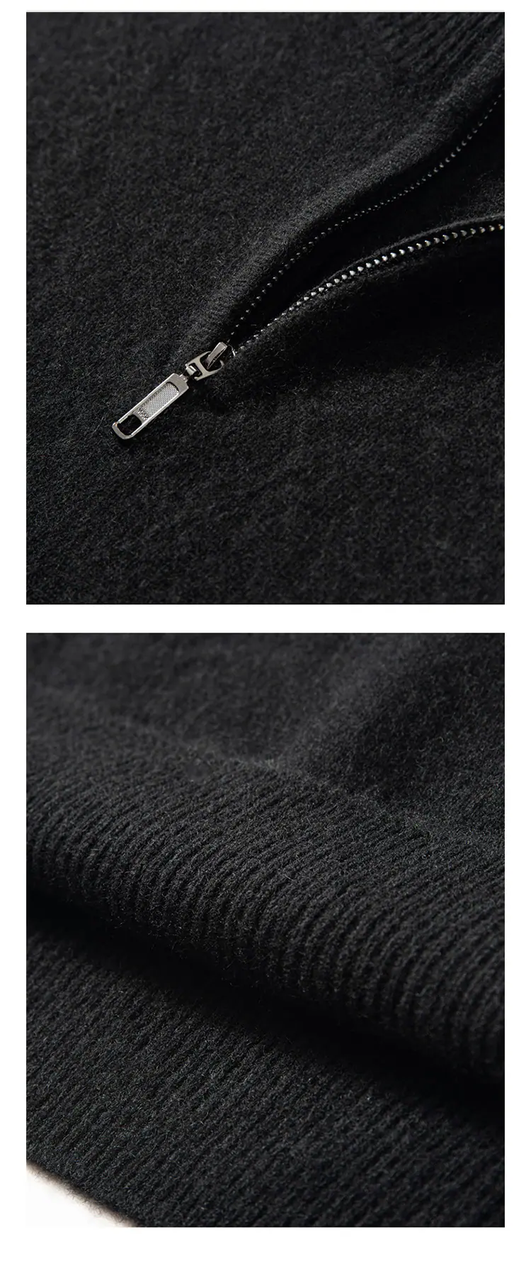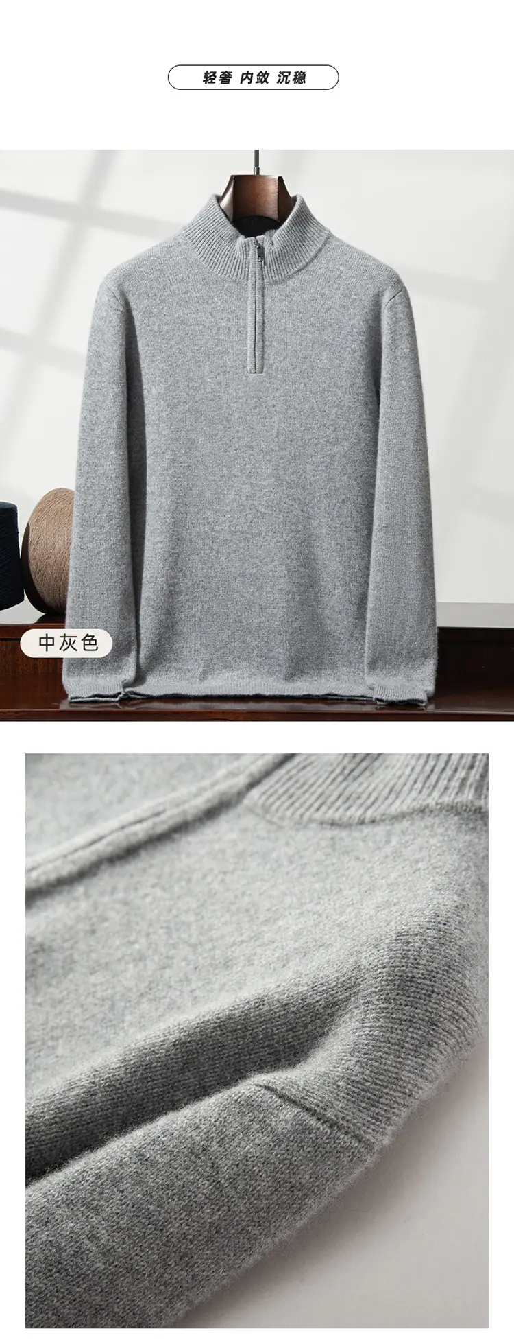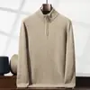 Suéter de cachemira con cremallera para hombre para otoño e invierno, cuello alto suelto, moda casual de negocios, camisa básica de punto, suéter grueso