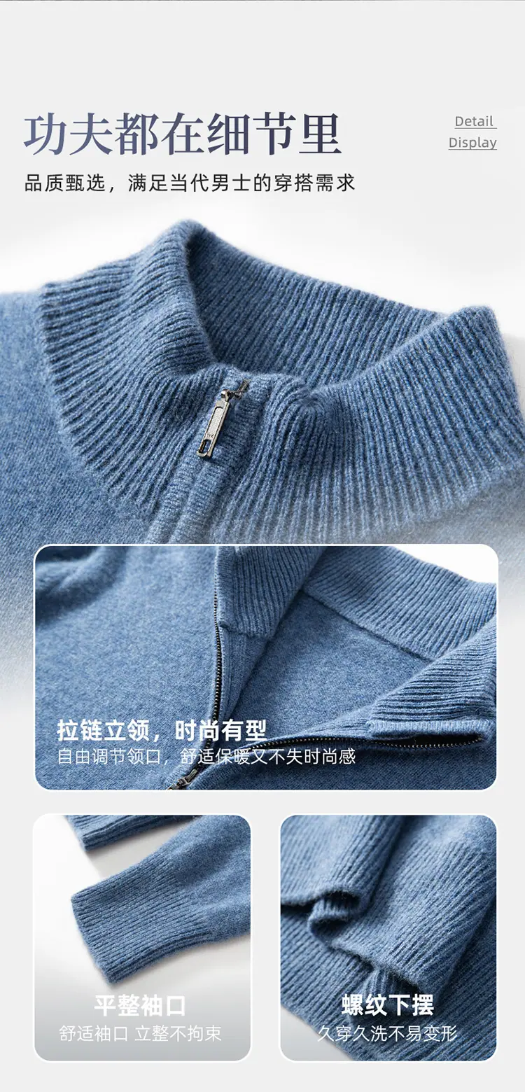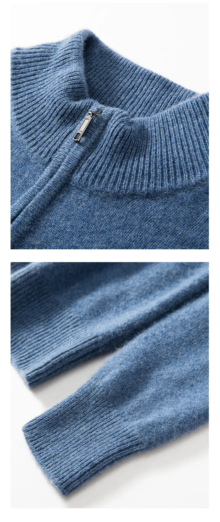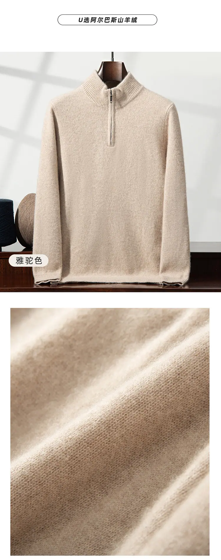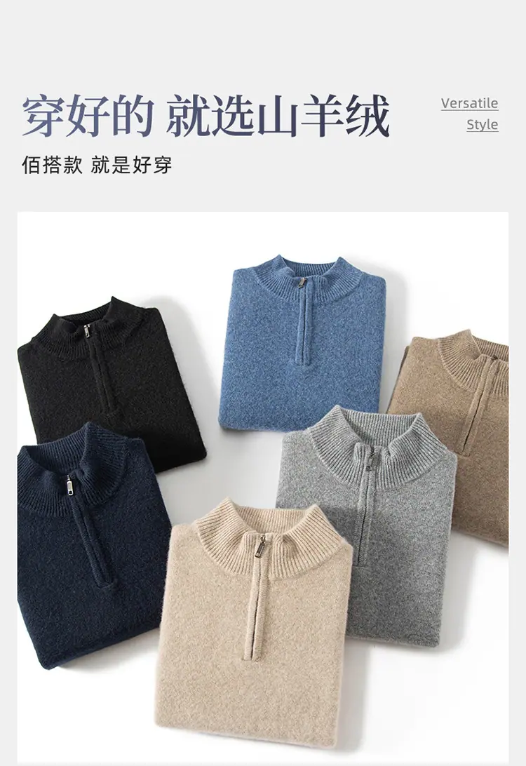 Suéter de cachemira con cremallera para hombre para otoño e invierno, cuello alto suelto, moda casual de negocios, camisa básica de punto, suéter grueso