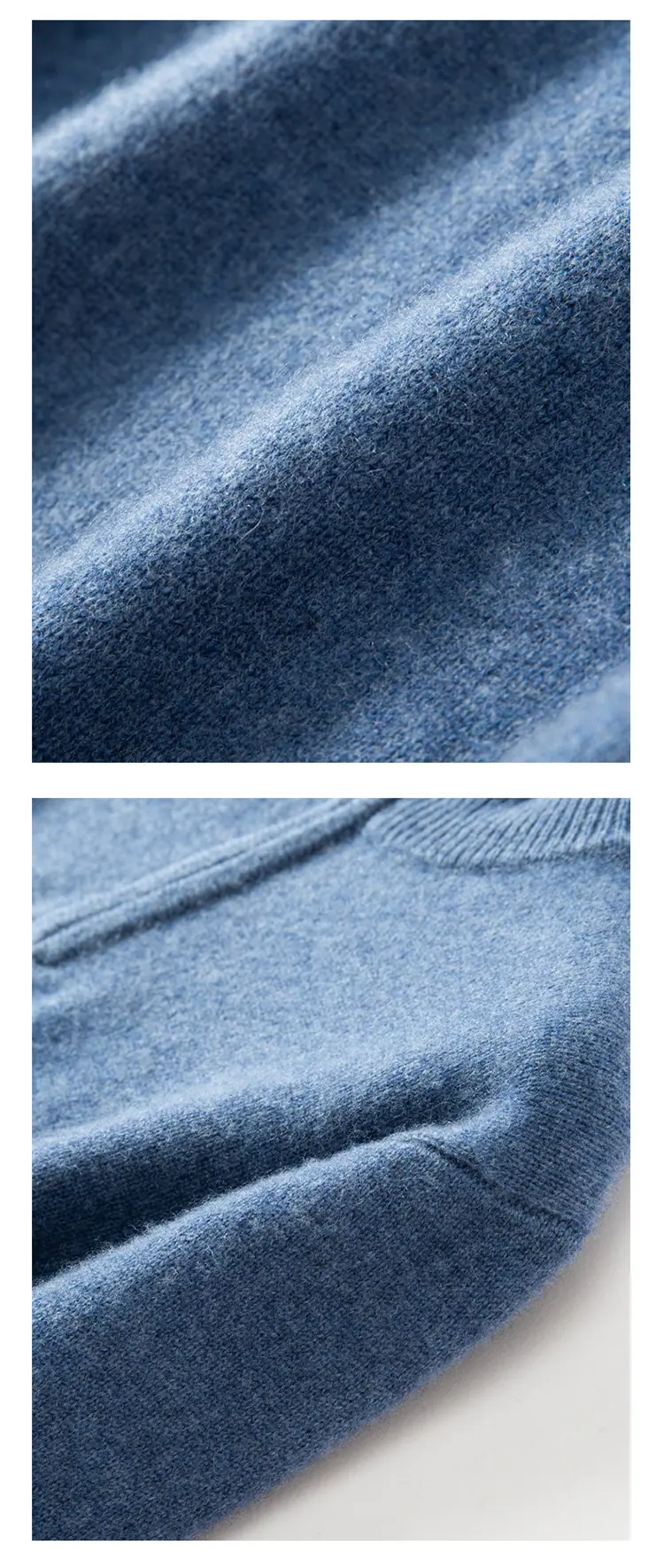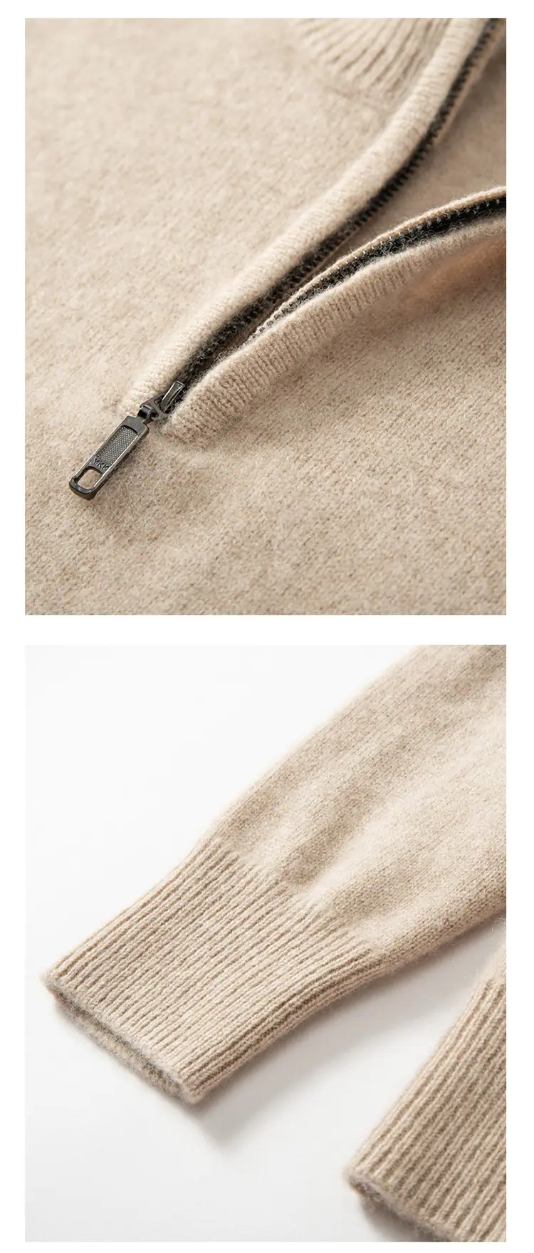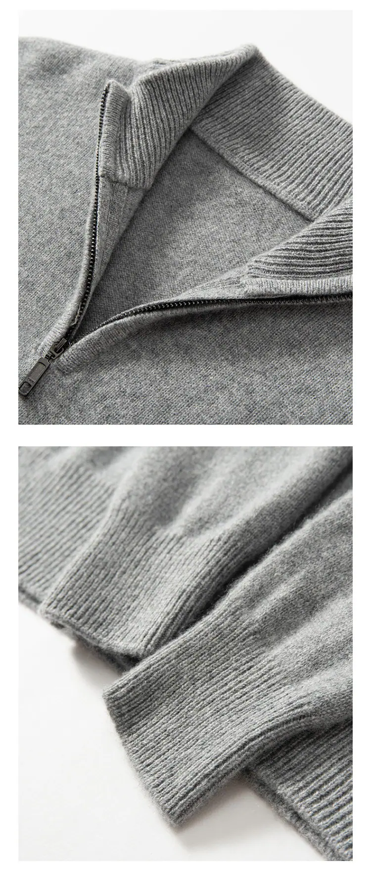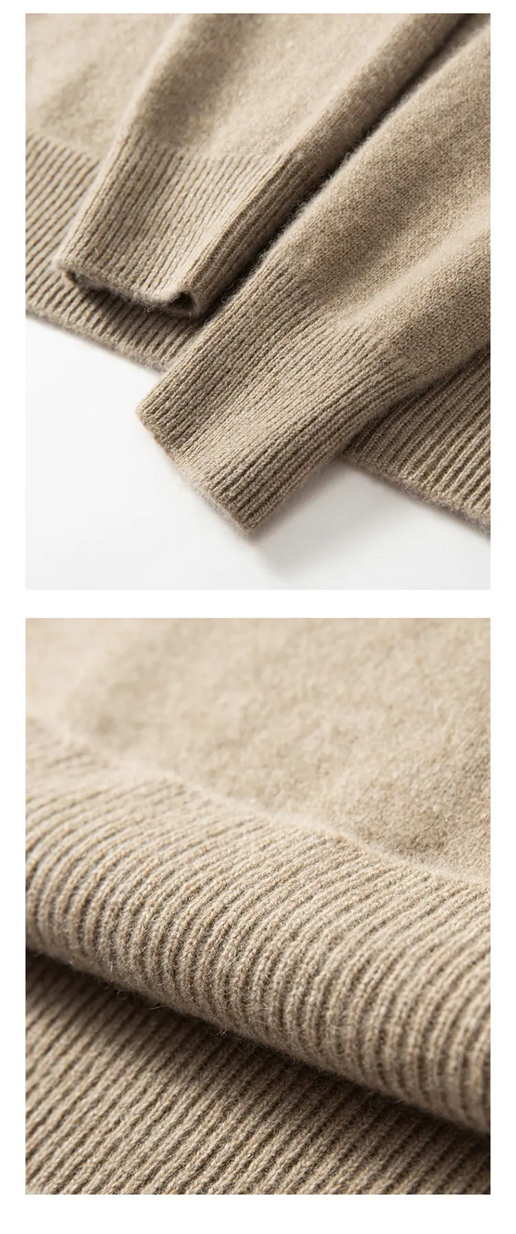 Suéter de cachemira con cremallera para hombre para otoño e invierno, cuello alto suelto, moda casual de negocios, camisa básica de punto, suéter grueso