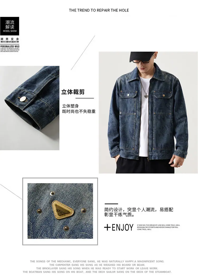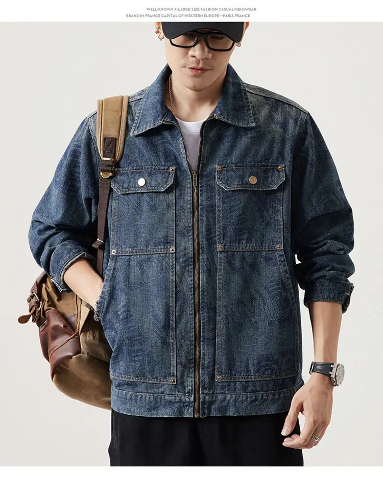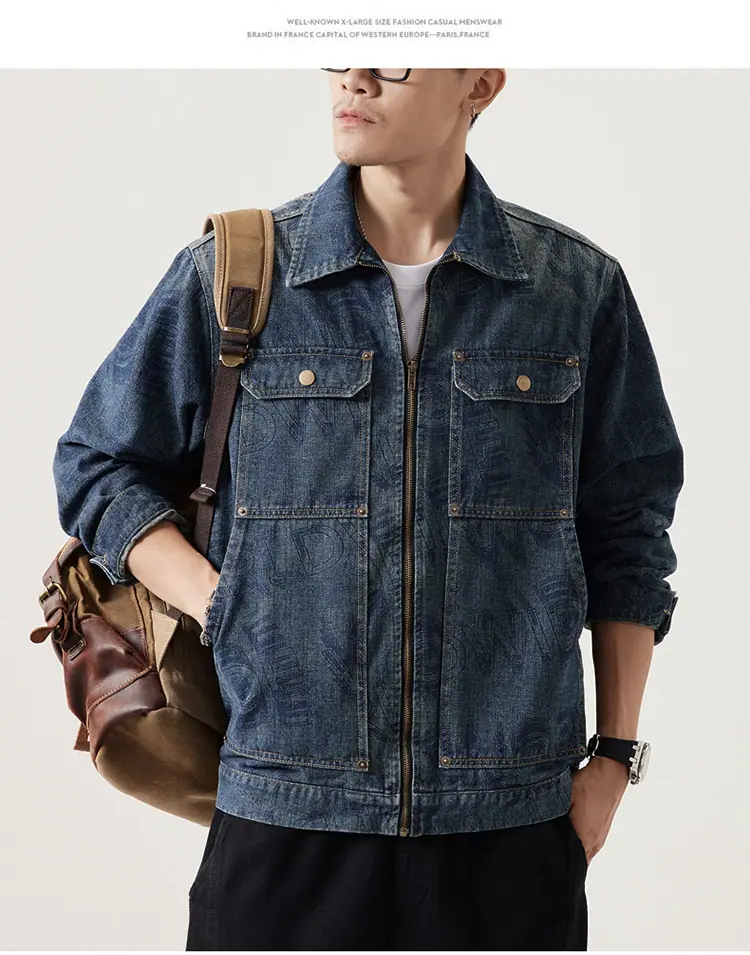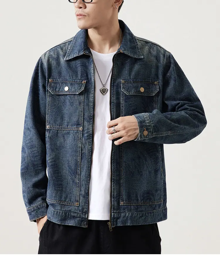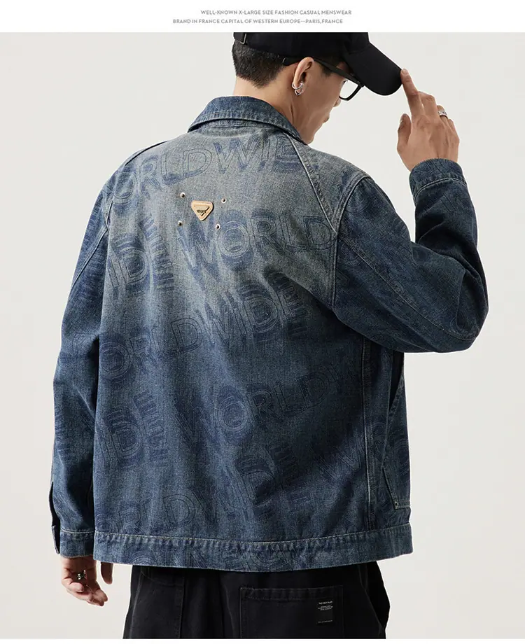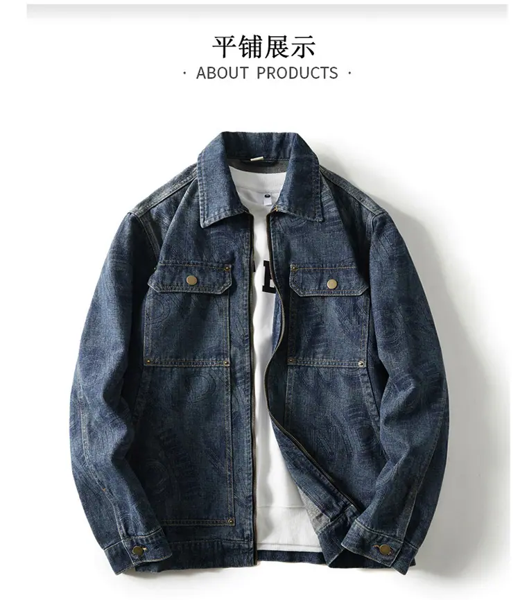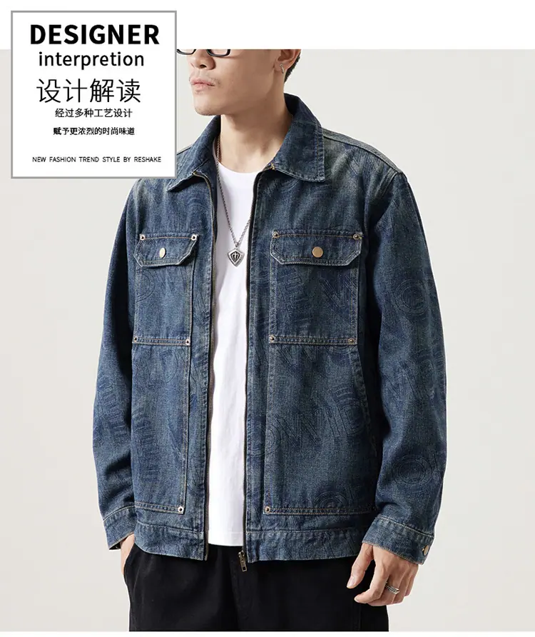Compra Nueva Chaqueta de Mezclilla para Hombre de Talla Grande para Primavera y Otoño, Chaqueta de Mezclilla Juvenil Holgada con Estampado Retro, Venta al por Mayor al por mayor en Joom.pro