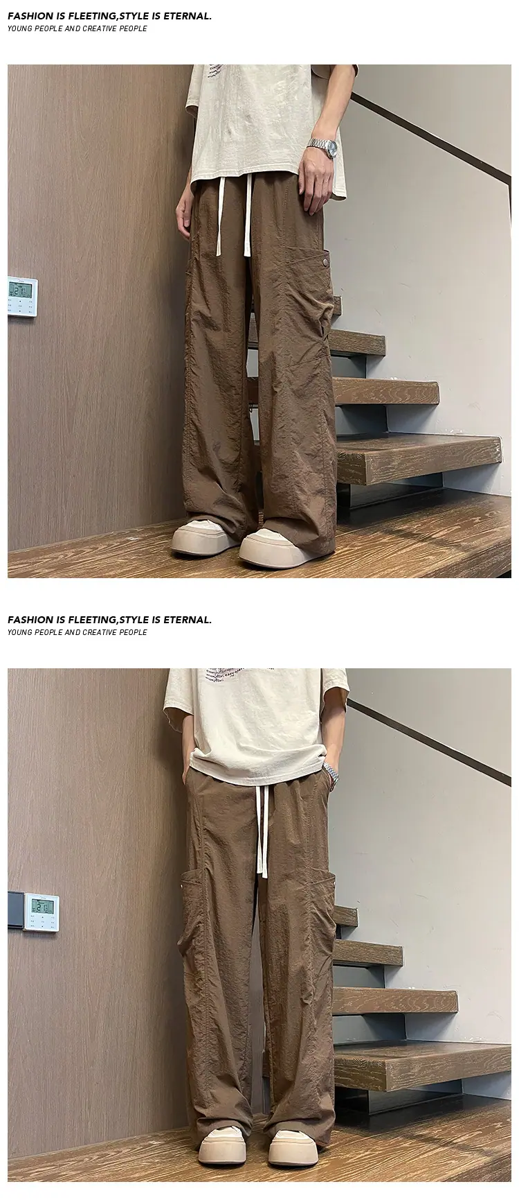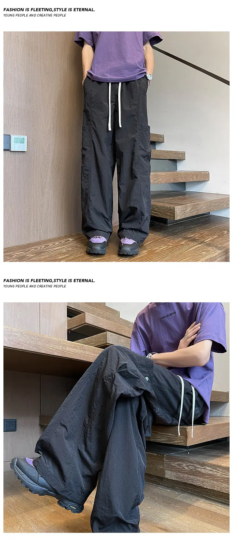 Ropa de Trabajo Funcional Americana Pantalones Cortavientos de Secado Rápido para Hombre Verano Delgados Sistema de Montaña Deportes al Aire Libre Sueltos Rectos Pantalones Largos