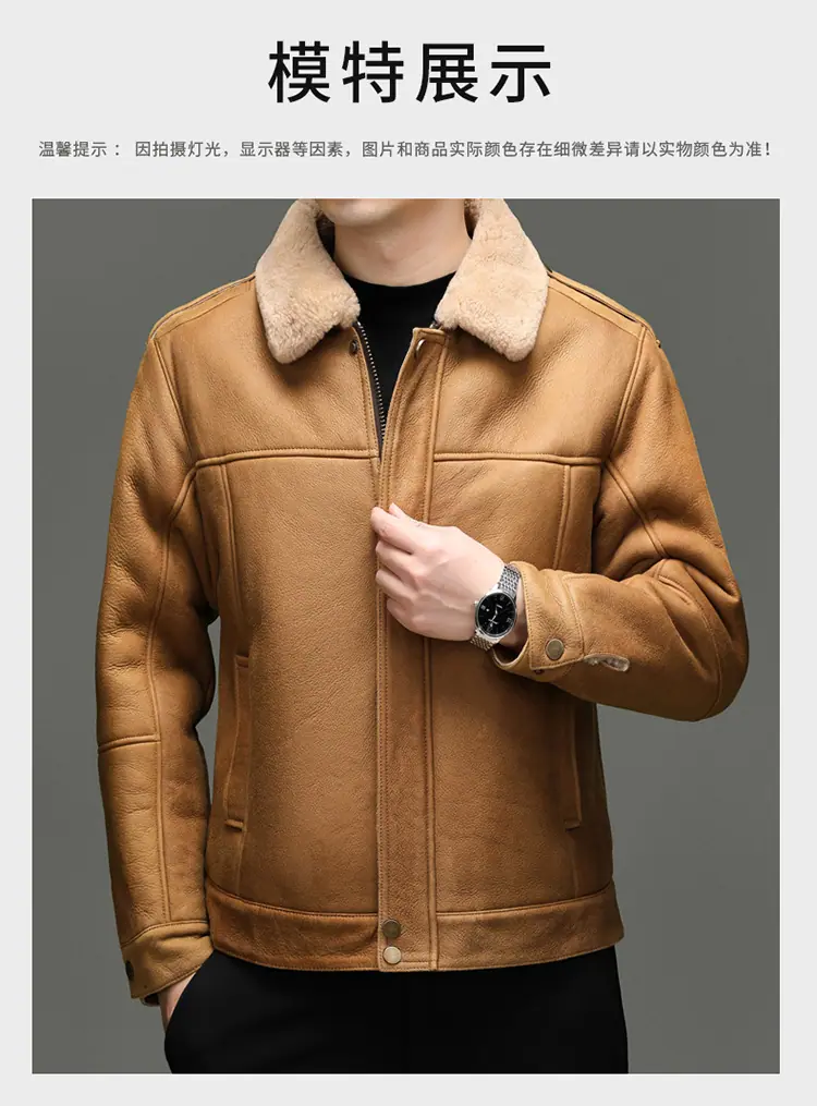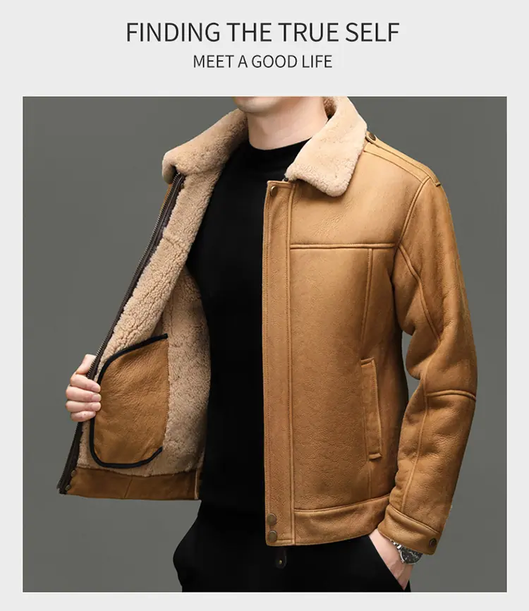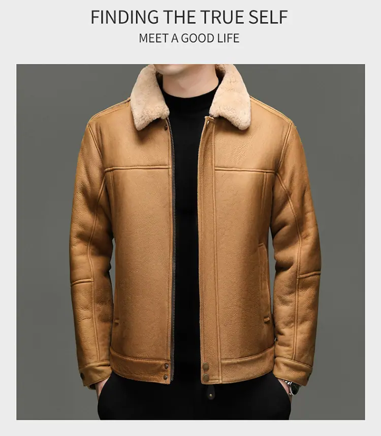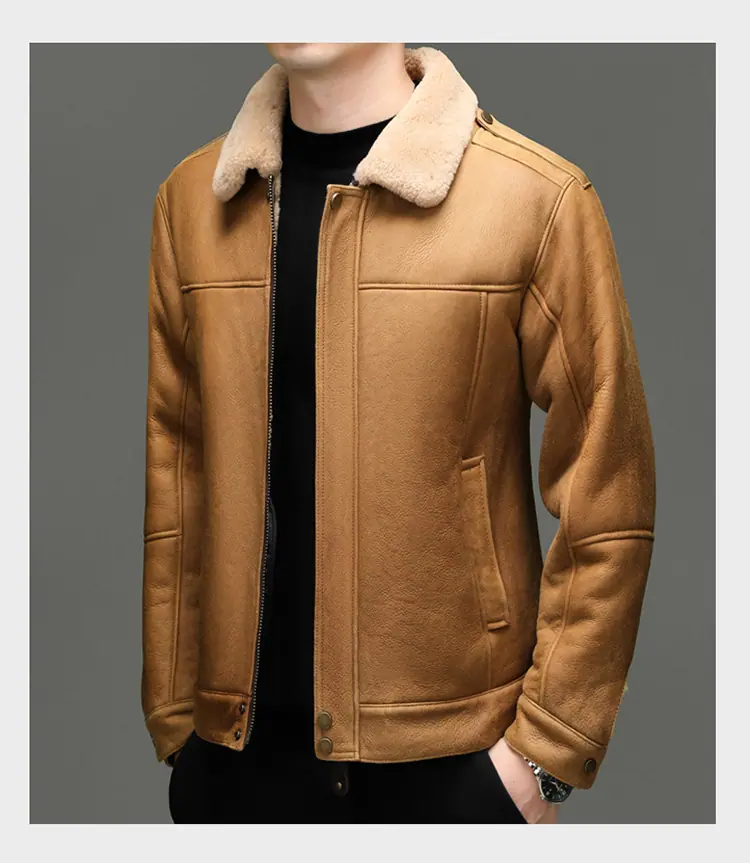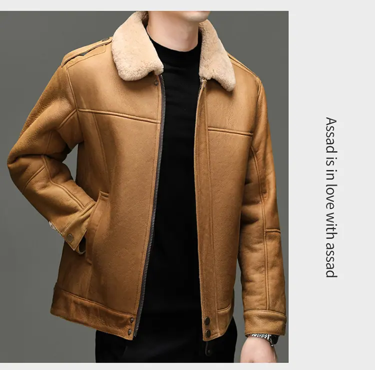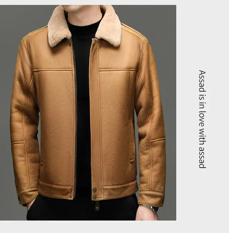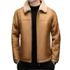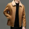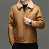 Chaqueta Abrigo Grueso Forrado de Shearling de Cuero Genuino para Hombre Moda Juvenil Casual Chaqueta de Cuero Top para Hombre