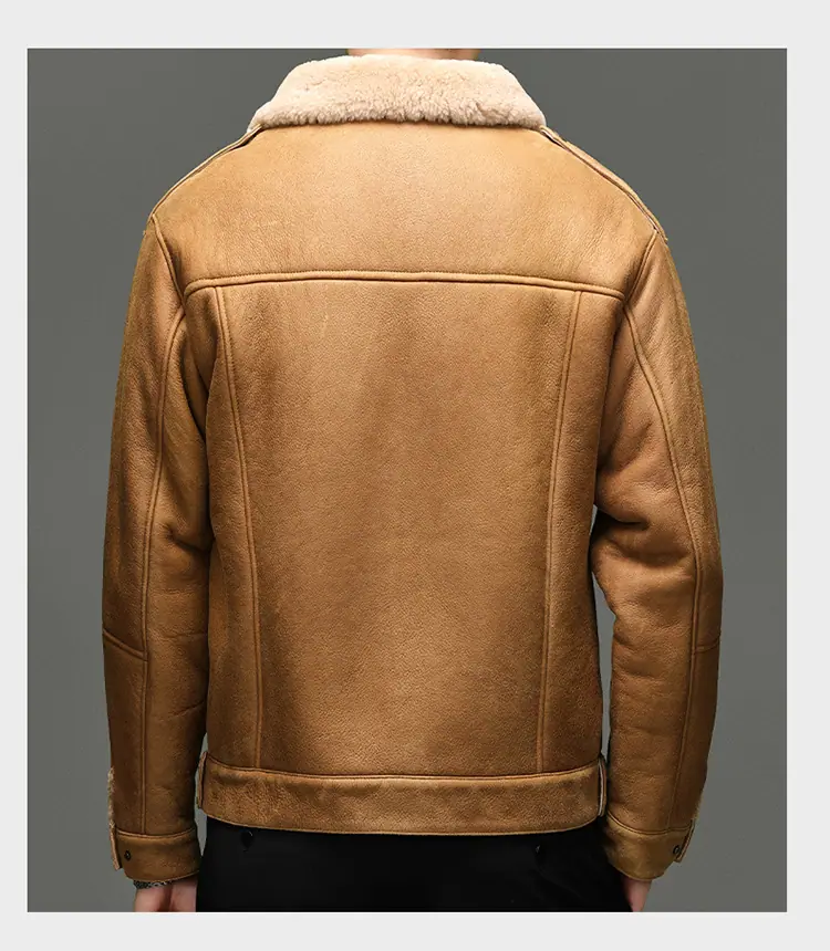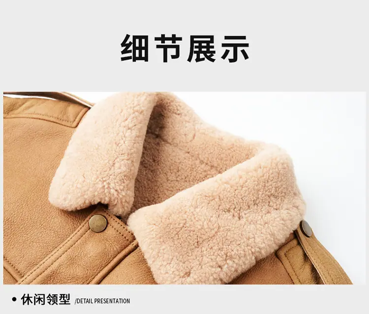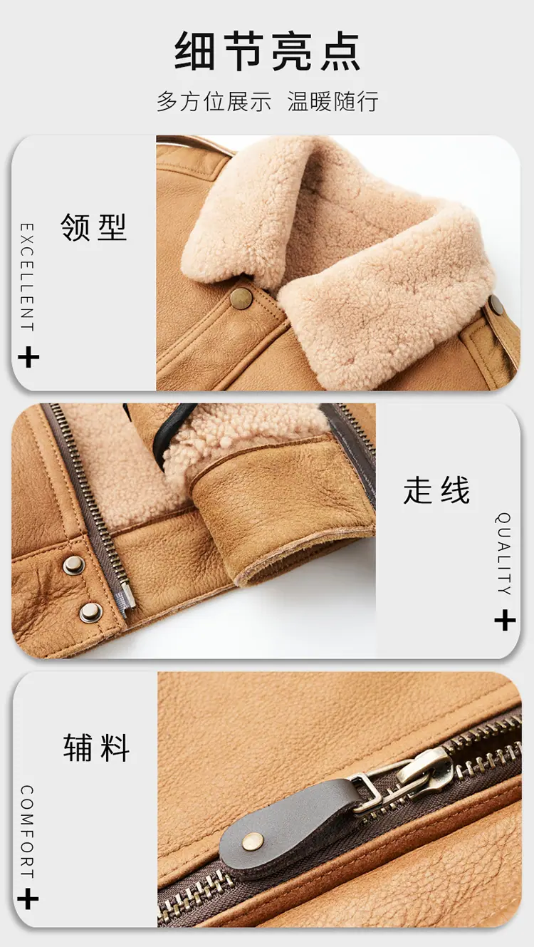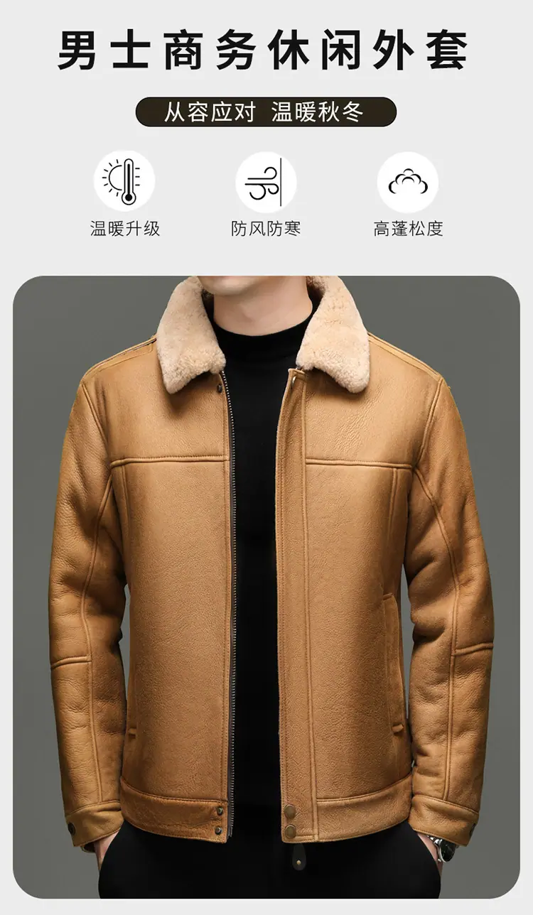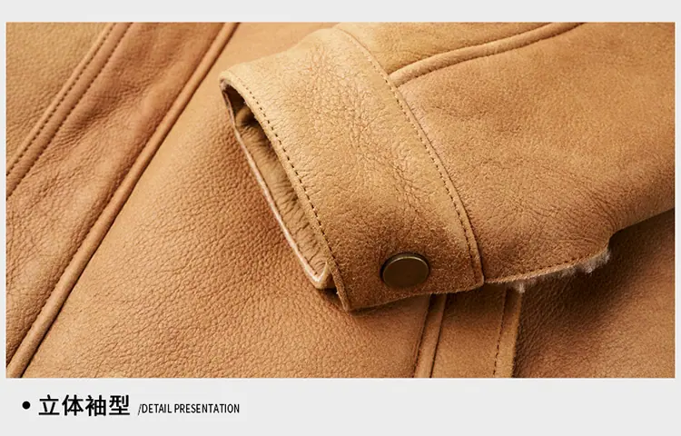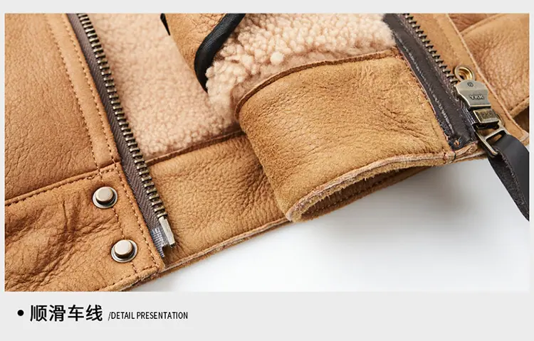 Chaqueta Abrigo Grueso Forrado de Shearling de Cuero Genuino para Hombre Moda Juvenil Casual Chaqueta de Cuero Top para Hombre