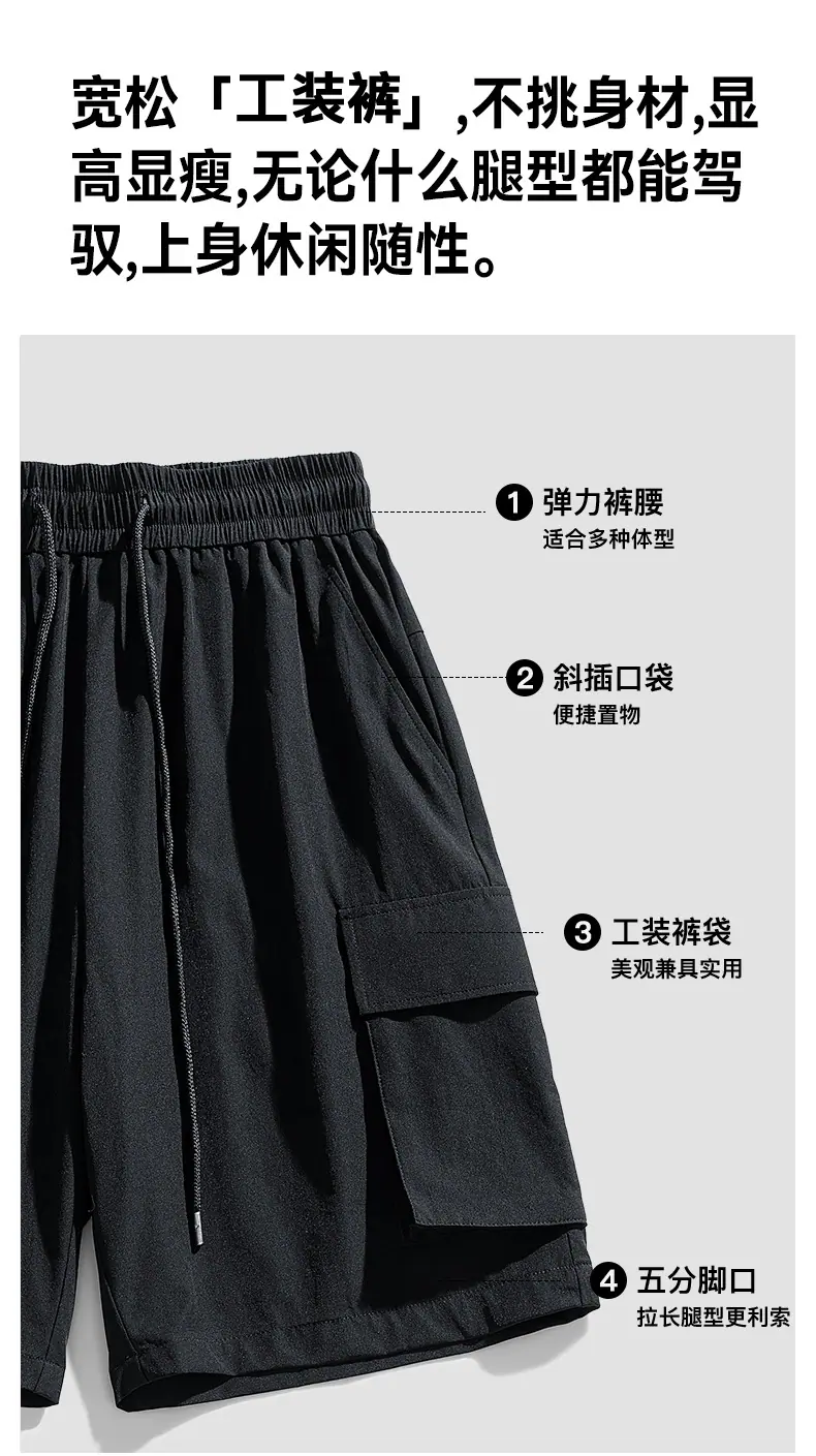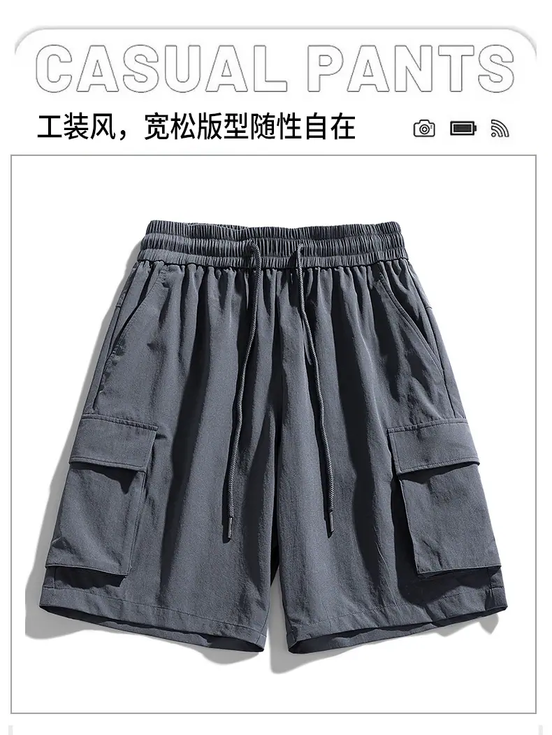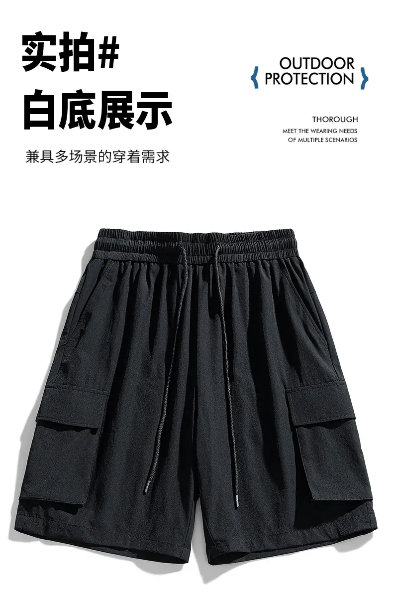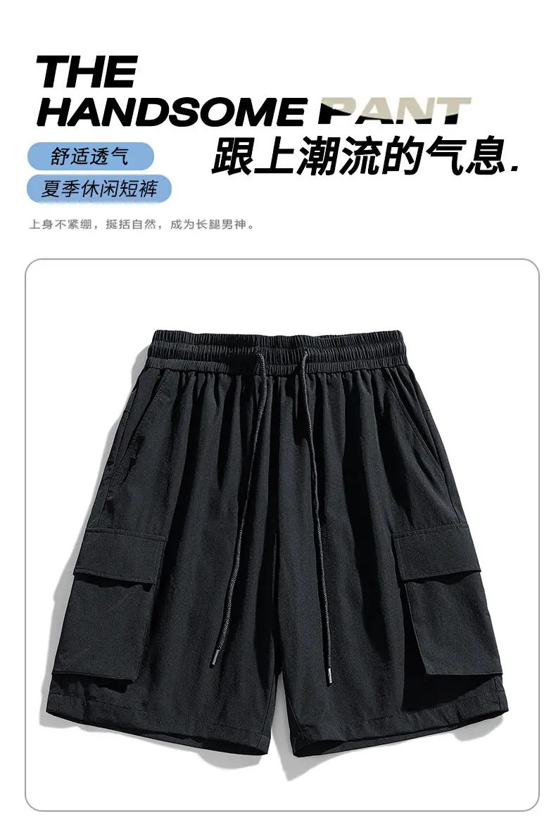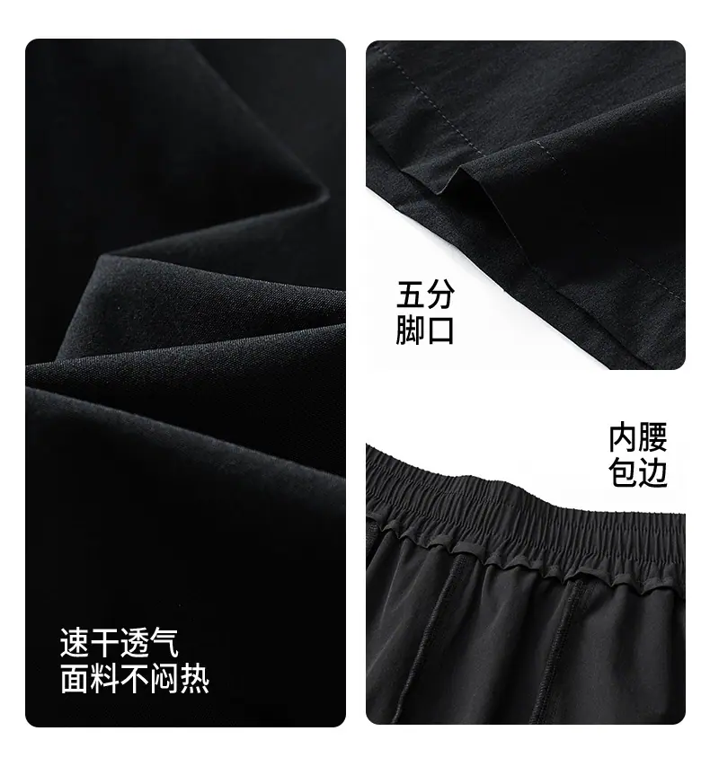 Venta Directa de Fábrica Pantalones Cortos de Cinco Puntos con Bolsillo Invisible con Cremallera para Hombres Jóvenes y de Mediana Edad, Pantalones Cortos Deportivos Elásticos de Seda de Hielo con Cintura Dividida