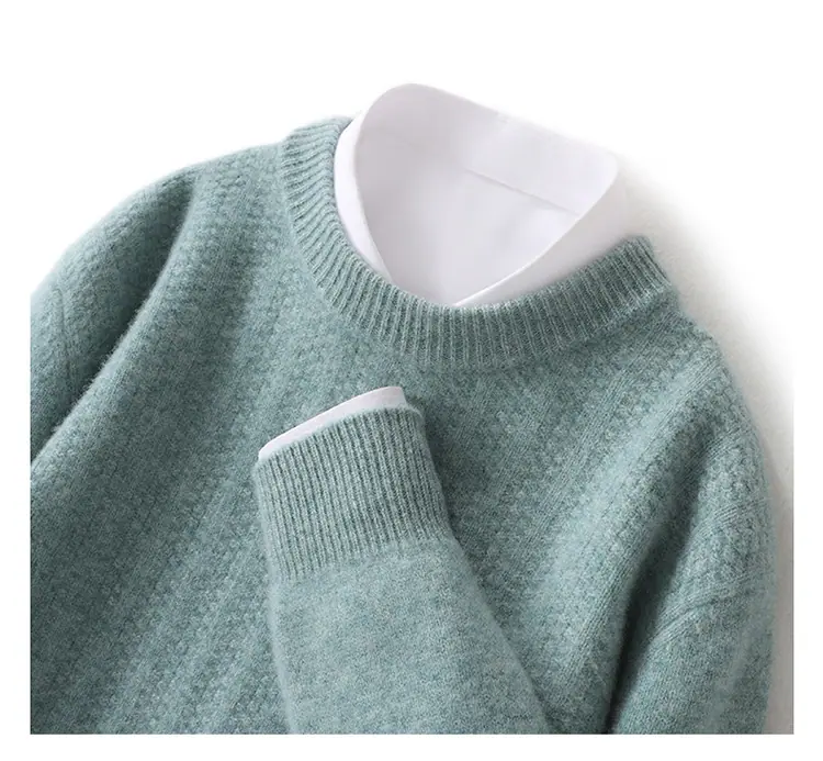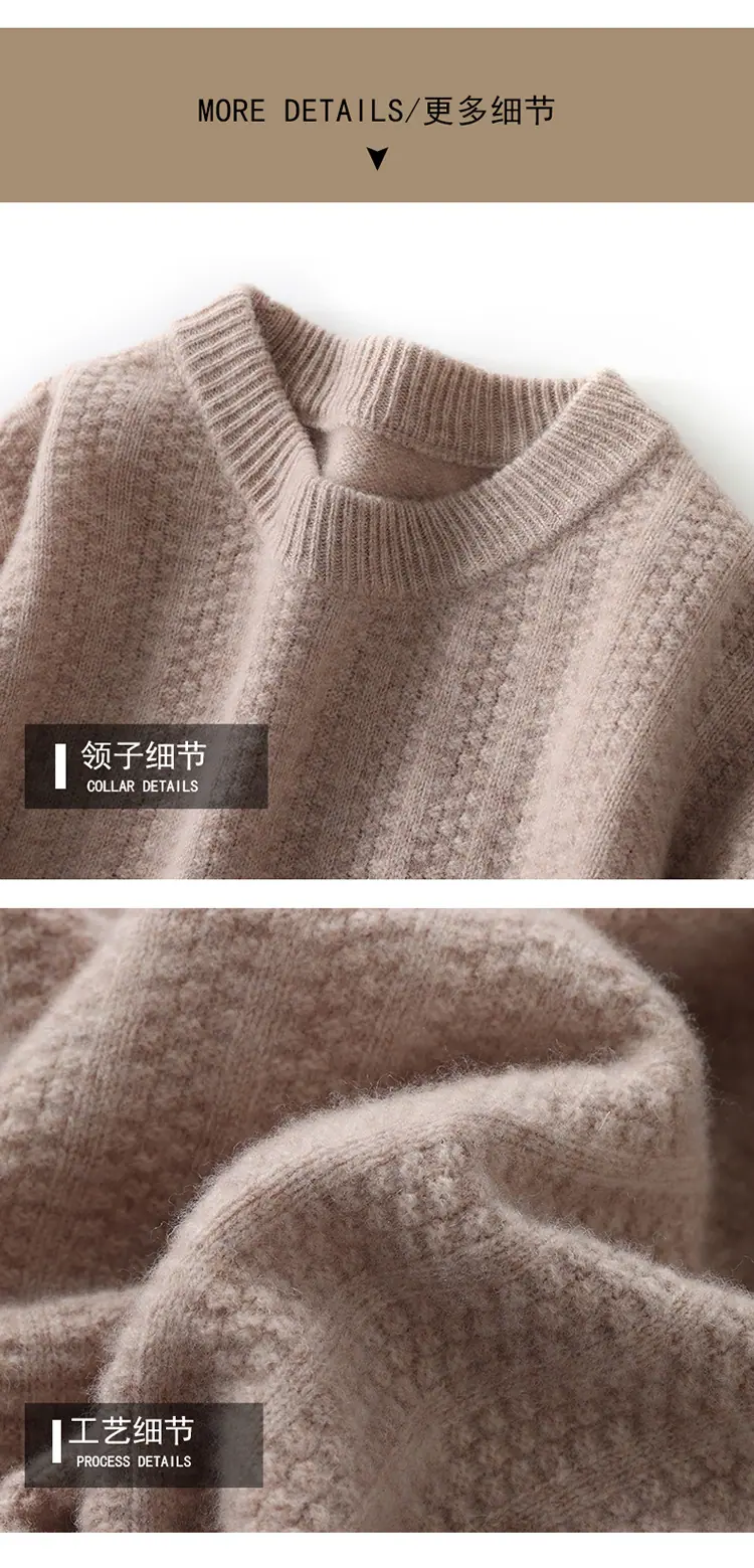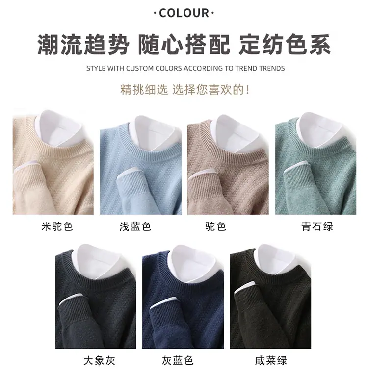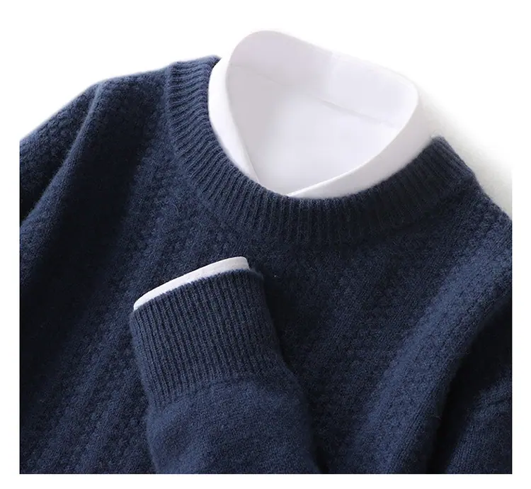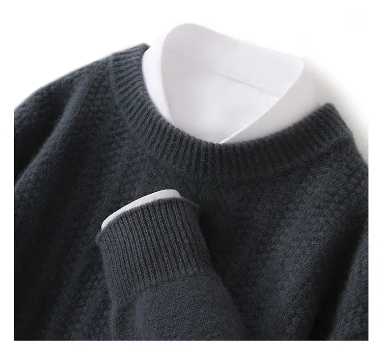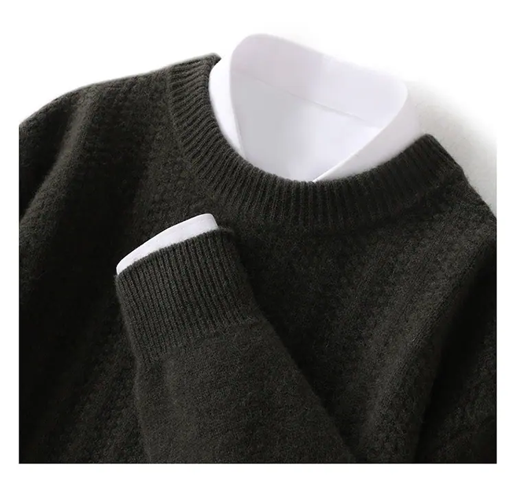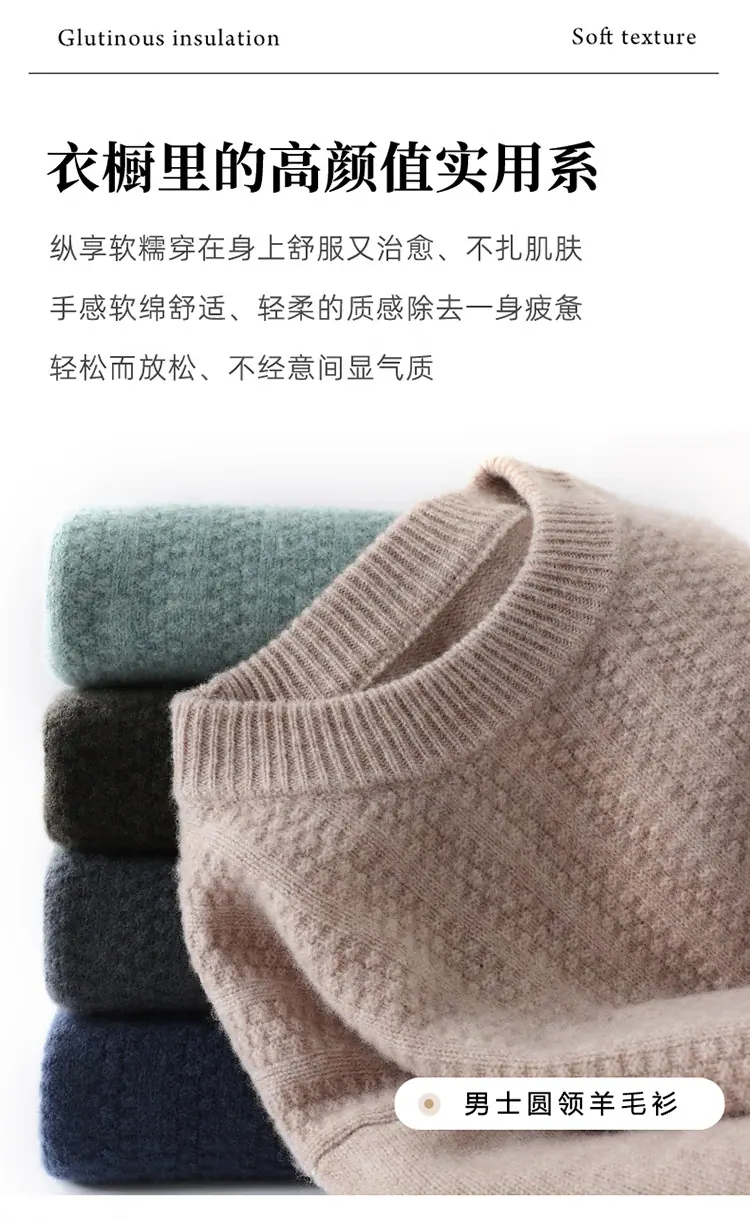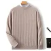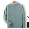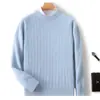 Otoño e Invierno 2024 Nuevo Suéter de Hombre de Cuello Redondo Semicalto de Lana Pura Casual de Negocios Color Sólido Suéter de Lana Cálido
