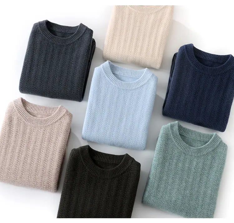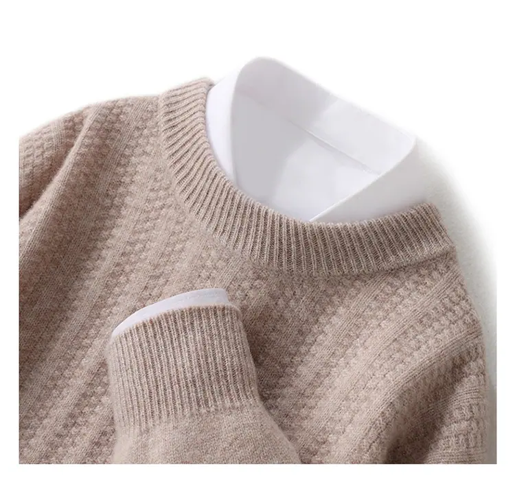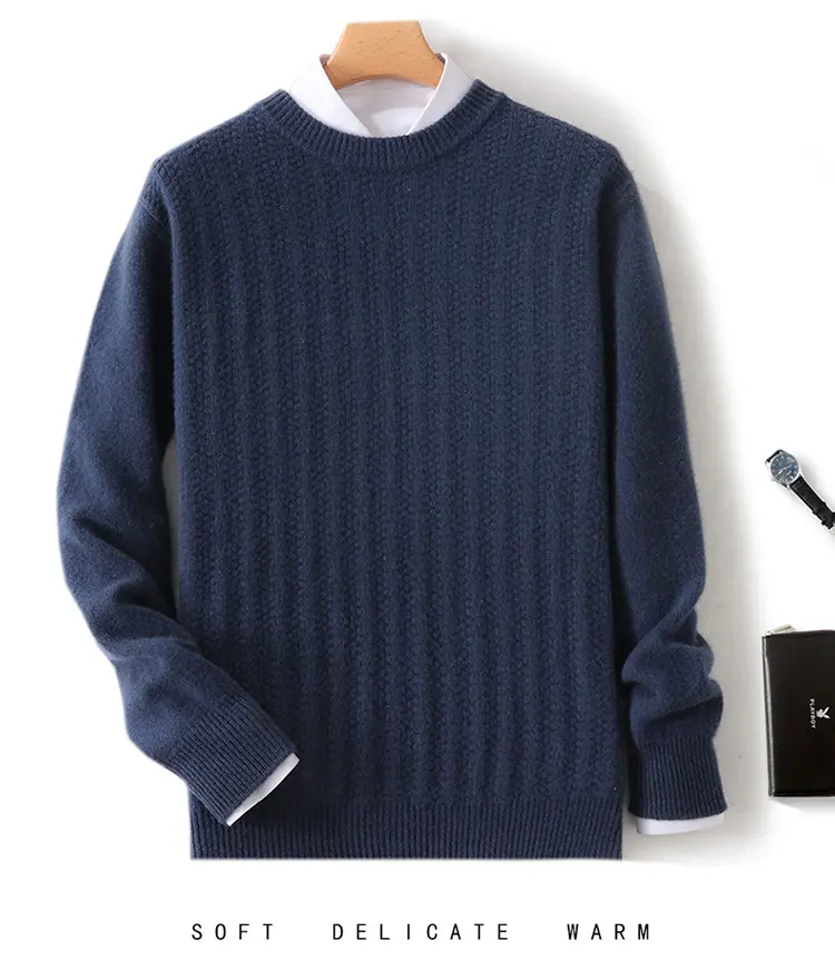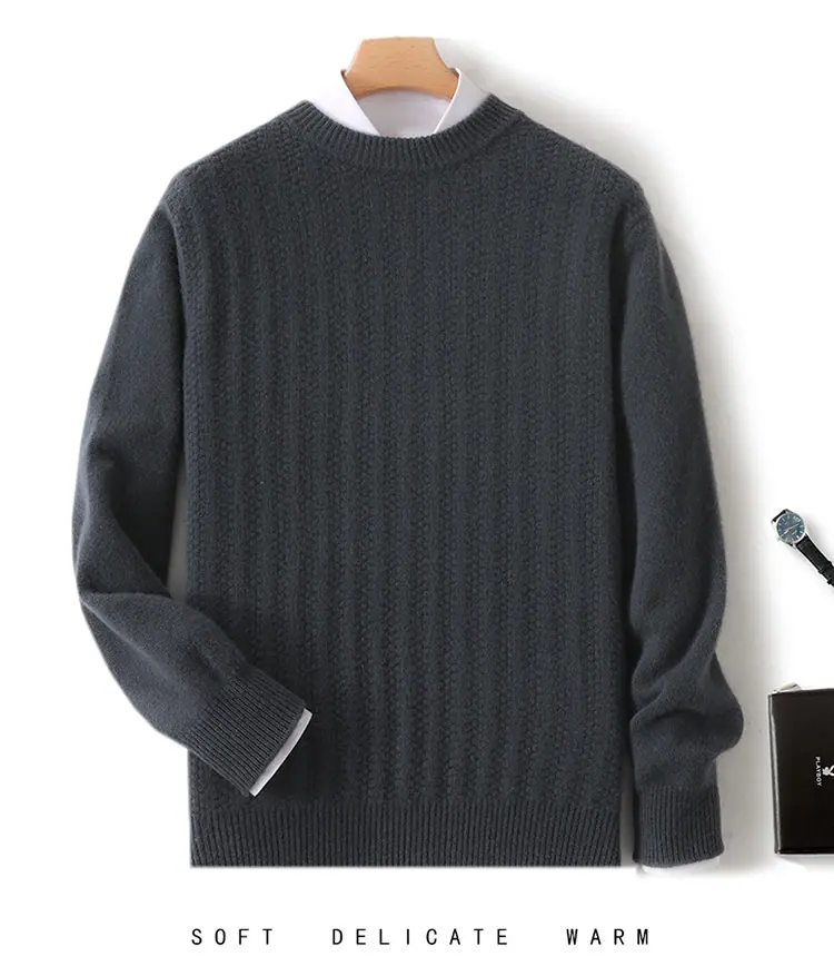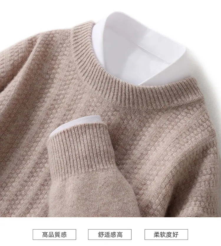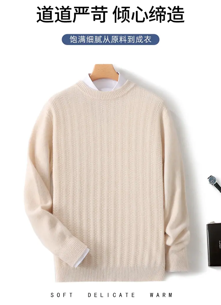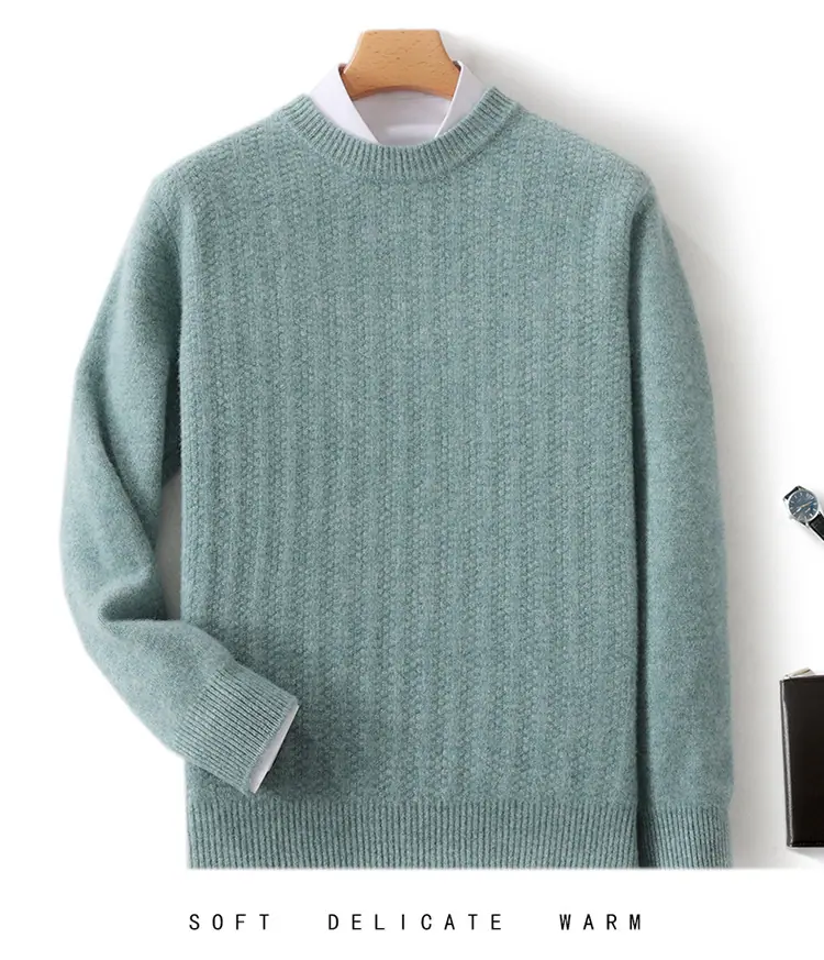 Otoño e Invierno 2024 Nuevo Suéter de Hombre de Cuello Redondo Semicalto de Lana Pura Casual de Negocios Color Sólido Suéter de Lana Cálido