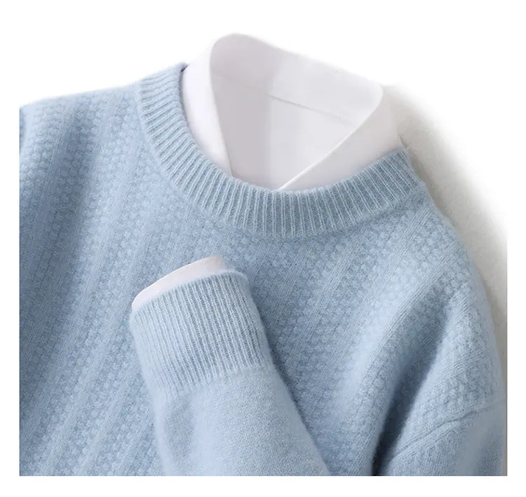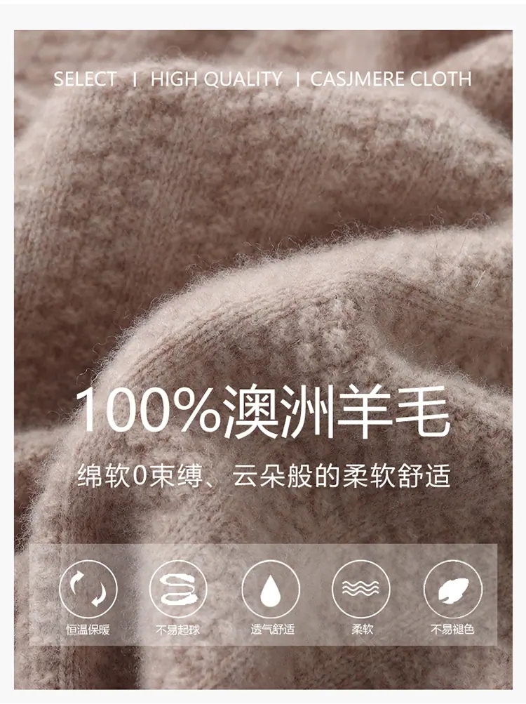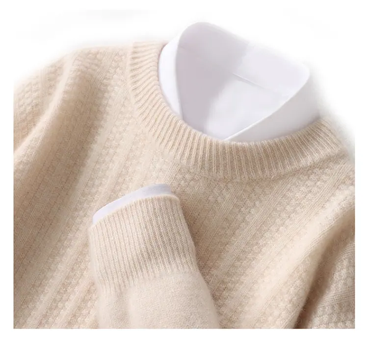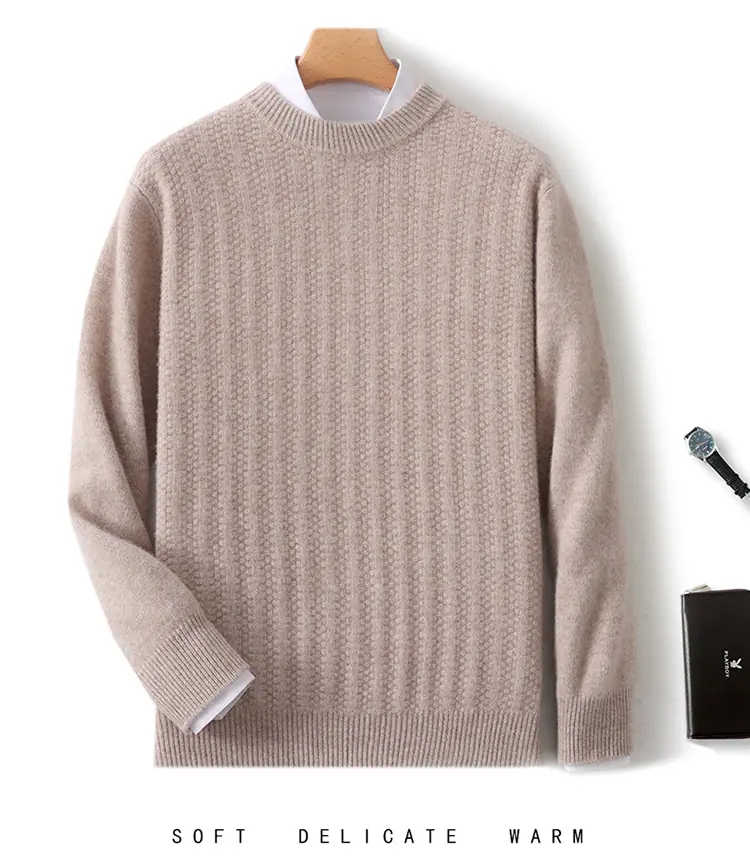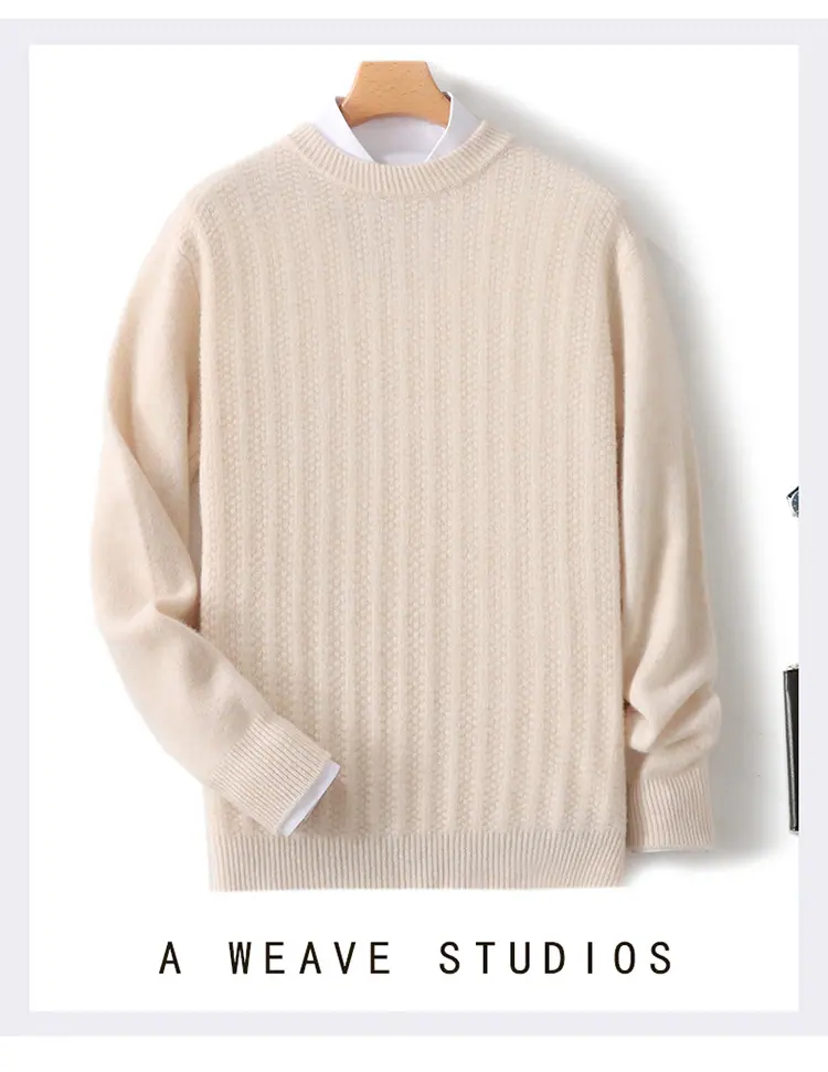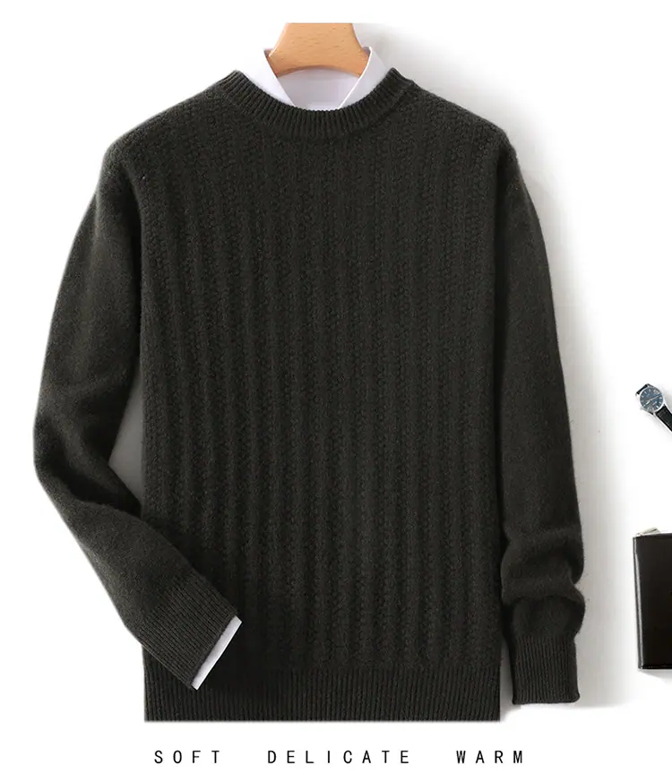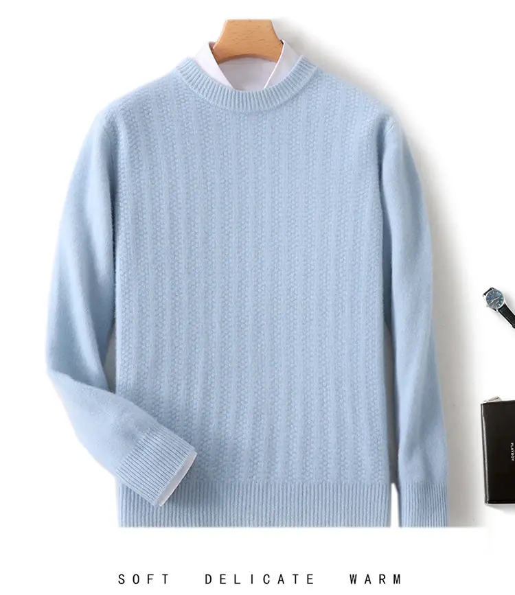 Otoño e Invierno 2024 Nuevo Suéter de Hombre de Cuello Redondo Semicalto de Lana Pura Casual de Negocios Color Sólido Suéter de Lana Cálido