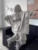 Nueva Sudadera Holgada con Capucha Americana Retro Patchwork Lavada Desgastada Cárdigan para Pareja Chaqueta con Cremallera para Primavera y Otoño