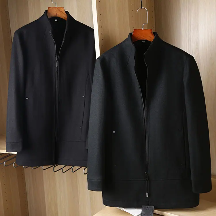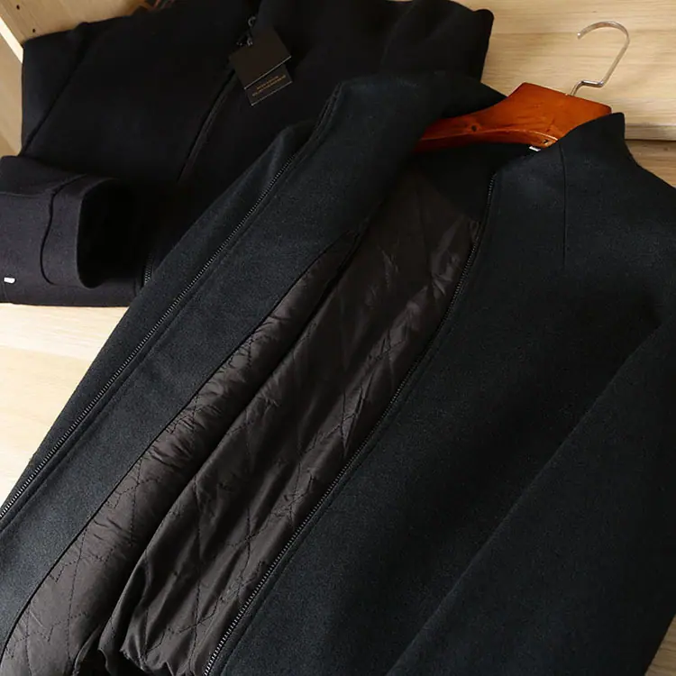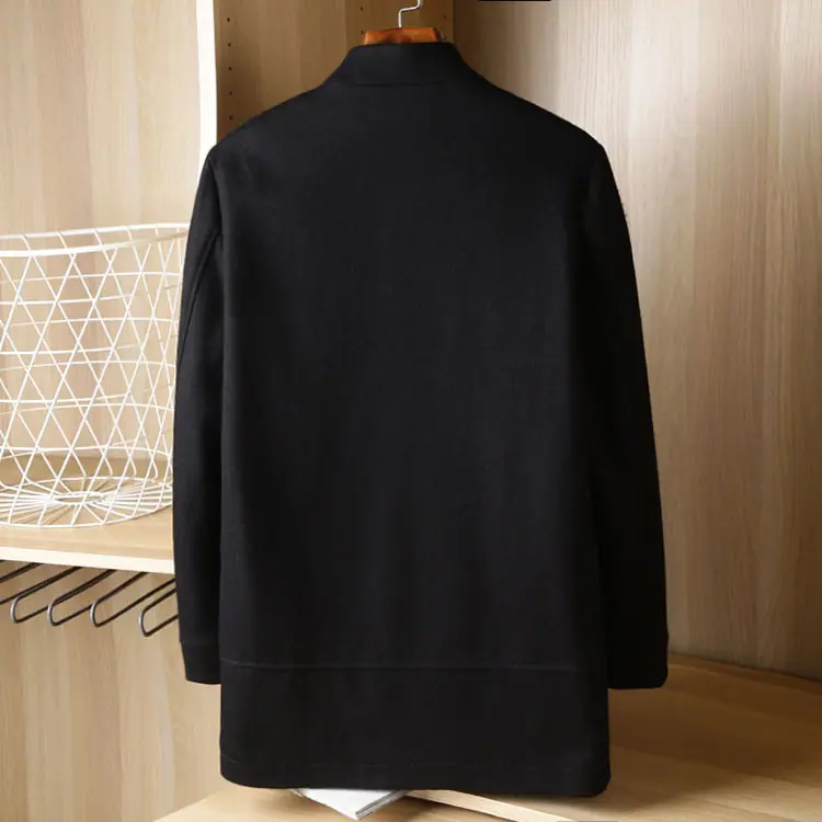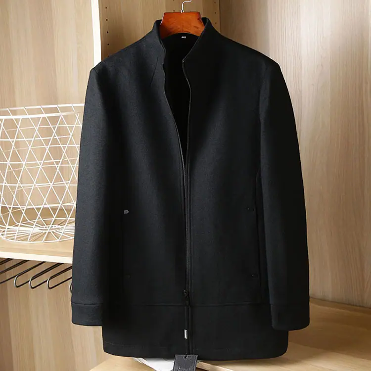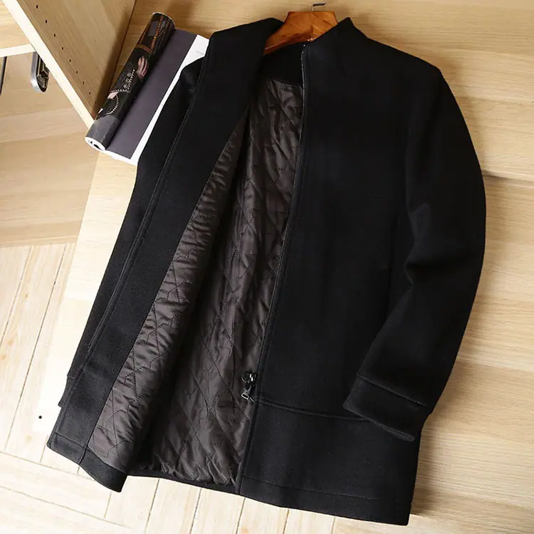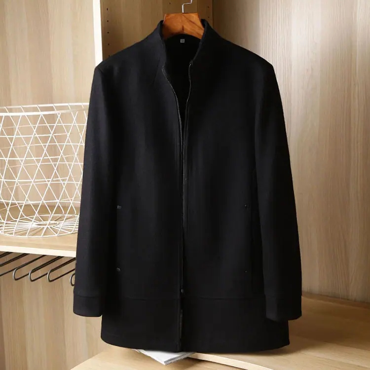 Abrigo de lana para hombre otoño e invierno largo medio cuello alto corte ajustado versátil acolchado casual sobretodo para hombre 88319
