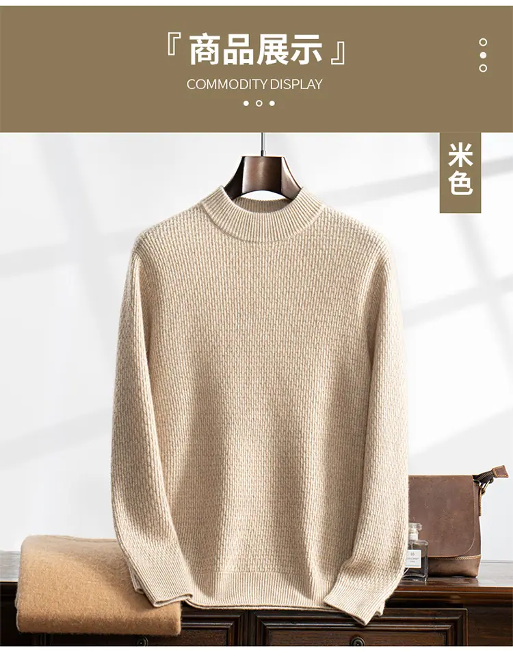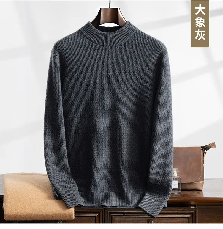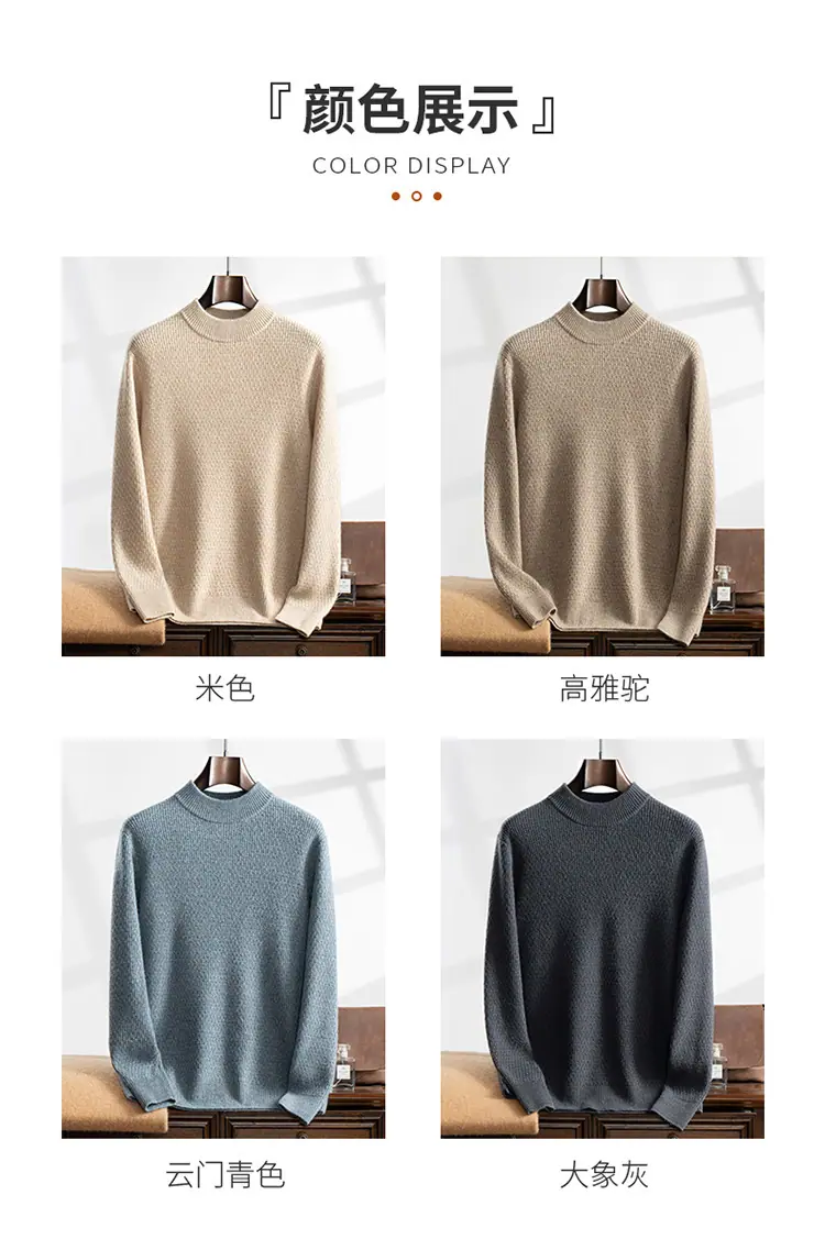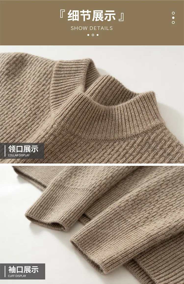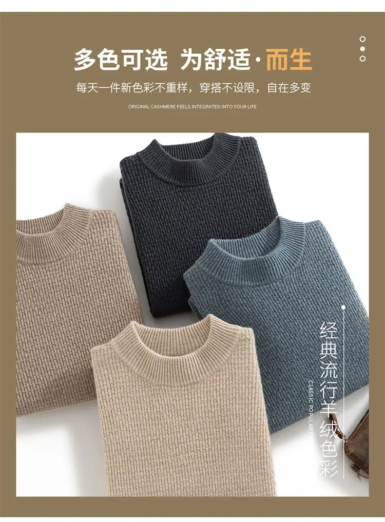 Suéter de Cachemira Grueso para Hombre de Cuello Alto Medio Casual Talla Grande Color Puro Tejido Suéter de Cachemira para Hombre Camiseta Holgada de Fondo