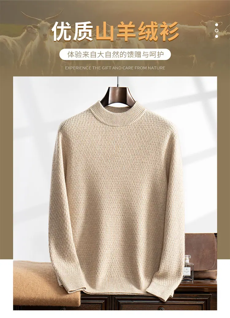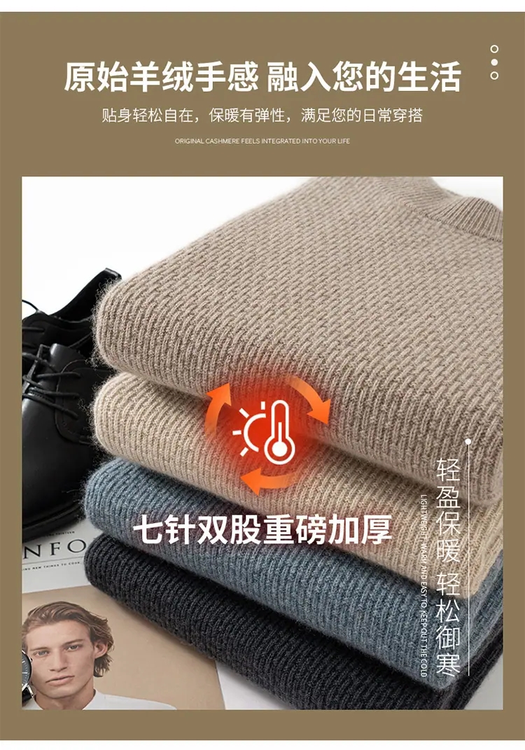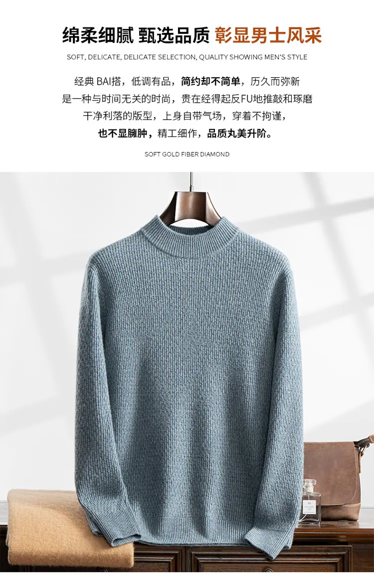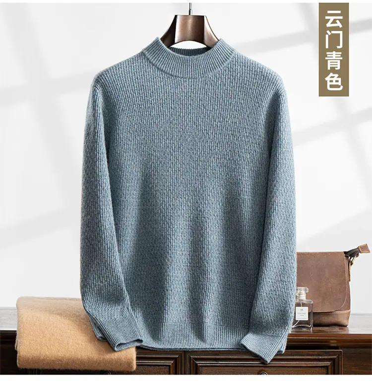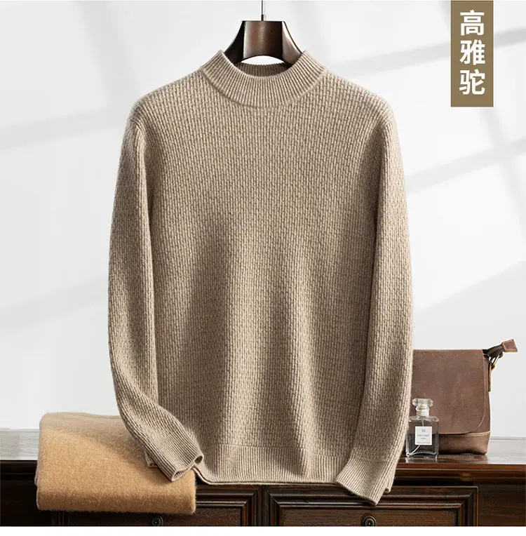 Suéter de Cachemira Grueso para Hombre de Cuello Alto Medio Casual Talla Grande Color Puro Tejido Suéter de Cachemira para Hombre Camiseta Holgada de Fondo