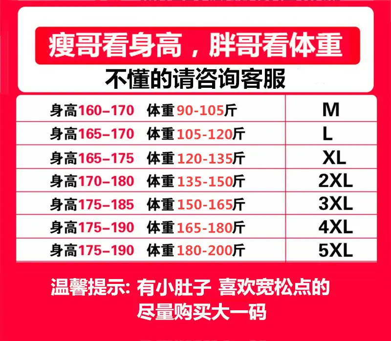 M, L, XL, 2XL, 3XL, 4XL, 5XL