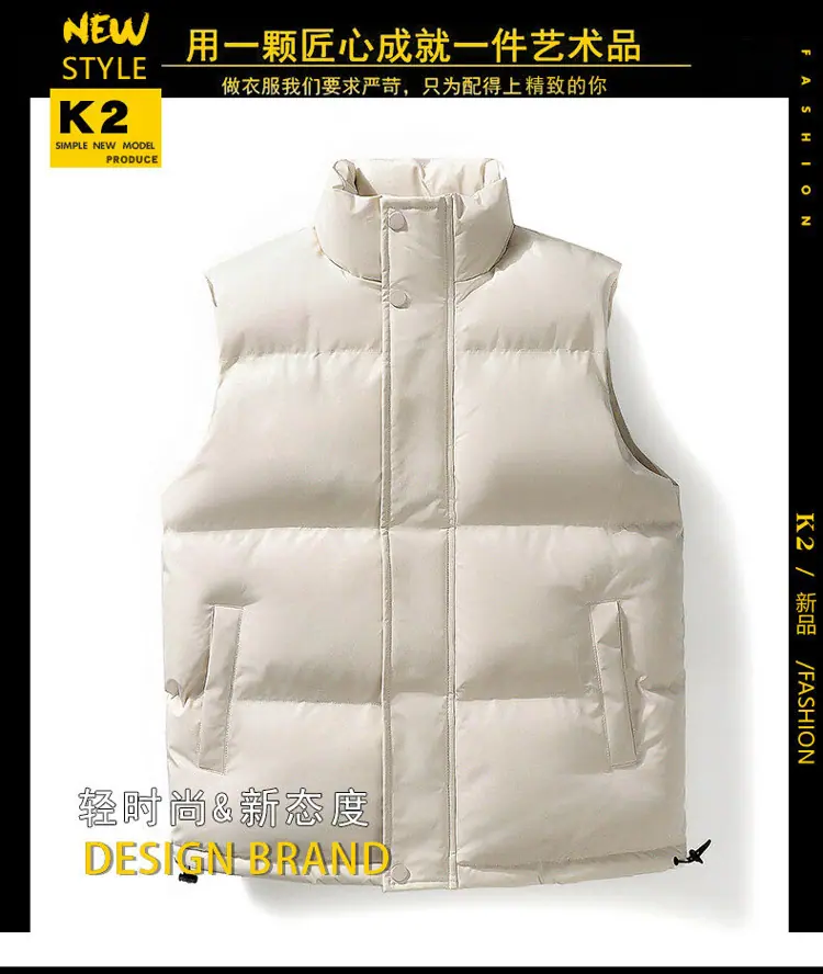 Chaleco Casual de Algodón para Hombre Otoño e Invierno Juvenil Transfronterizo Grueso Cálido Sin Mangas Acolchado Chaqueta Top