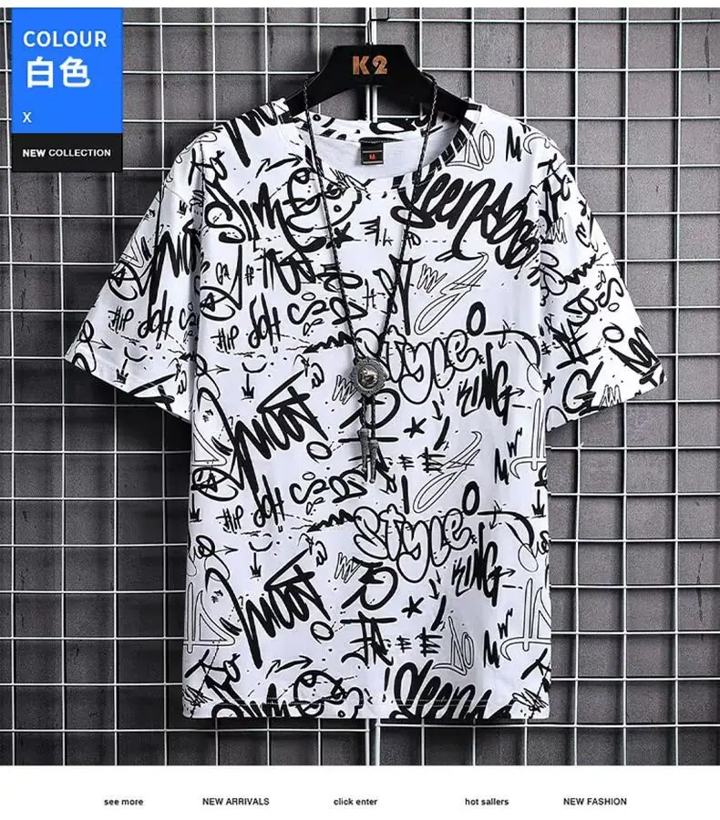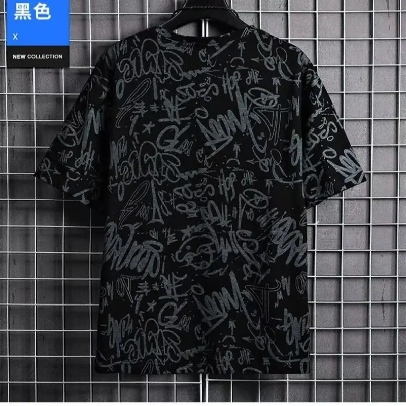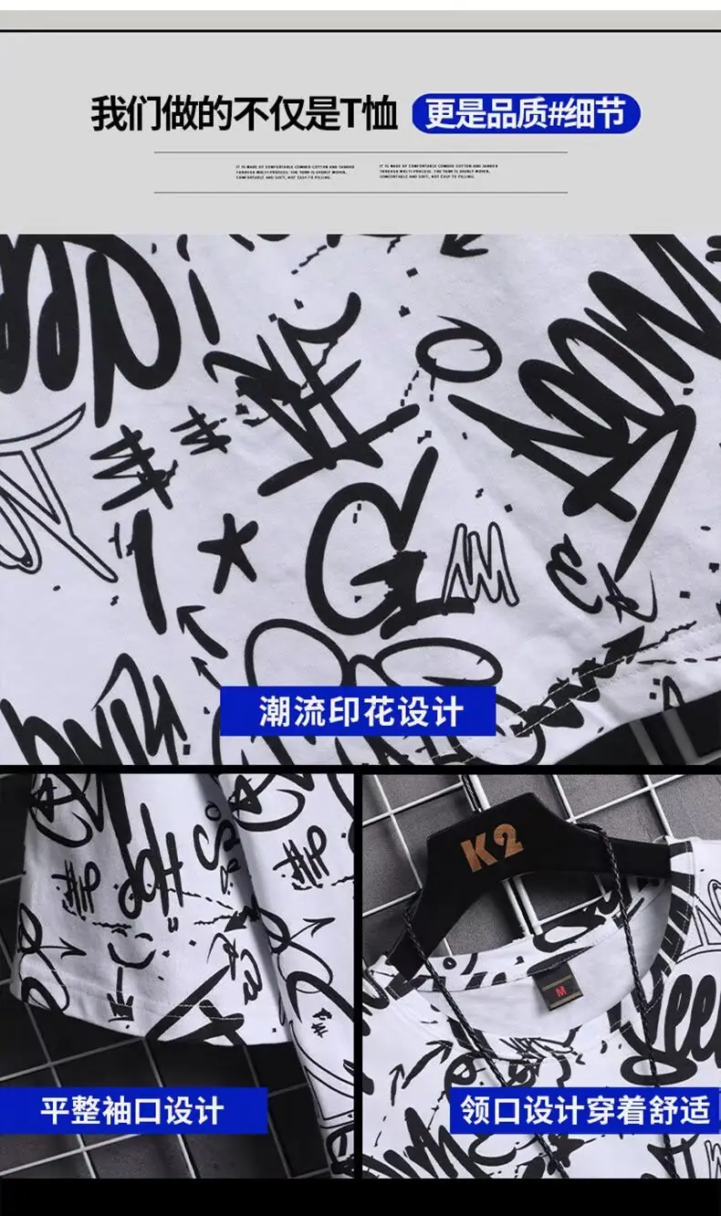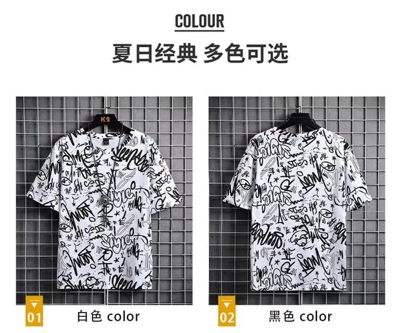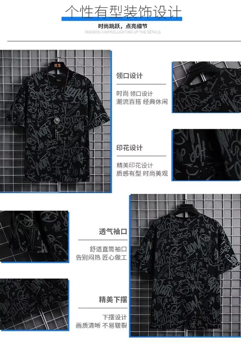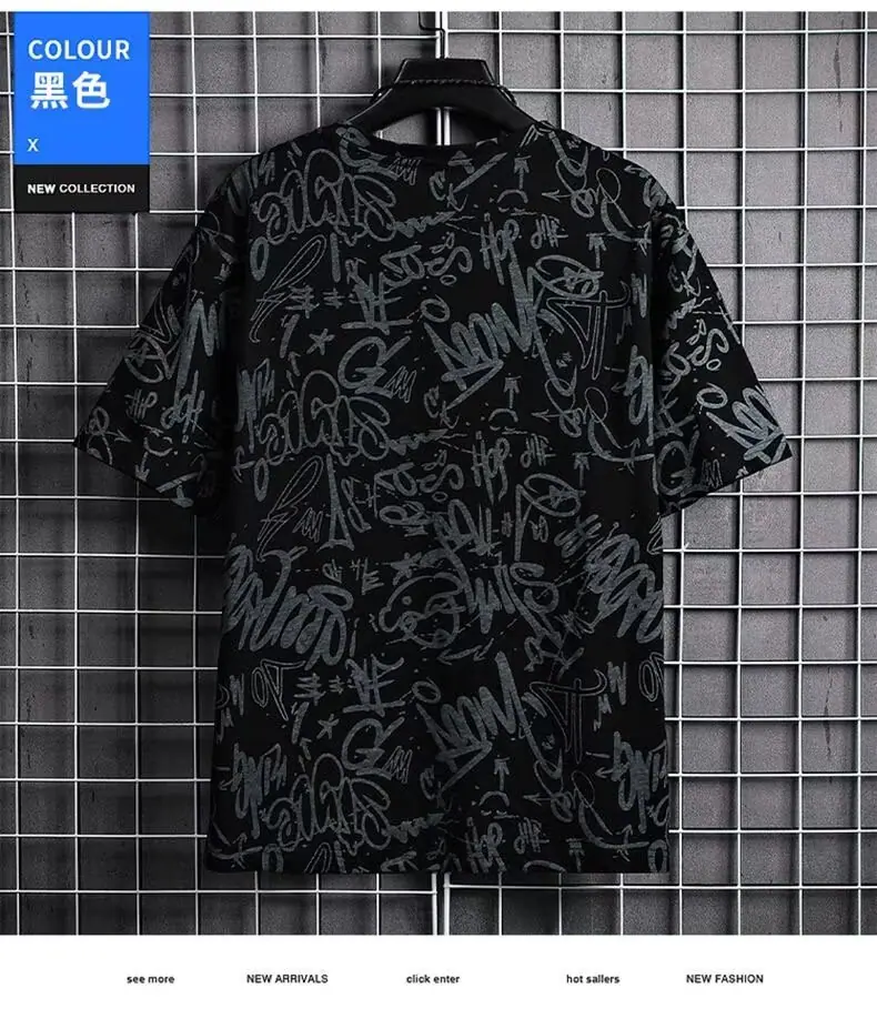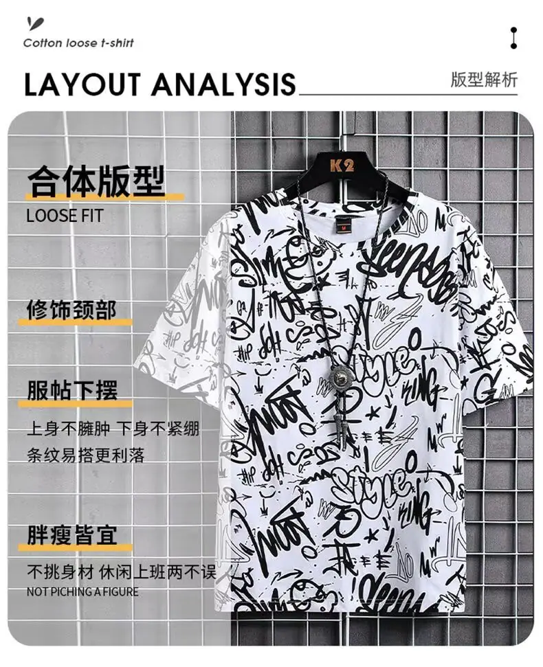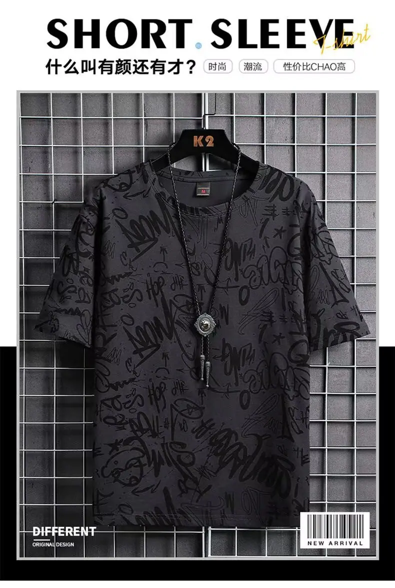 Playera de Verano de Manga Corta para Hombre Estilo Americano Urbano Estampada de Manga Corta Marca de Moda Holgada Juvenil Cuello Redondo Top para Hombre