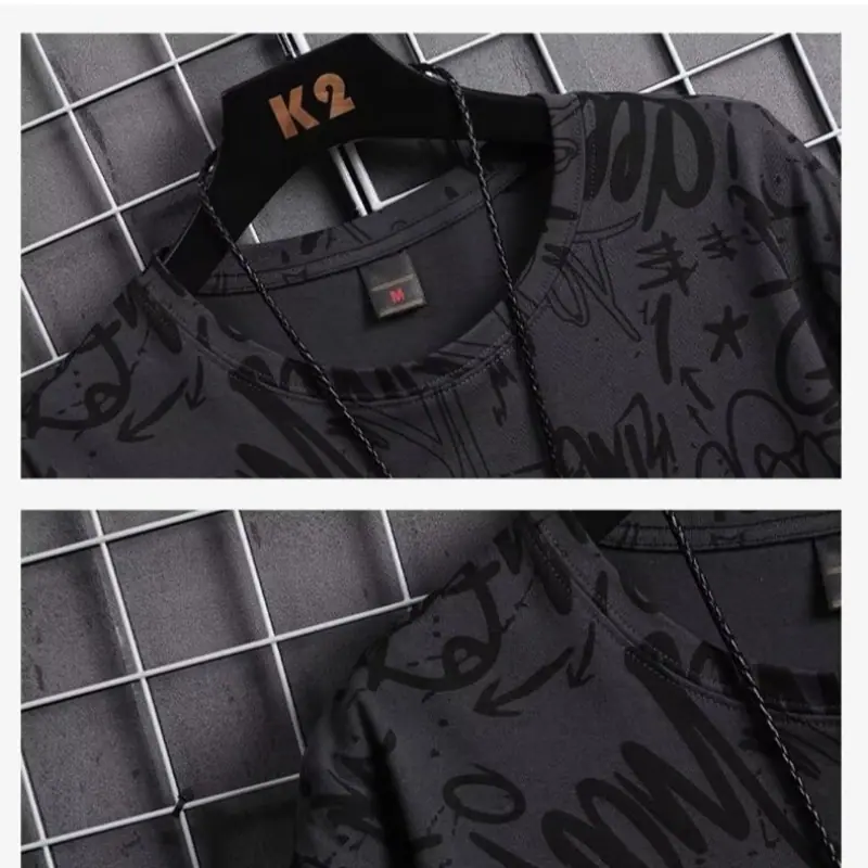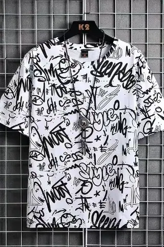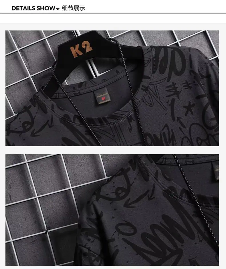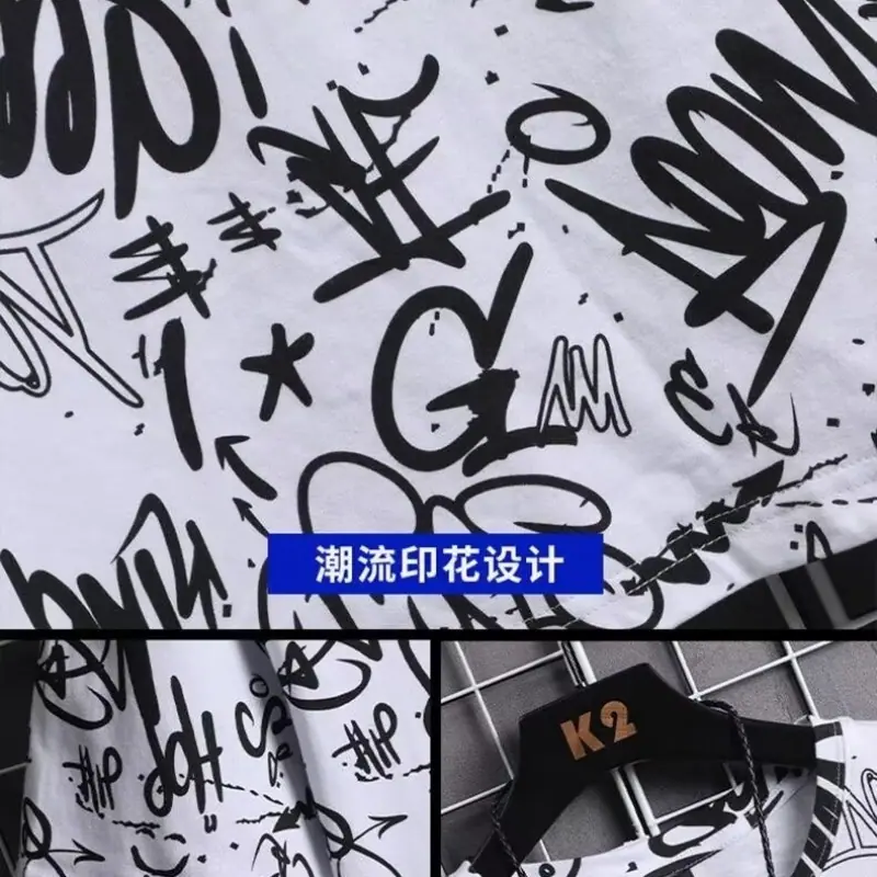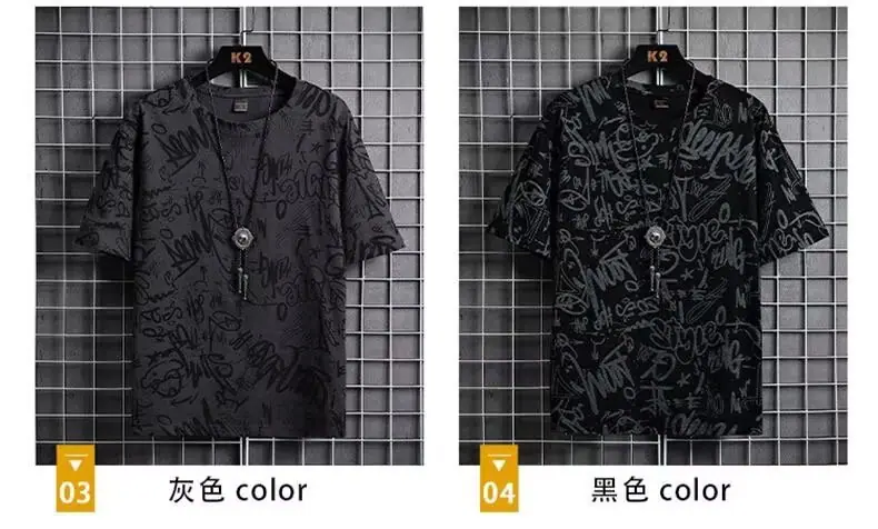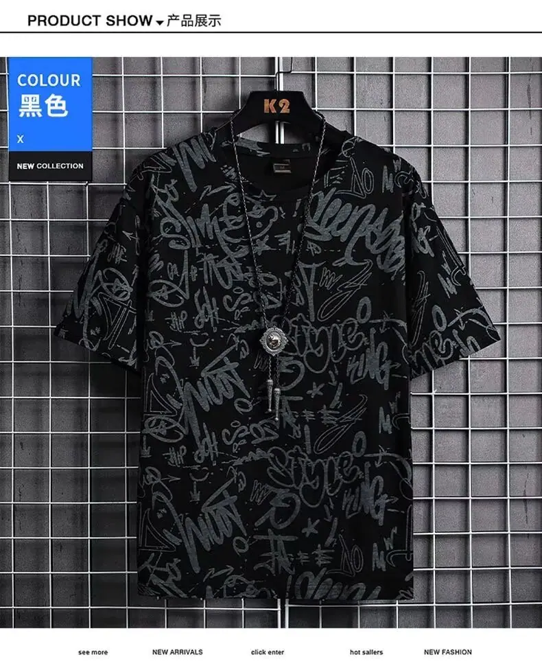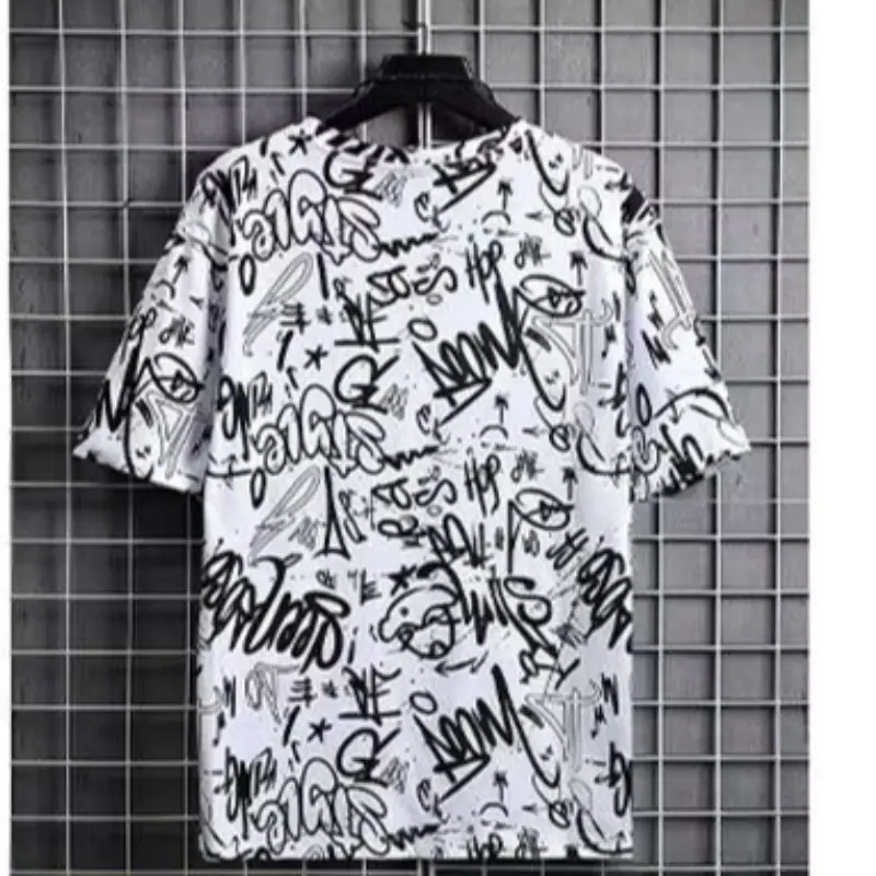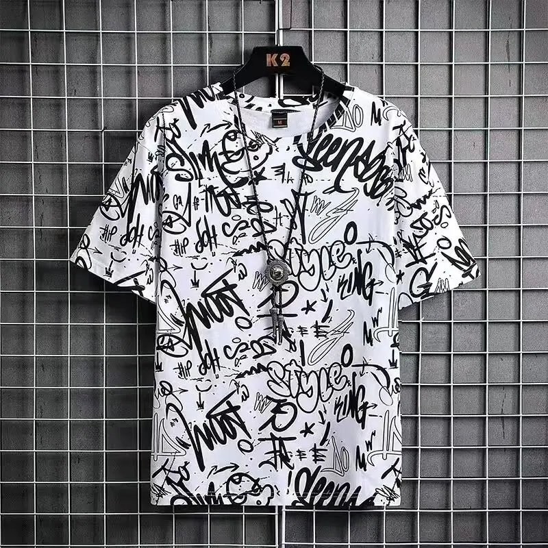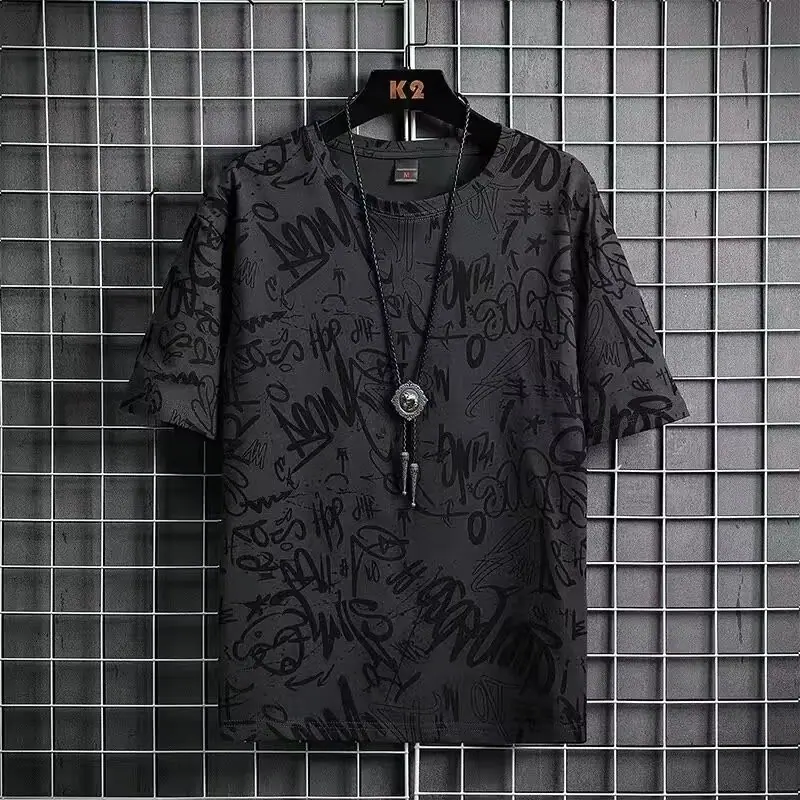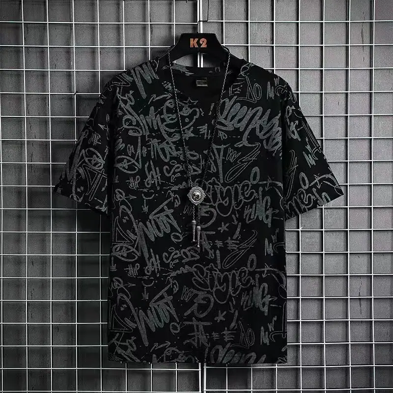 Playera de Verano de Manga Corta para Hombre Estilo Americano Urbano Estampada de Manga Corta Marca de Moda Holgada Juvenil Cuello Redondo Top para Hombre
