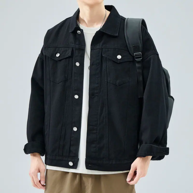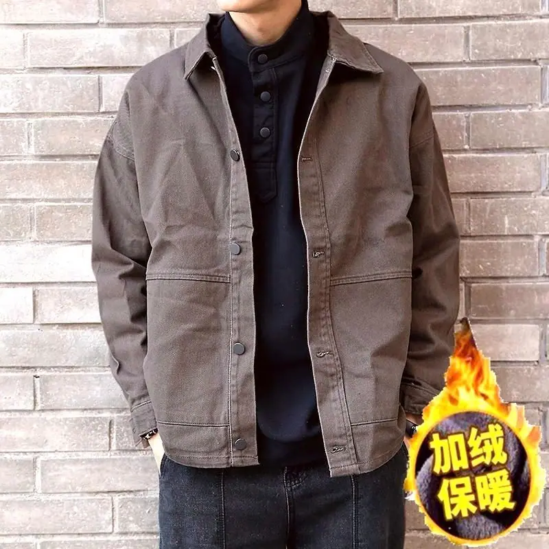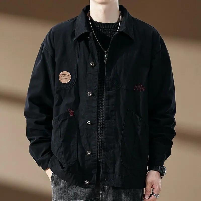 Compra Chaqueta de trabajo de alta gama para hombre, estilo primavera y otoño, marca de moda, chaqueta suelta americana retro con solapa, ropa vaquera casual y guapa al por mayor en Joom.pro