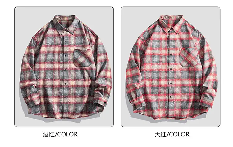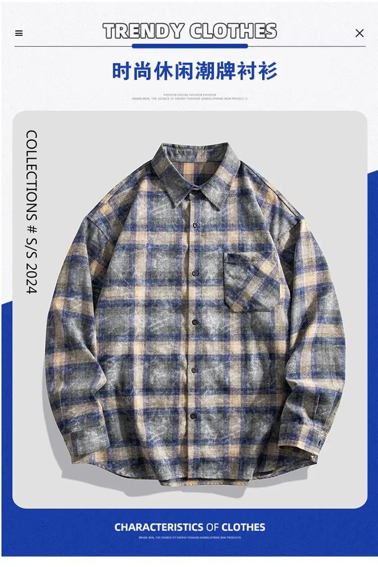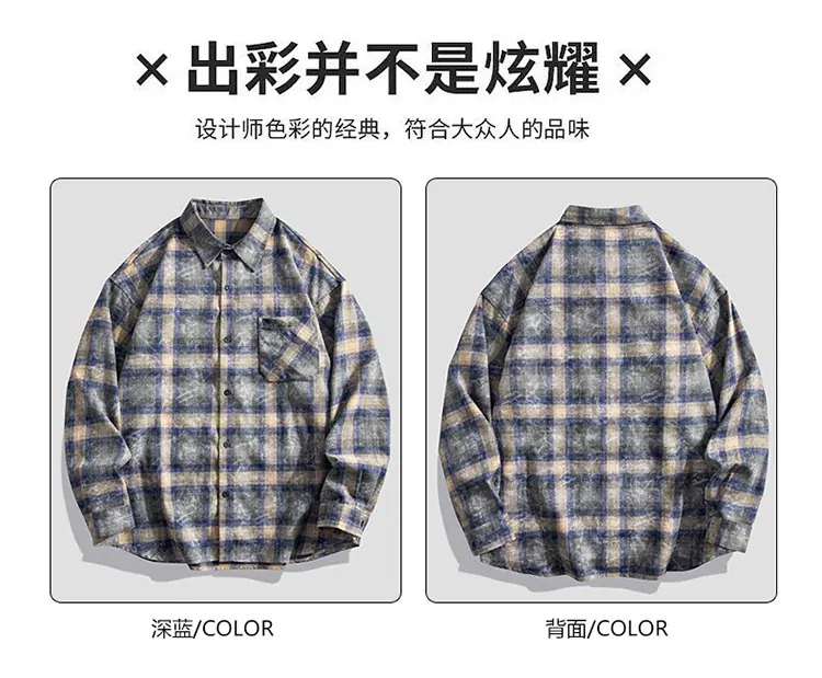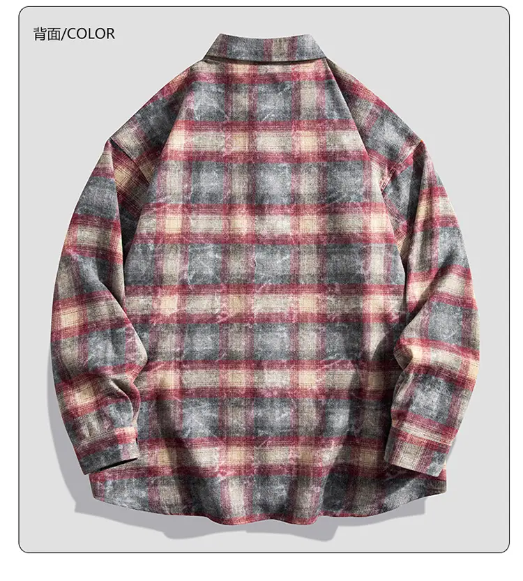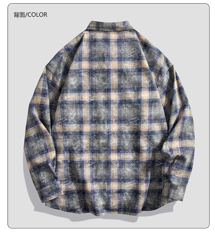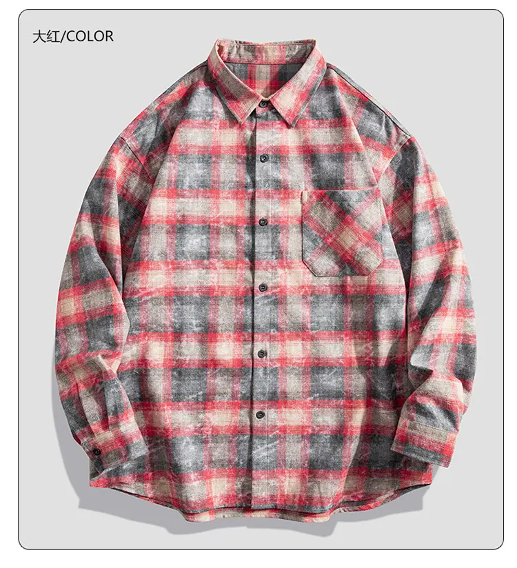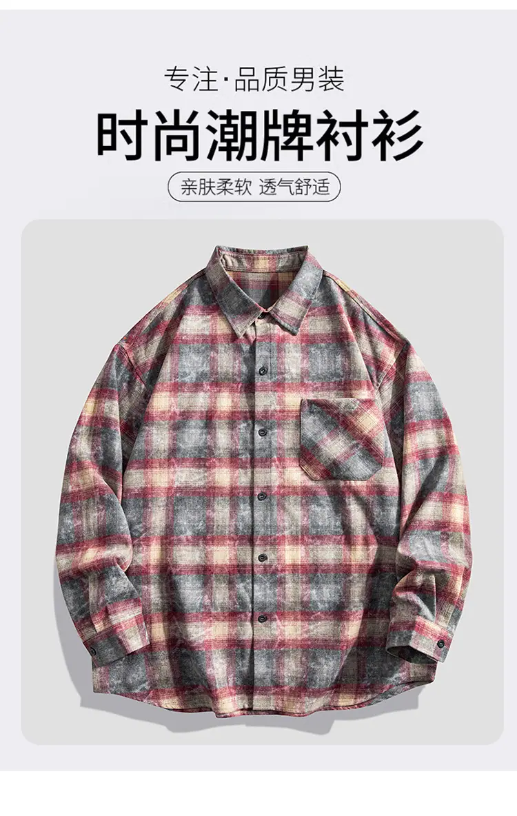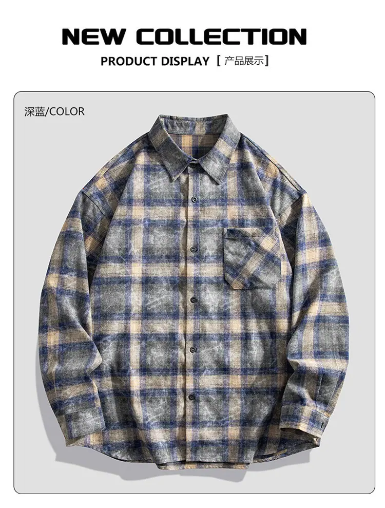 Camisa de hombre de marca de moda estilo americano holgado a cuadros de manga larga nueva de primavera y otoño solapa diaria versátil high street