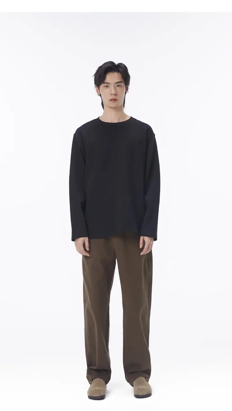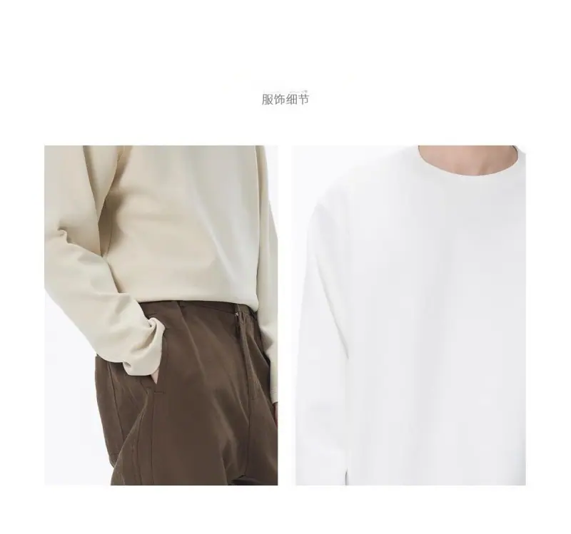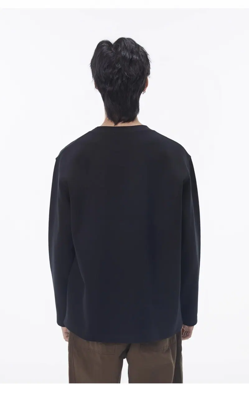 Camiseta de Manga Larga con Cuello Redondo de Algodón Puro para Hombre Otoño/Invierno Capa Interior Básica Color Sólido Holgada Casual Versátil Camiseta Interior
