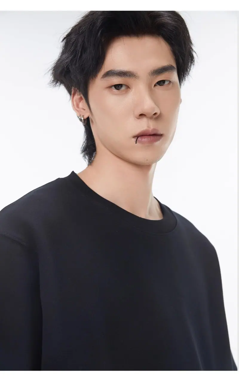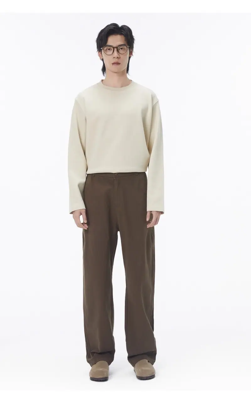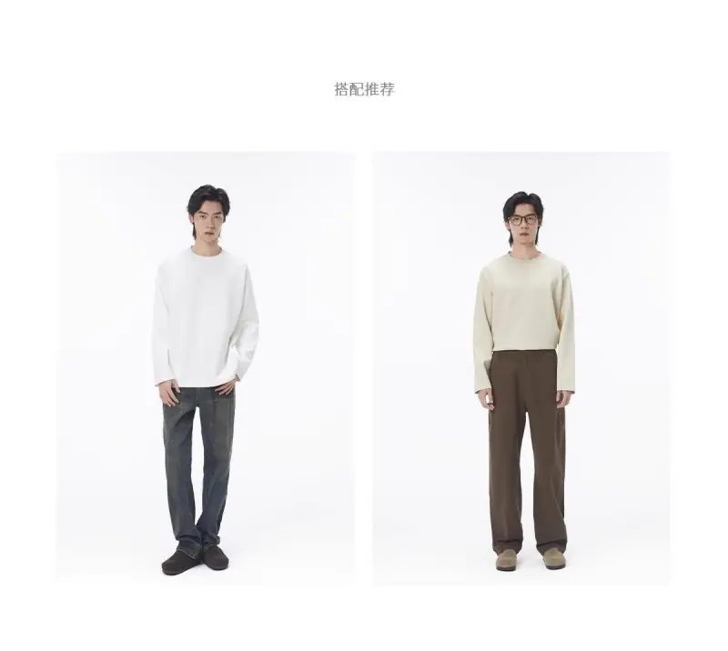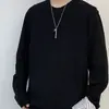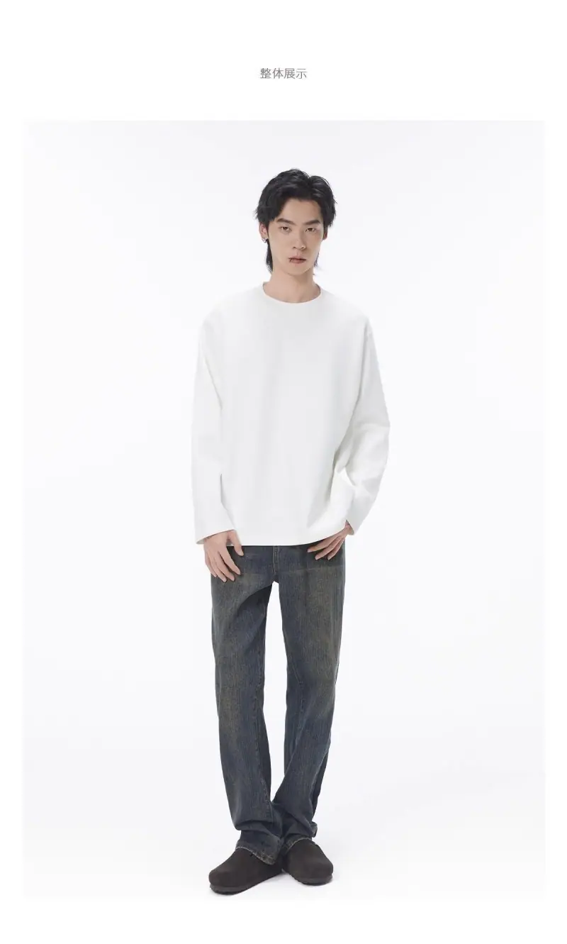 Camiseta de Manga Larga con Cuello Redondo de Algodón Puro para Hombre Otoño/Invierno Capa Interior Básica Color Sólido Holgada Casual Versátil Camiseta Interior