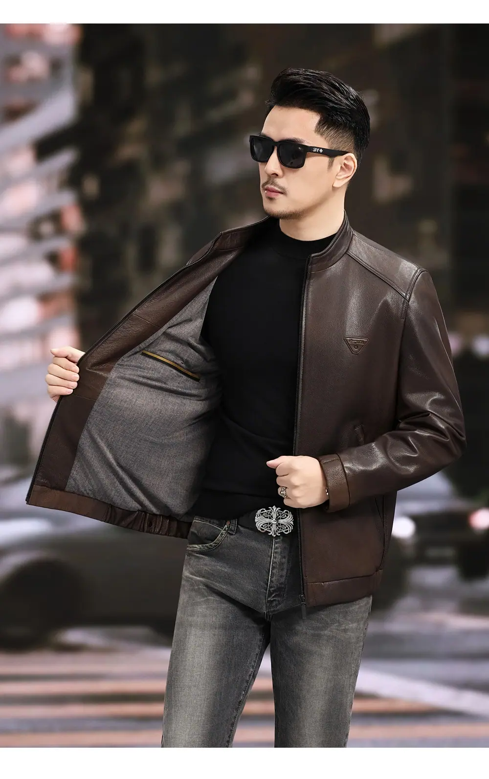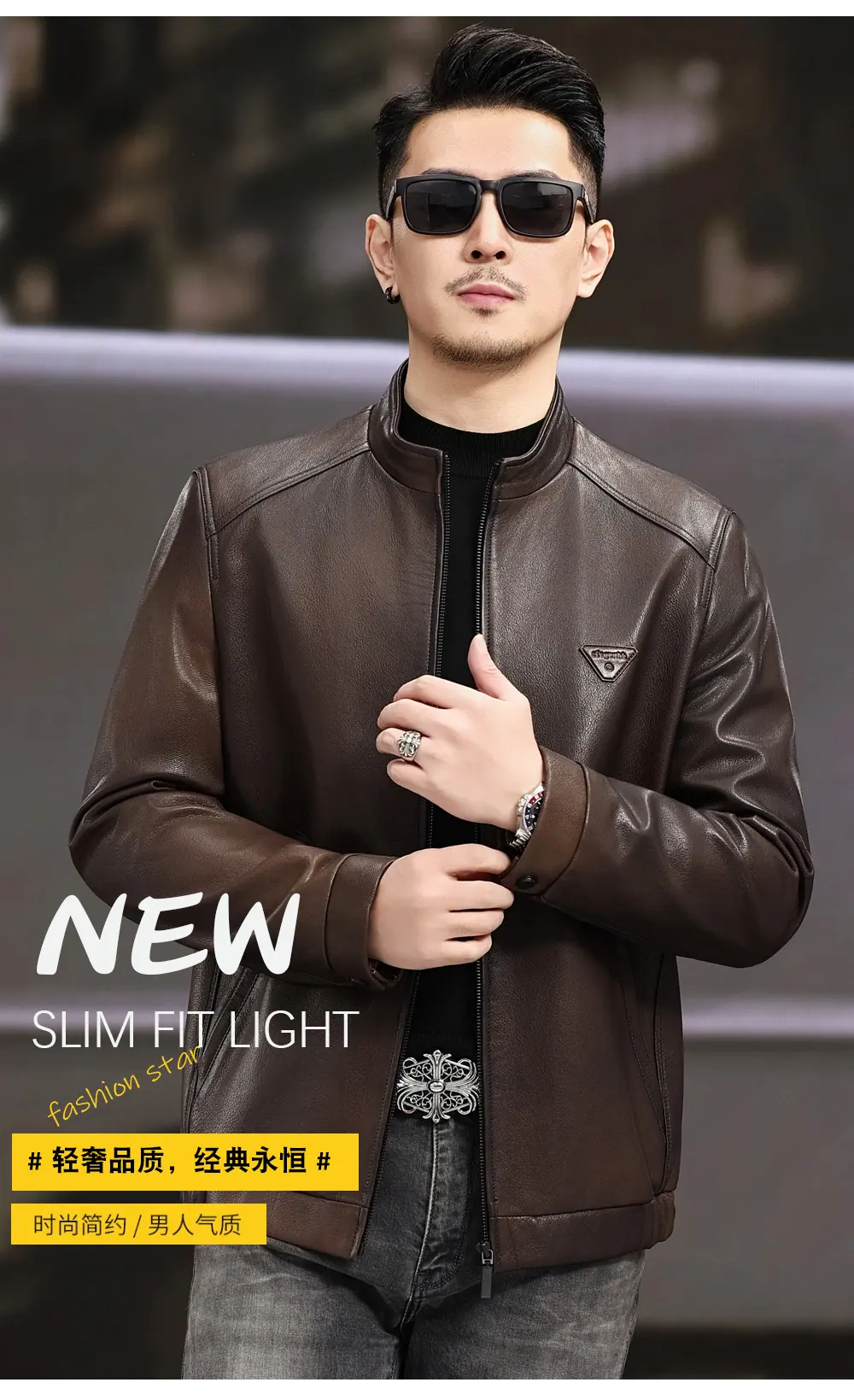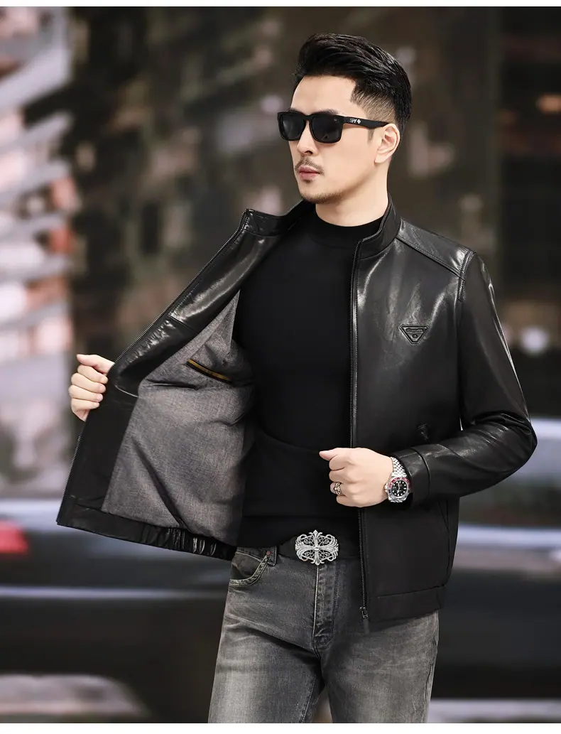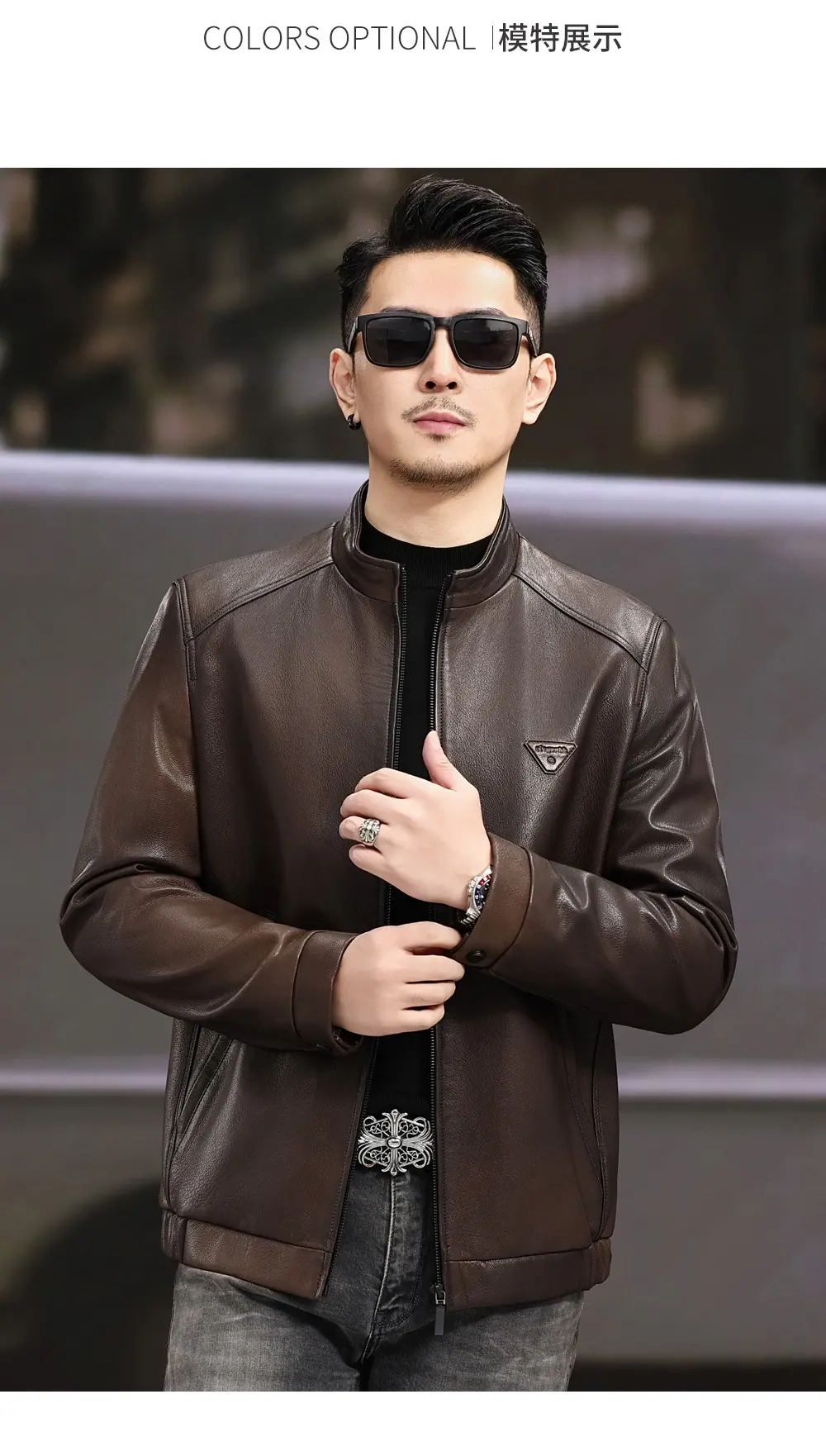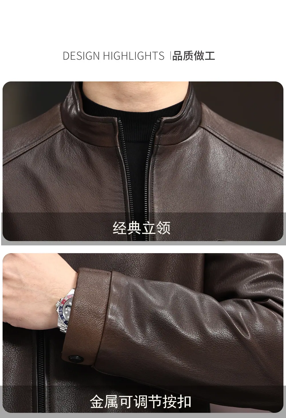 Moda de otoño e invierno chaqueta de cuero genuino para hombre piel de cabra Haining chaqueta de cuero corta con cuello alto nuevo abrigo moderno de estilo coreano