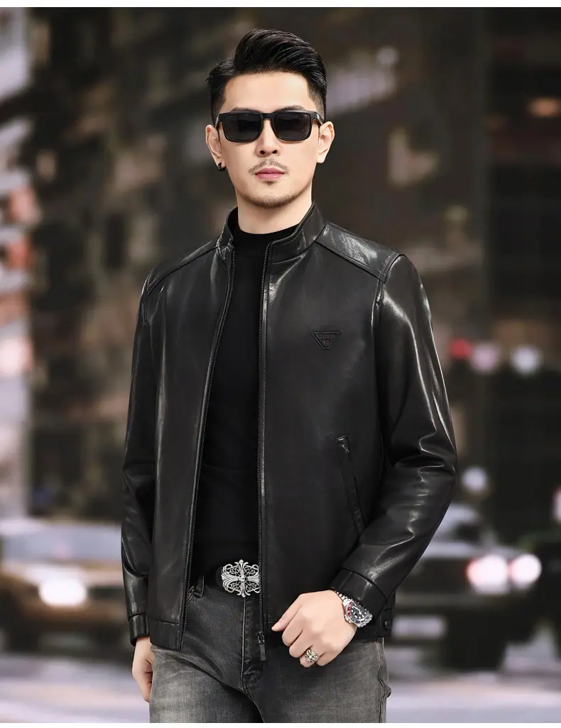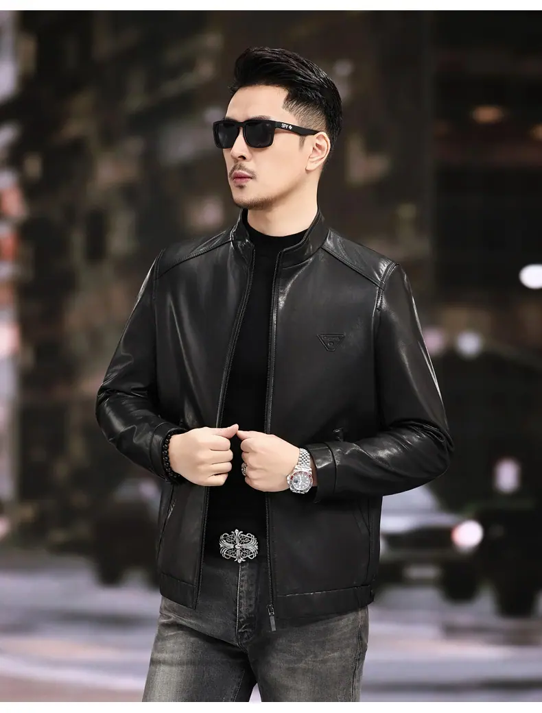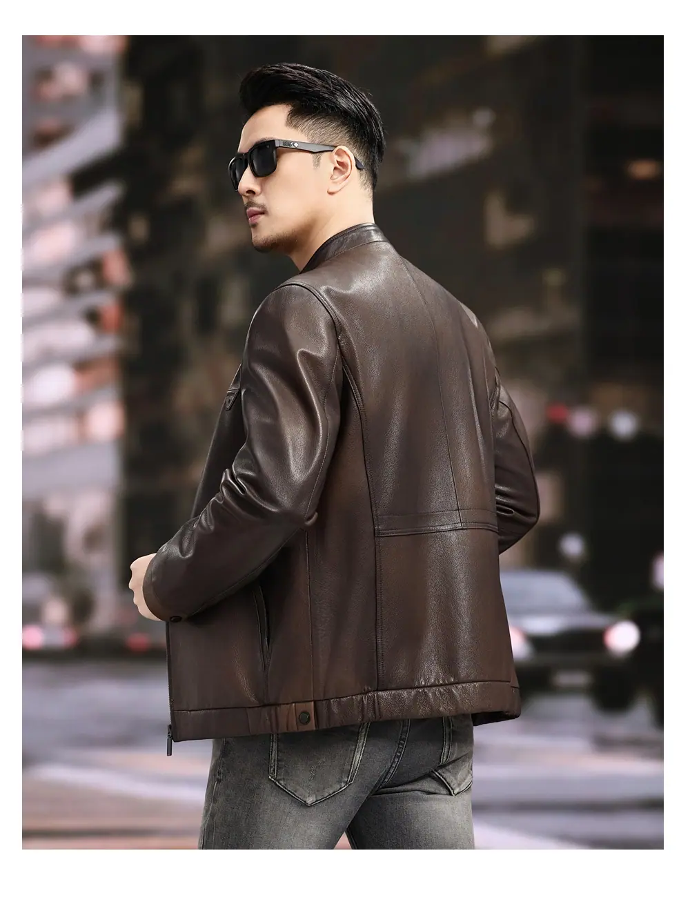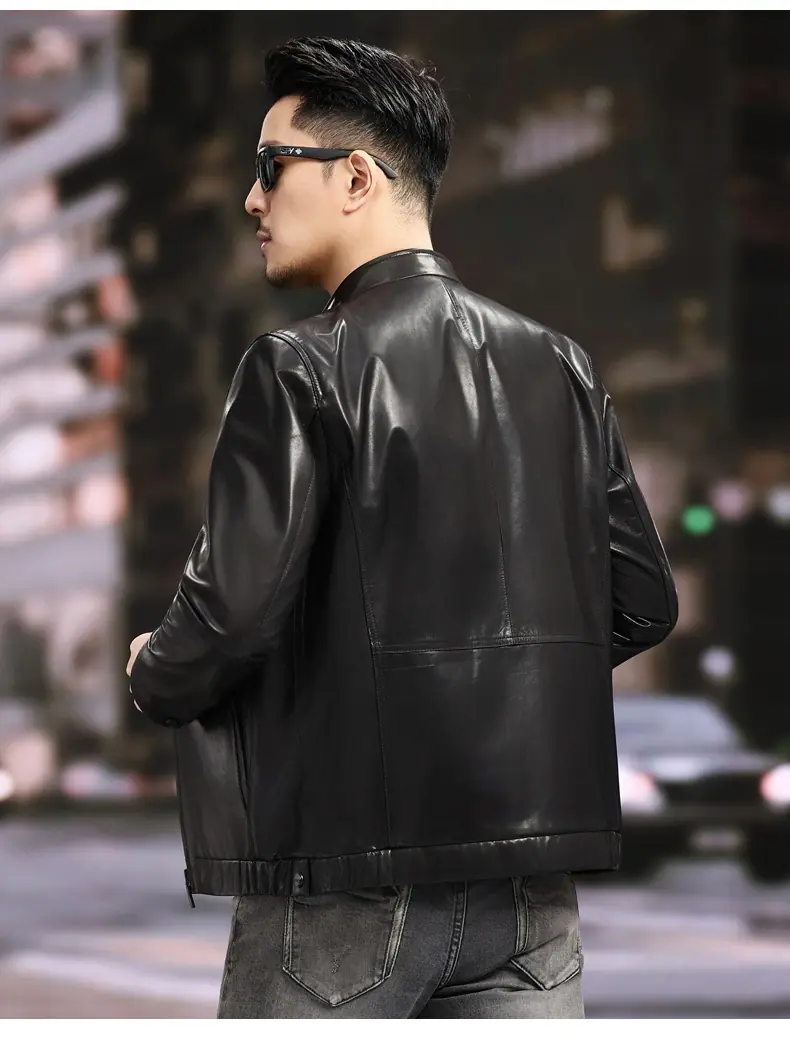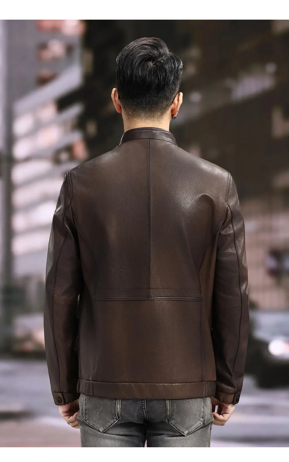 Moda de otoño e invierno chaqueta de cuero genuino para hombre piel de cabra Haining chaqueta de cuero corta con cuello alto nuevo abrigo moderno de estilo coreano