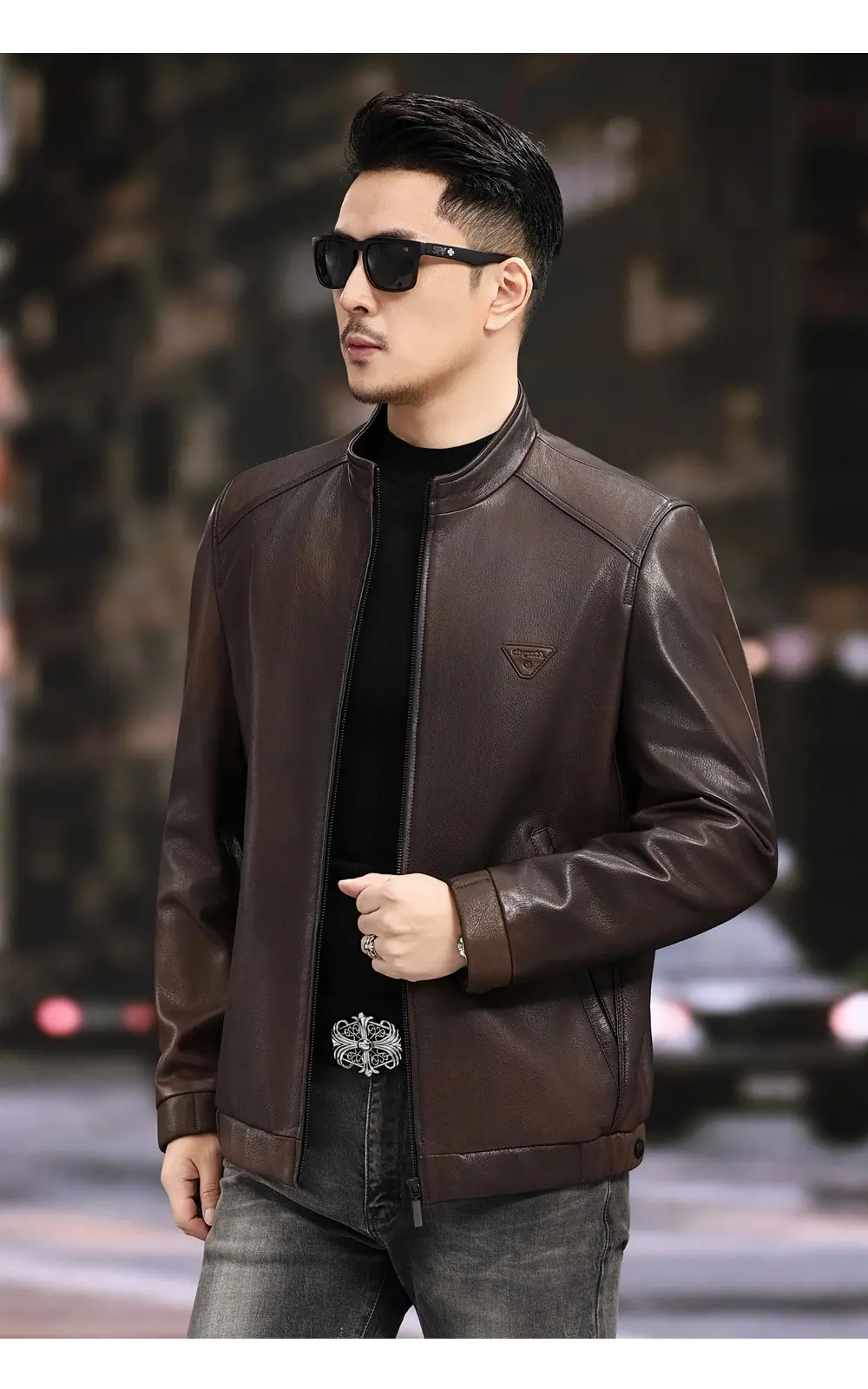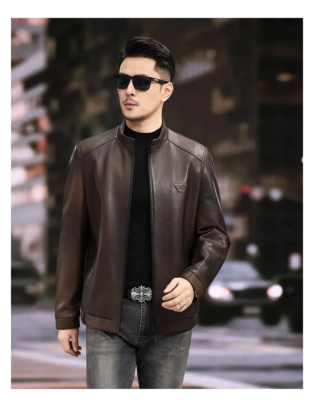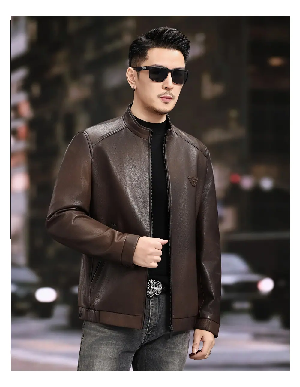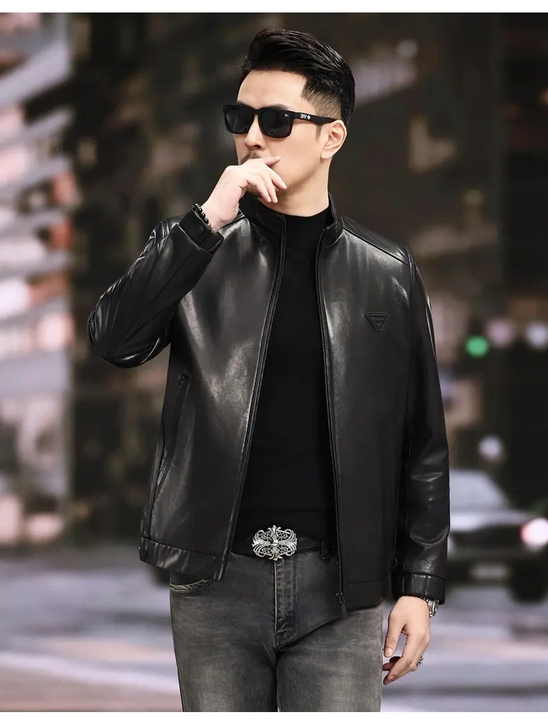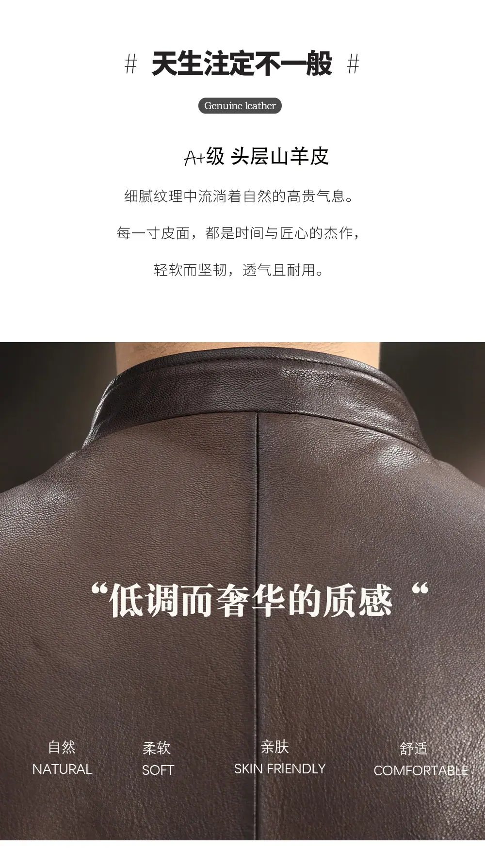Moda de otoño e invierno chaqueta de cuero genuino para hombre piel de cabra Haining chaqueta de cuero corta con cuello alto nuevo abrigo moderno de estilo coreano