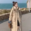 Abrigo de algodón fuera de temporada para mujer de longitud media 2023 invierno nuevo estilo coreano ajustado abrigo acolchado de algodón por encima de la rodilla chaqueta larga acolchada de algodón gruesa