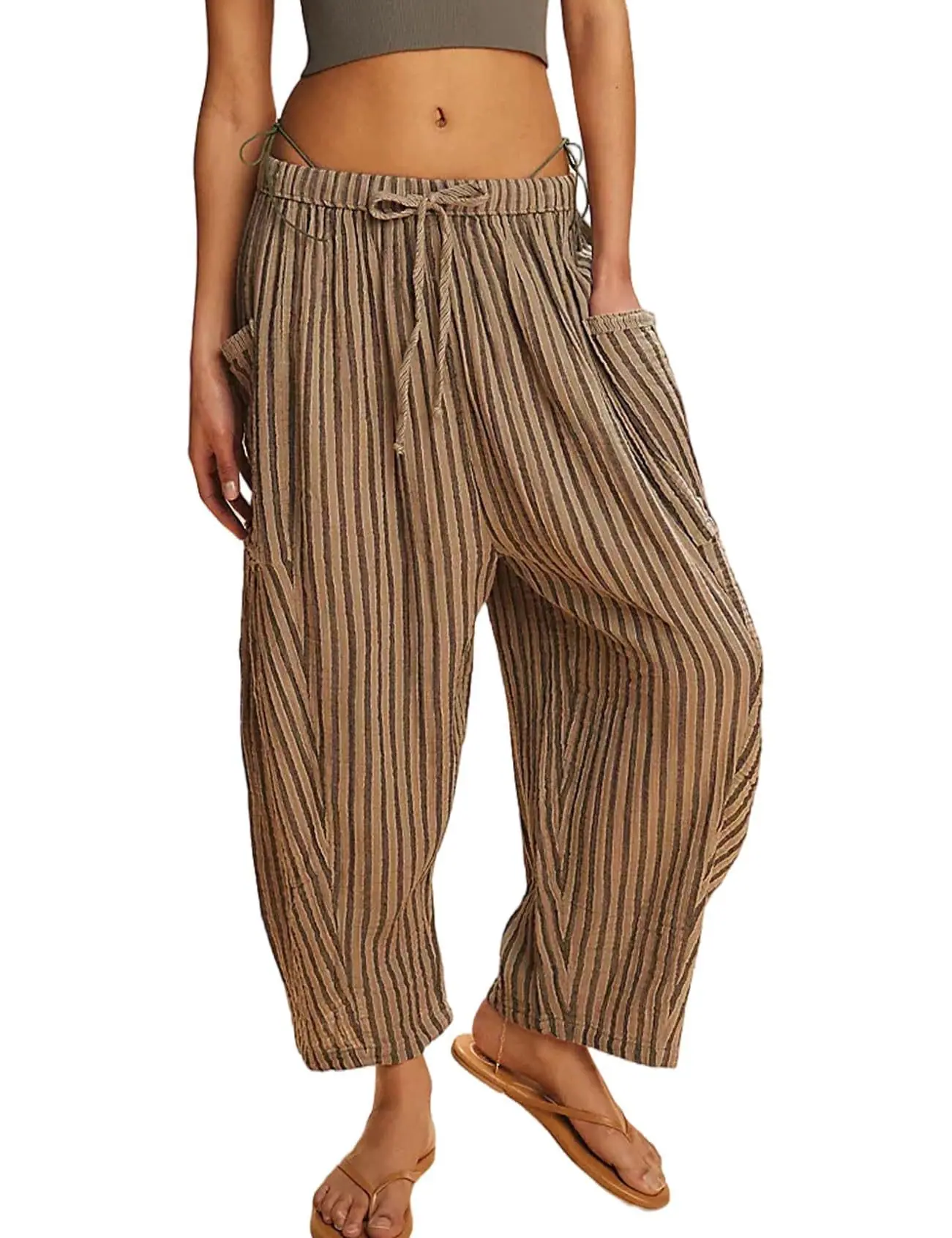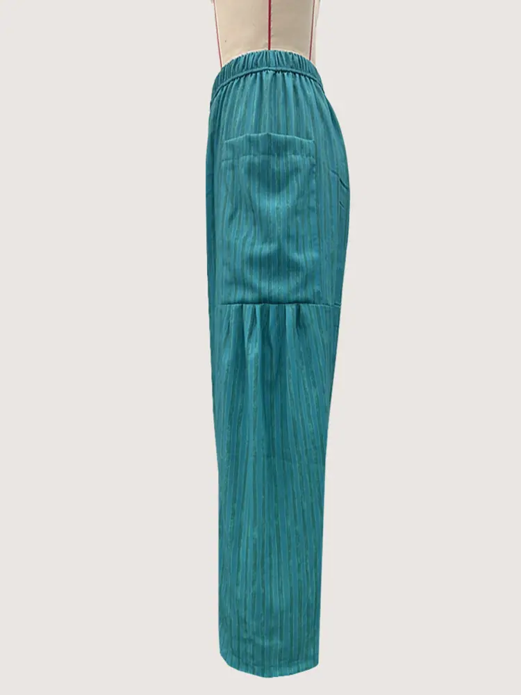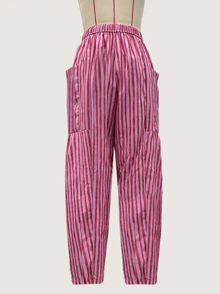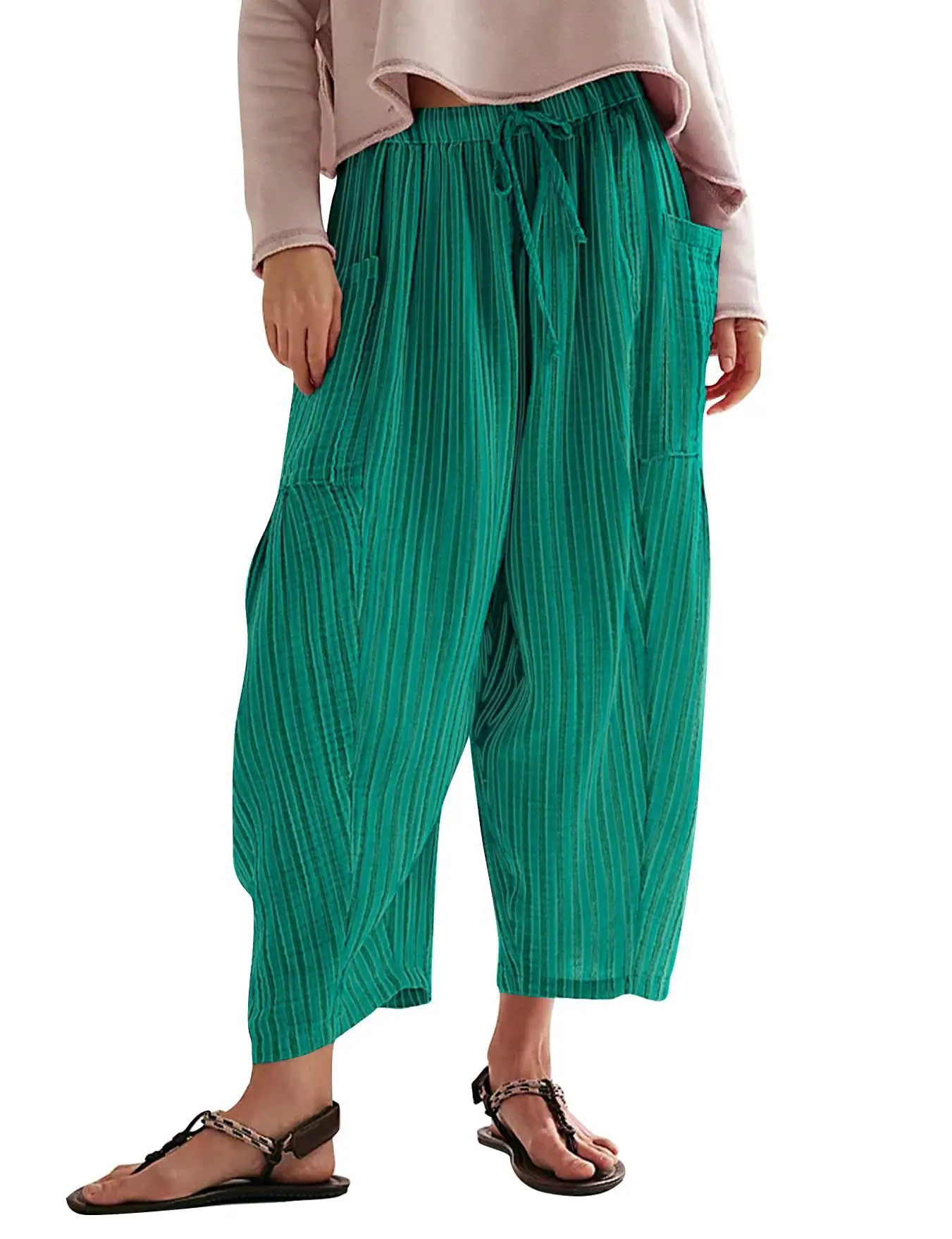 Pantalones rectos a rayas de primavera y otoño de 2025, de venta caliente en Europa y América, con cintura elástica, pantalones plisados capri, pantalones casuales transpirables para mujer