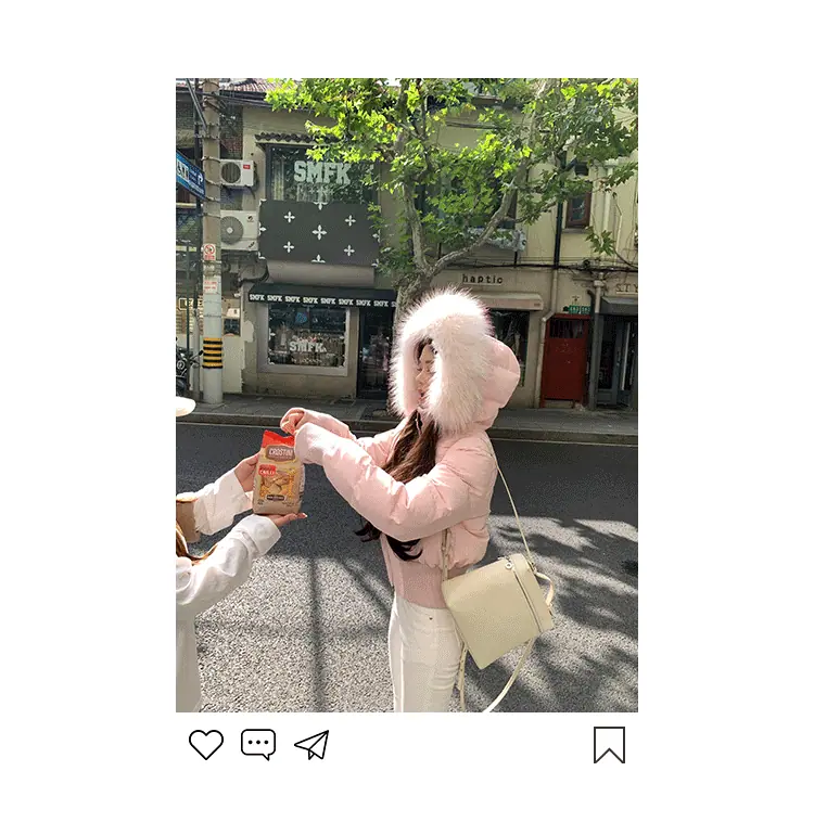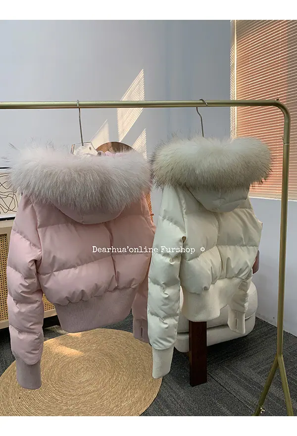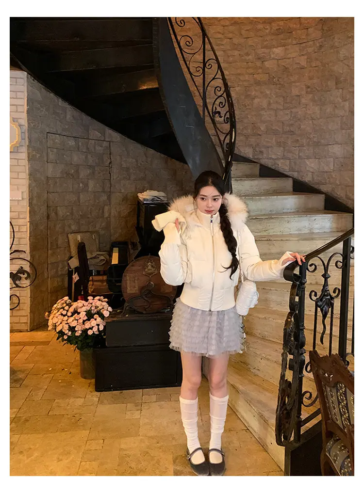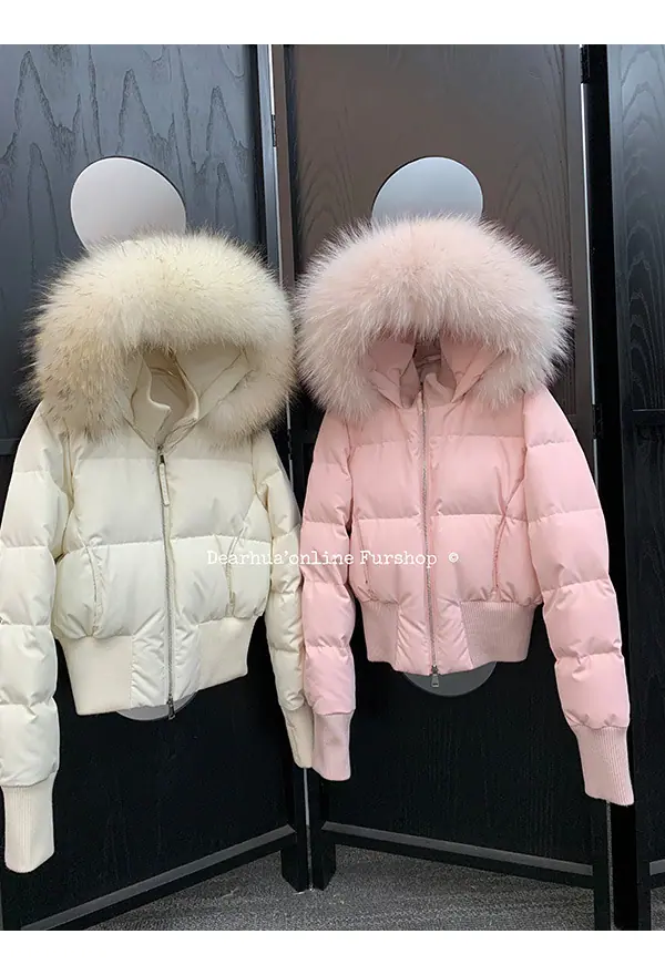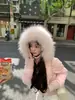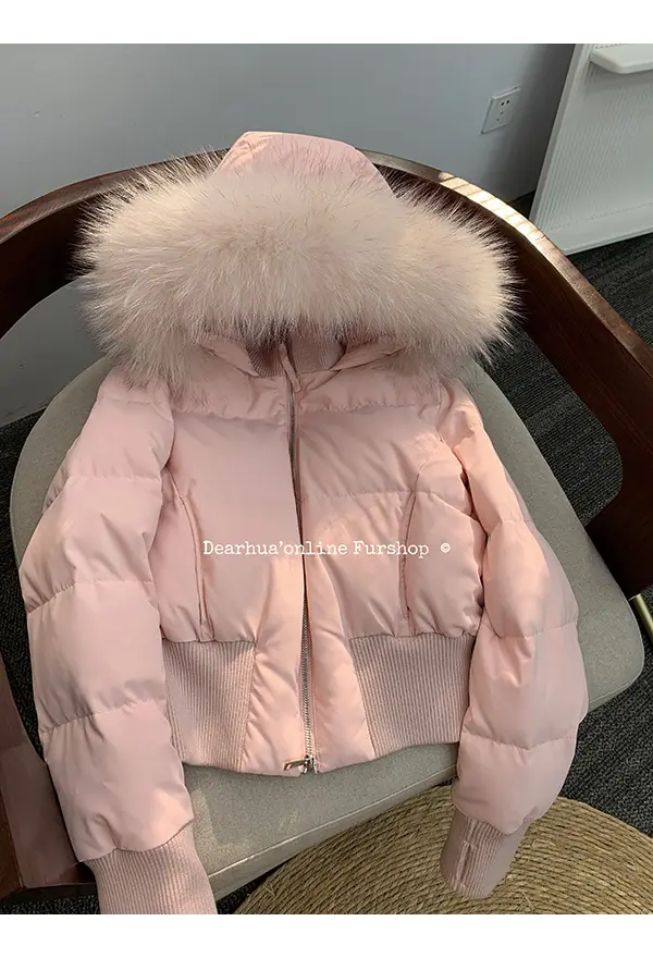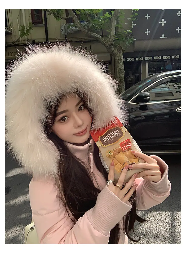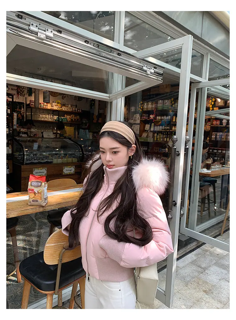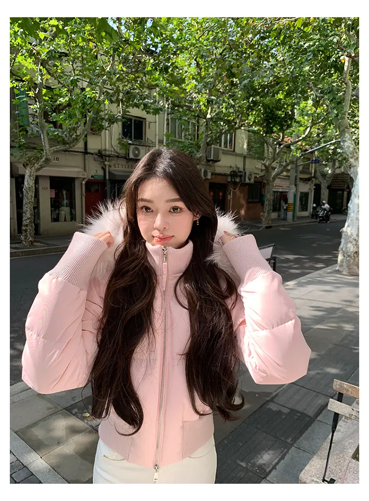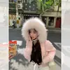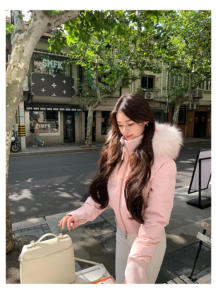 2025 Invierno Nuevo Chaqueta de Plumón Corta para Mujer con Cuello Grande de Piel Moda Americana Chica Picante Sentido de Alta Gama Abrigo Adelgazante de Cintura