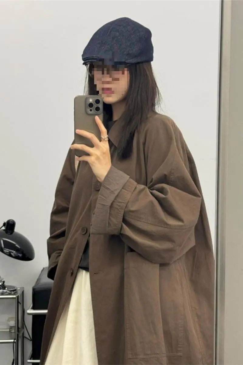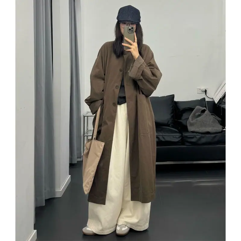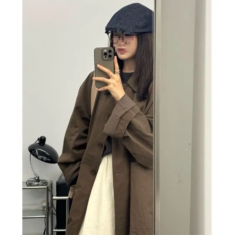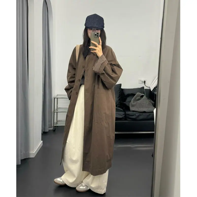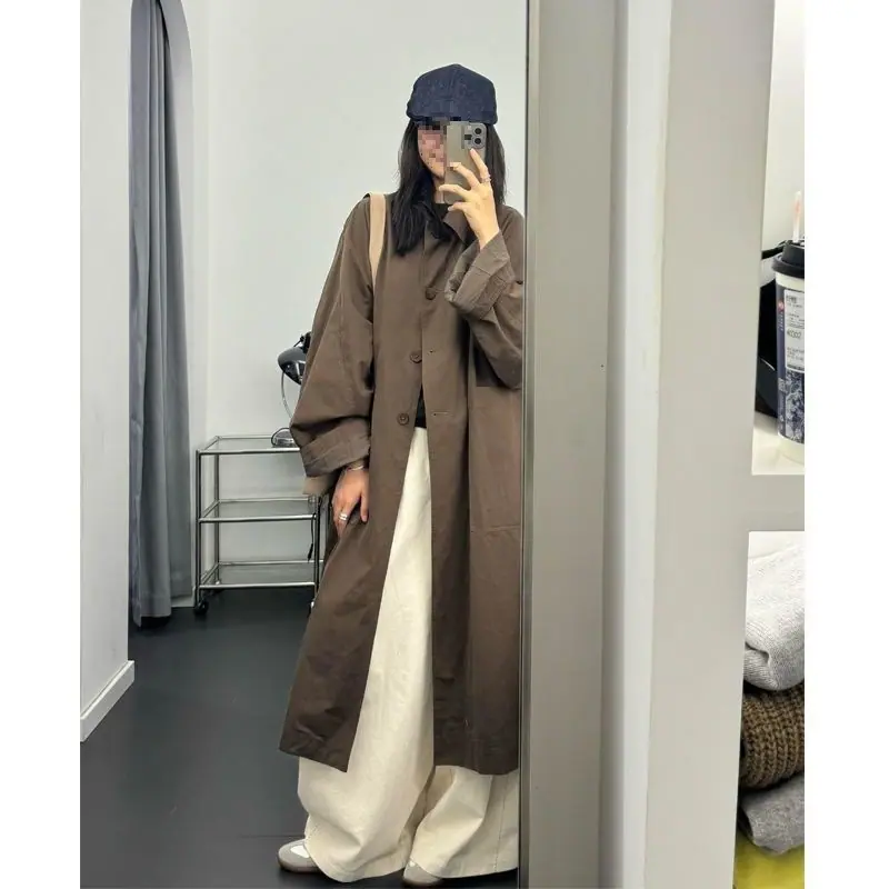 Abrigo trench de largo medio para mujer, nuevo otoño y primavera 2025, petite, estilo coreano, estilo británico, casual