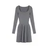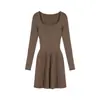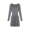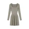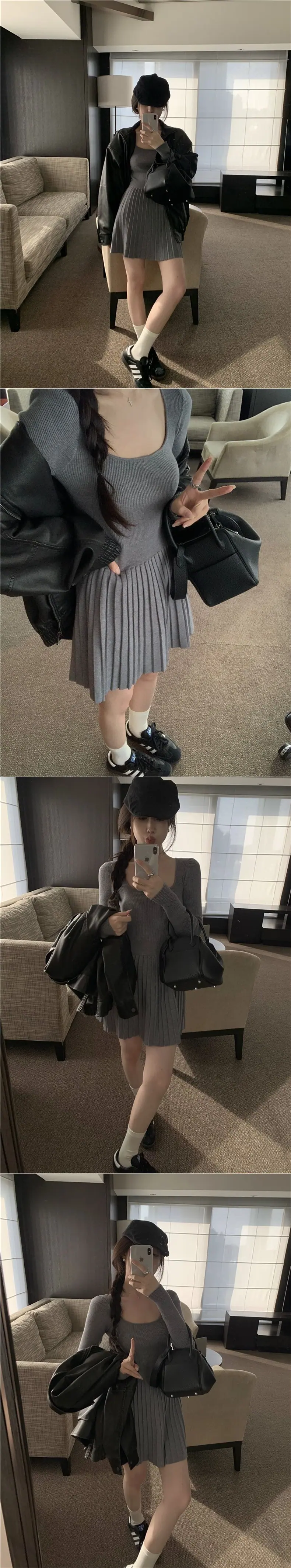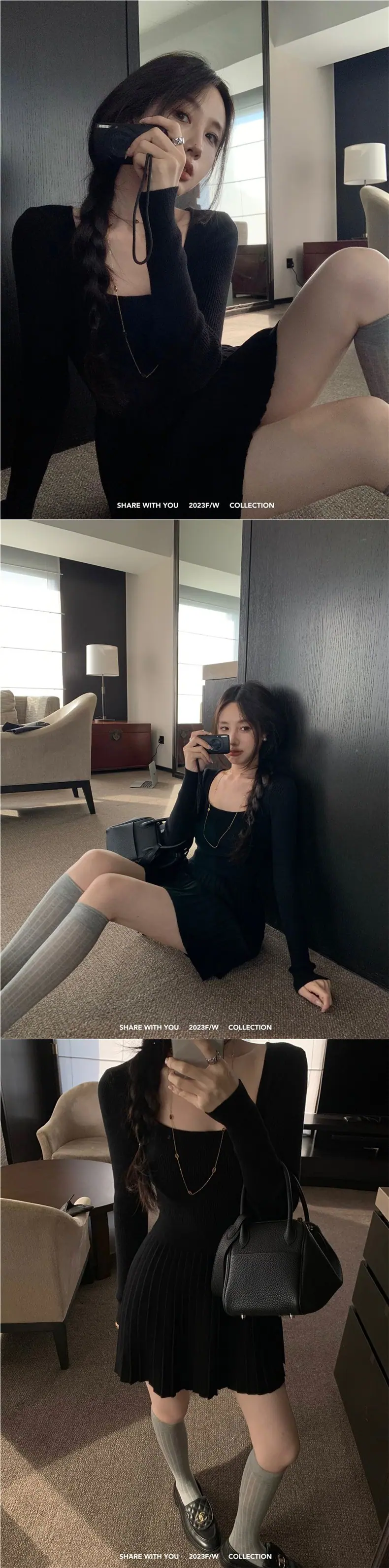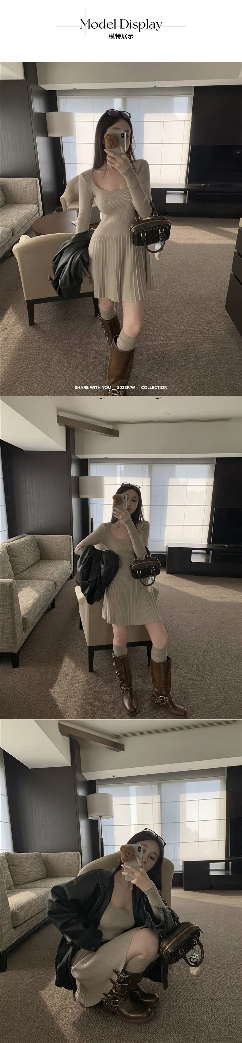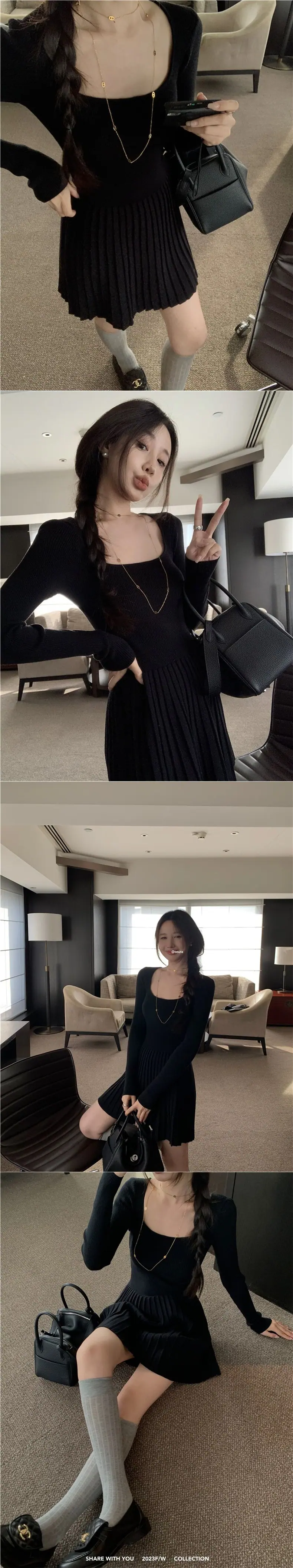 Vestido de Punto de Manga Larga Estilo Francés para Mujer en Otoño, Falda Plisada Slim con Falda Corta Debajo