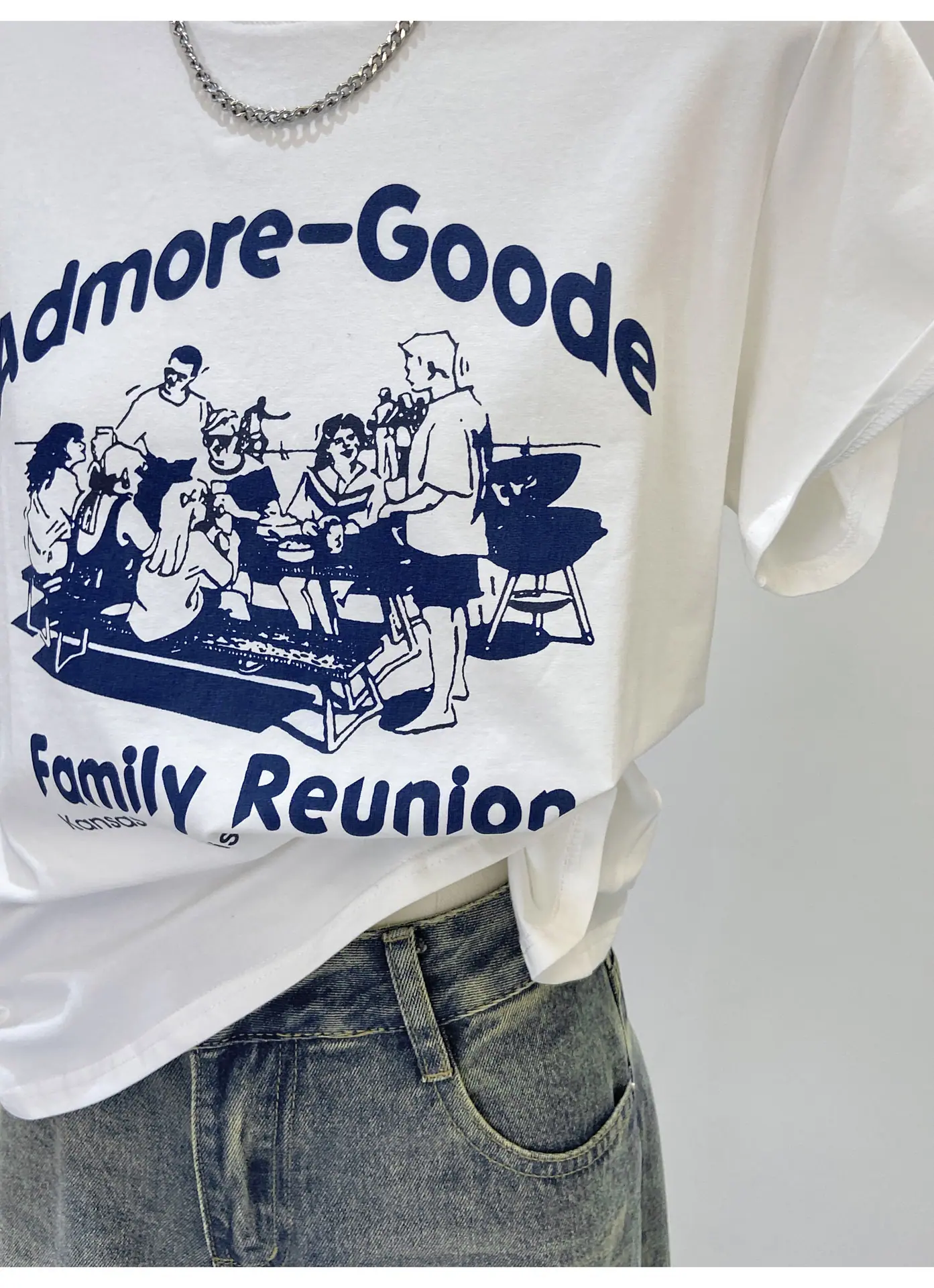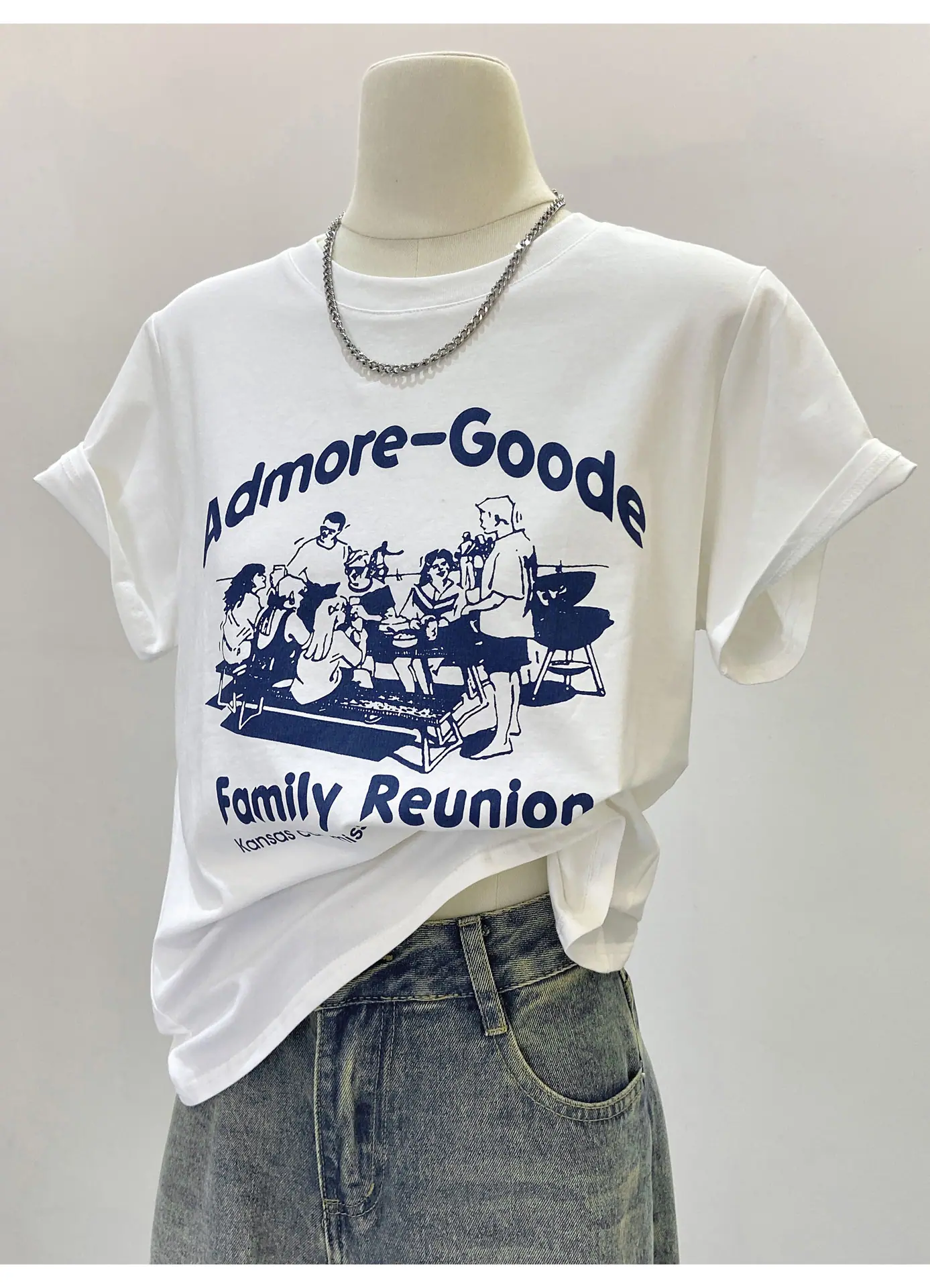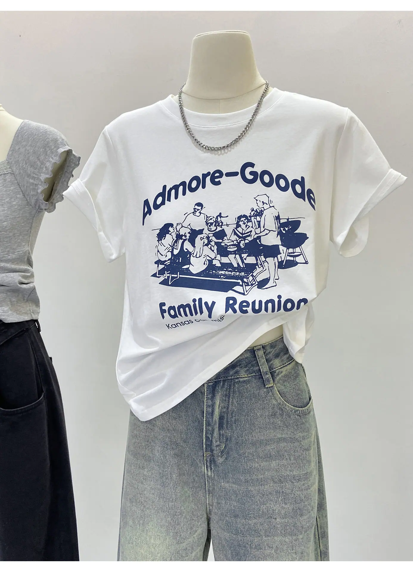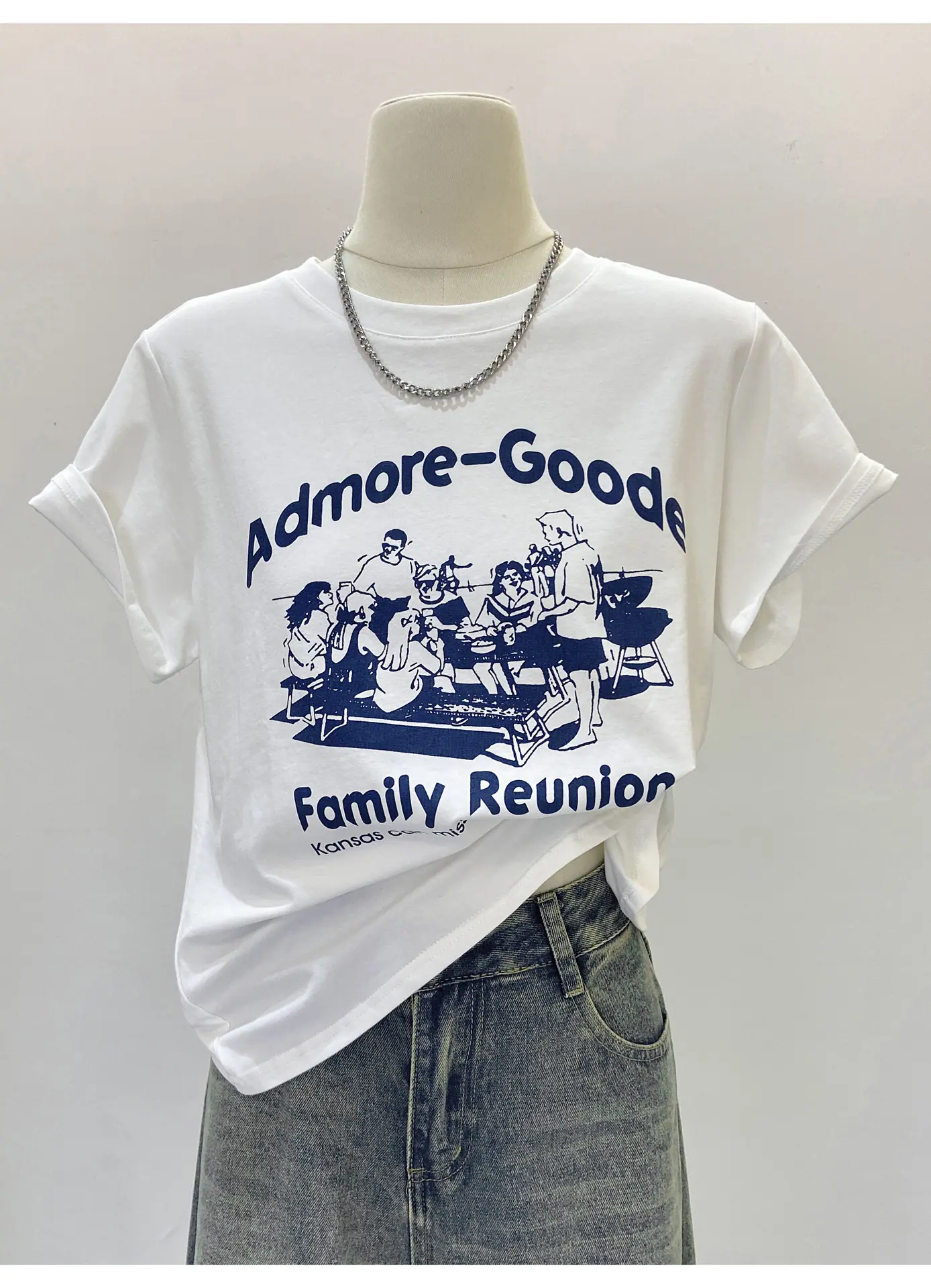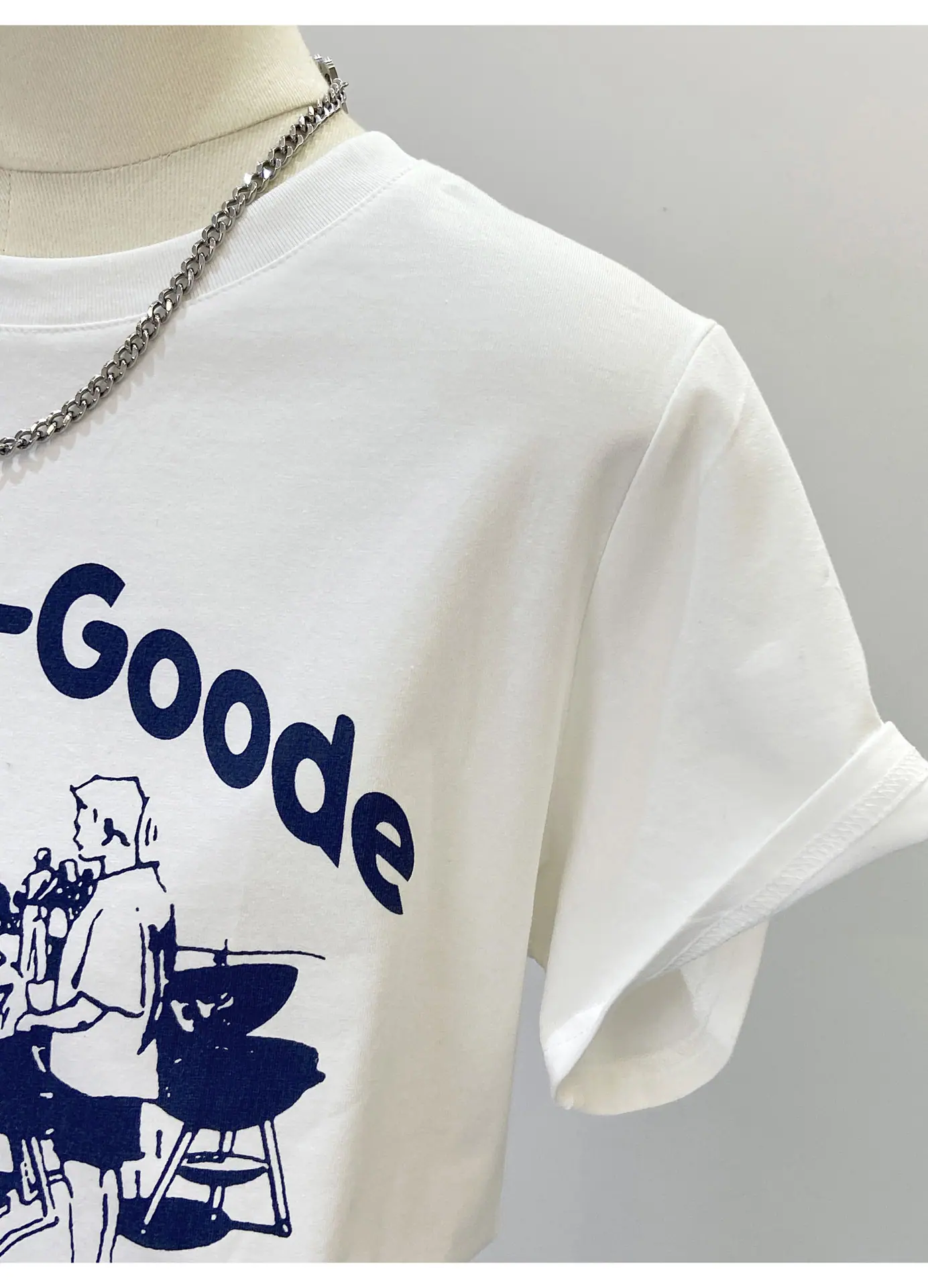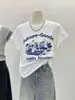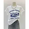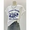 Tops Creativos Estampados de Manga Corta con Hombro Derecho Descubierto para Mujer Verano 2025 Diseño Slim y Holgado Sexy Casual Camiseta Básica