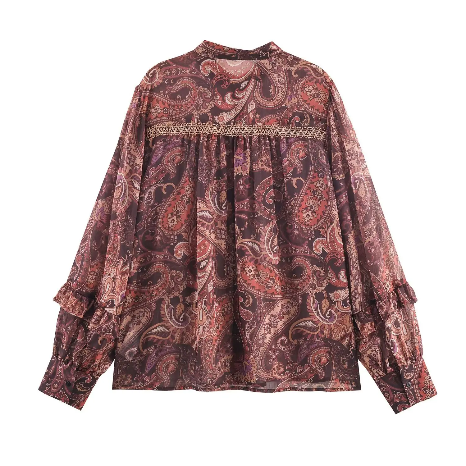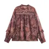 Z Estilo Europeo y Americano Transfronterizo 2025 Nueva Moda Temperamento Mujeres Venta al por Mayor Estampado Ajuste Holgado Manga Larga Camisa Retro Top